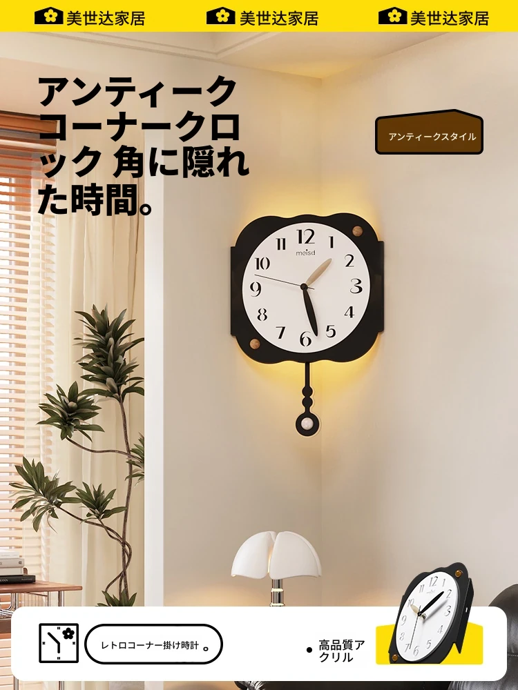 美世达の高級コーナー掛け時計 2025年新モデル!リビングにぴったりなデザインで、電子時計機能を搭載。壁の角にぴったりフィットする両面掛け時計で、どこからでも時間を確認できます。おしゃれで実用的なインテリアアイテムです!