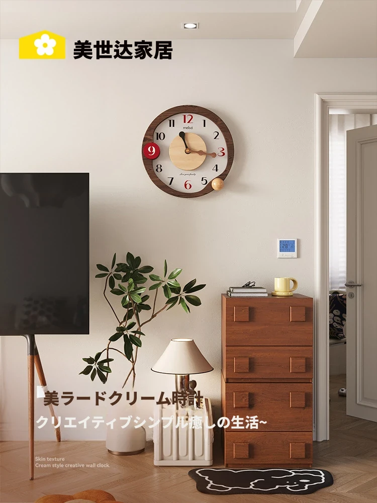 美世达美ラードクリーム風の掛け時計 - 2025年新作!家庭用のレトロデザインで、創造的な壁掛け時計。リビングにぴったりなスタイリッシュなインテリアアイテムをお楽しみください!