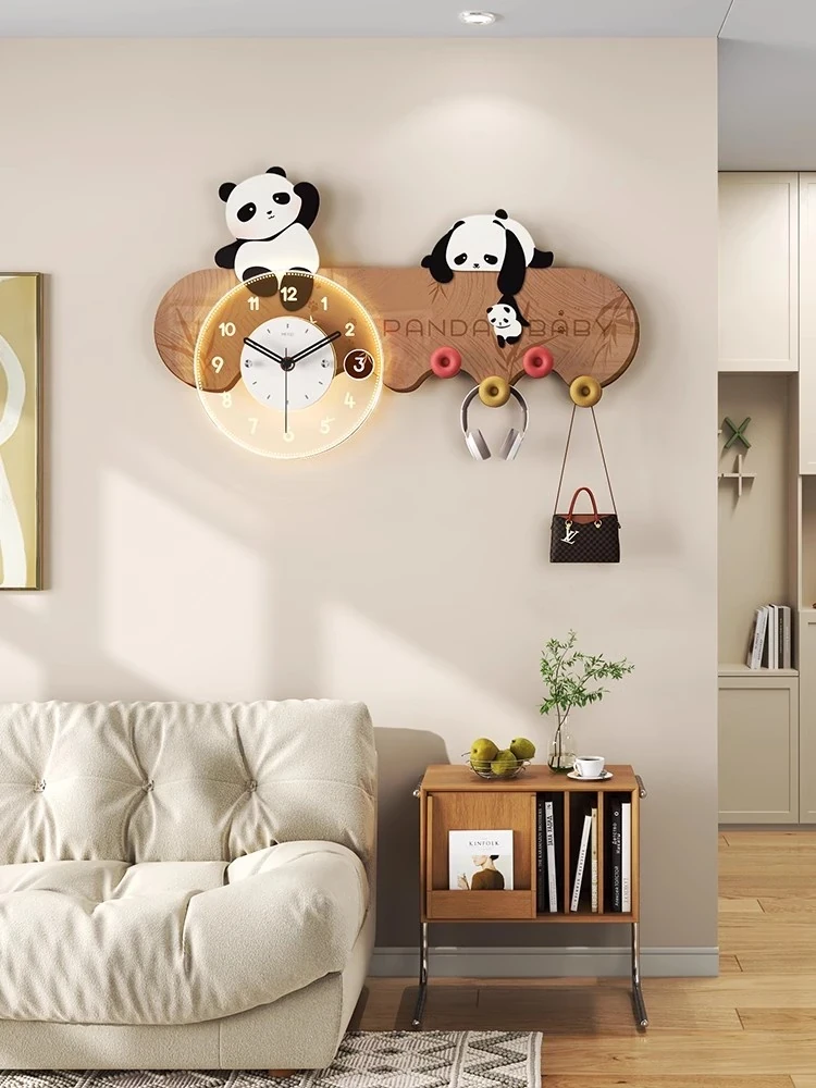 メイシーダ パンダ壁時計 2025新作 シンプルで洗練されたデザインの高級リビング用壁掛け時計 創造的なライト付きで、あなたの空間に特別な雰囲気を演出します!