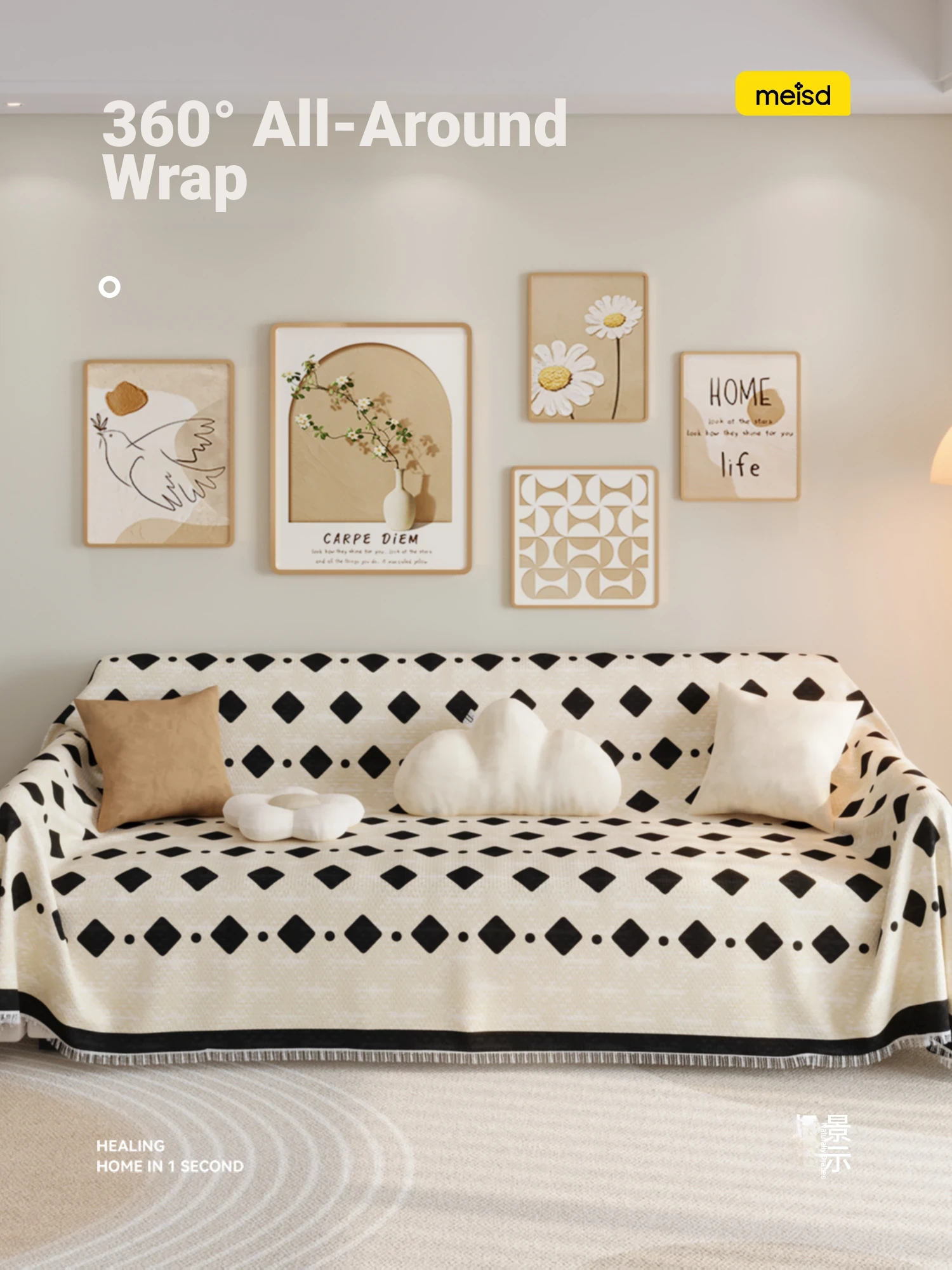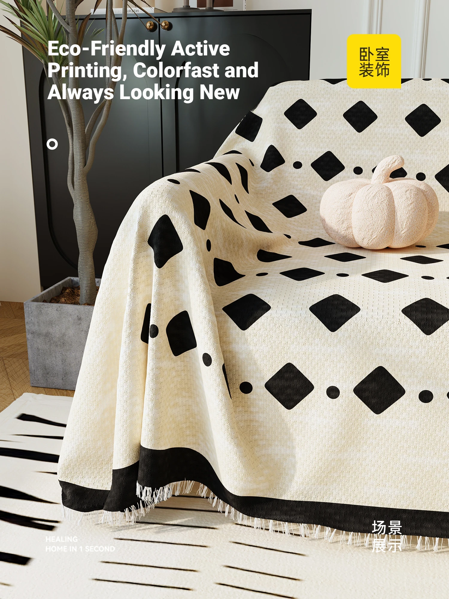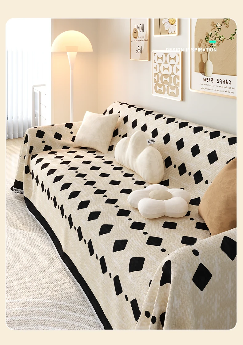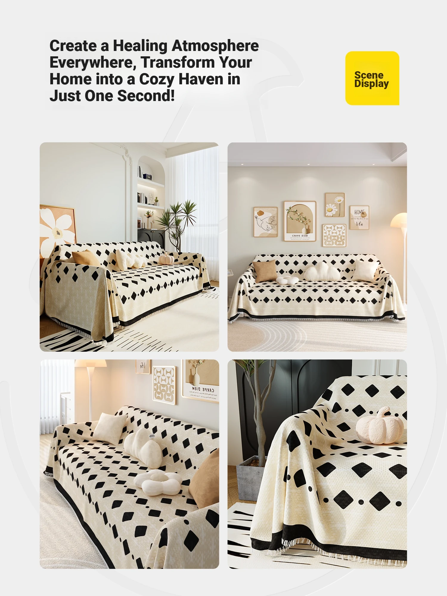 Luxurious Diamond Pattern Sofa Cover - All-Around Protection for Autumn and Winter, Anti-Slip and Dustproof, Universal Fit for All Seasons