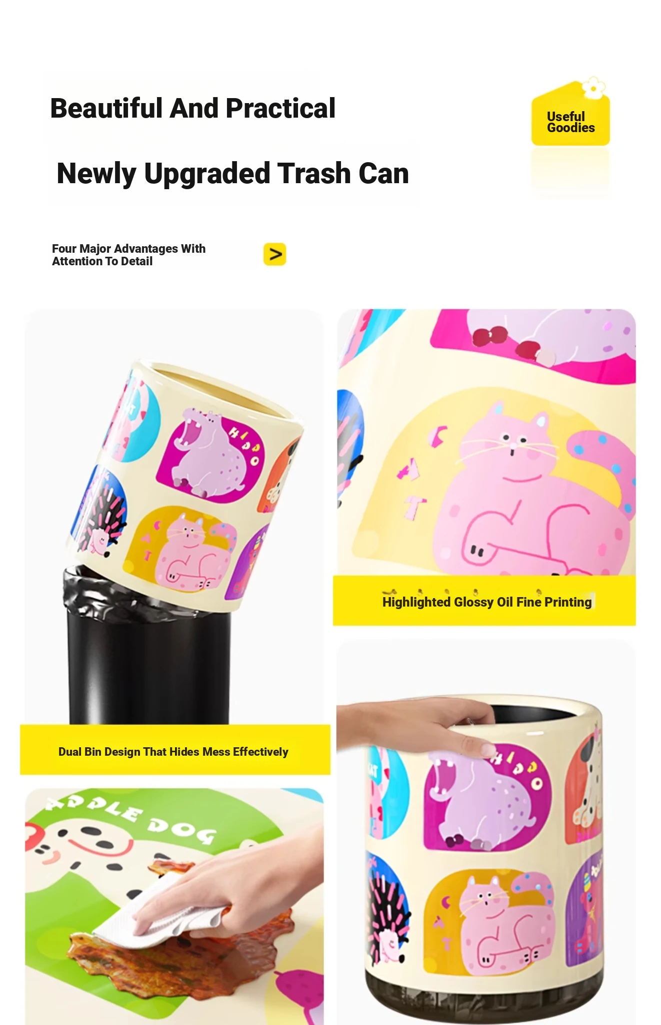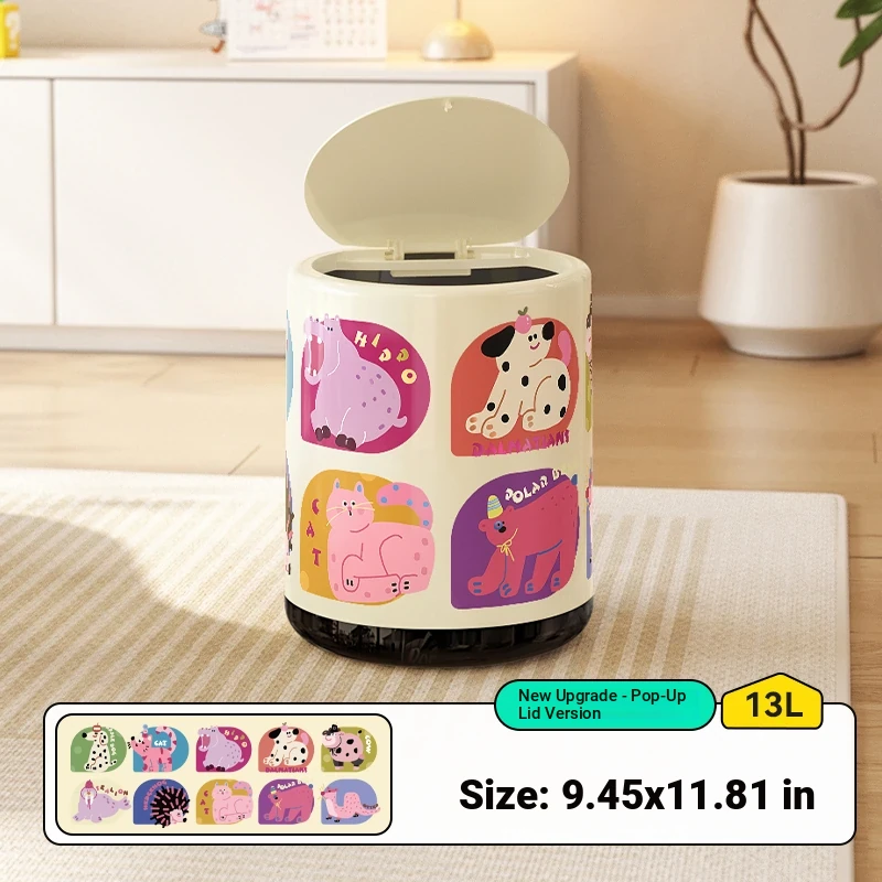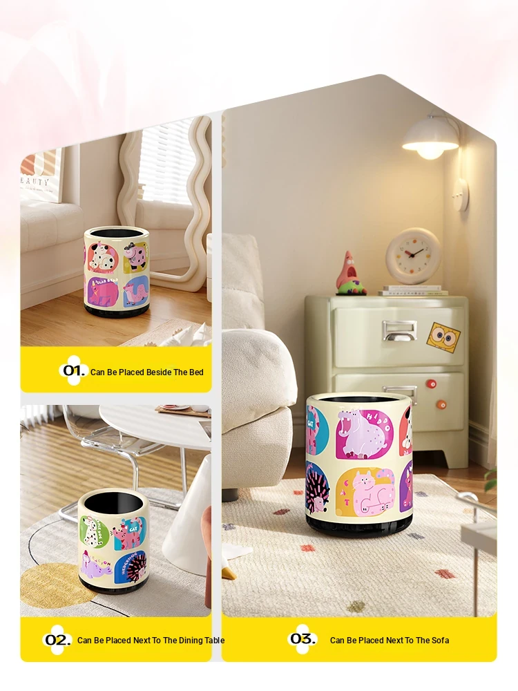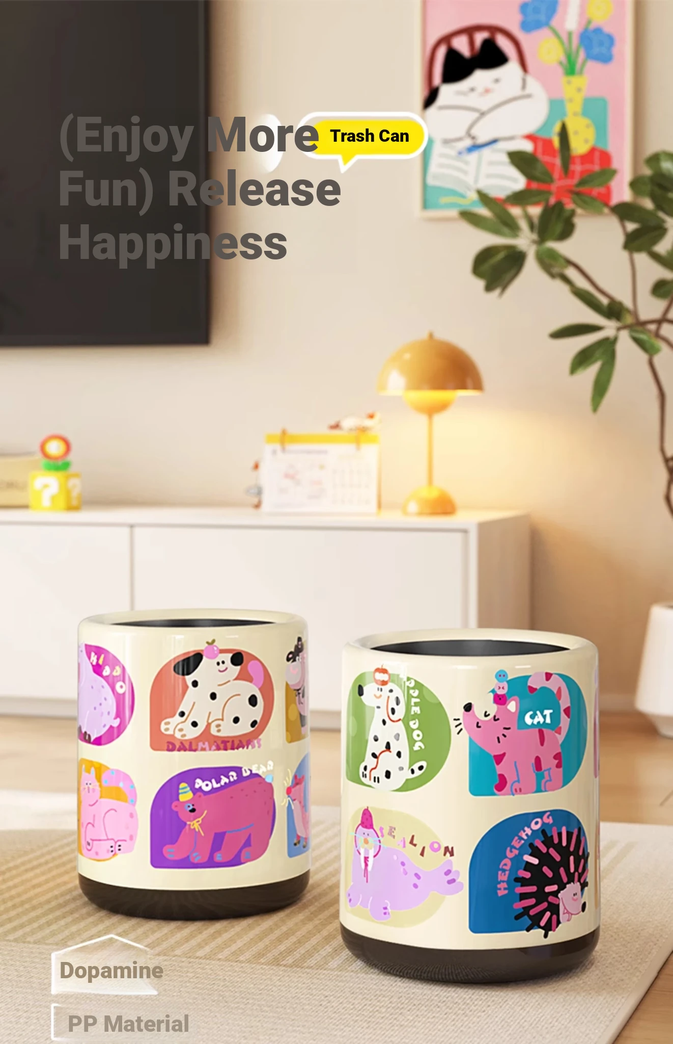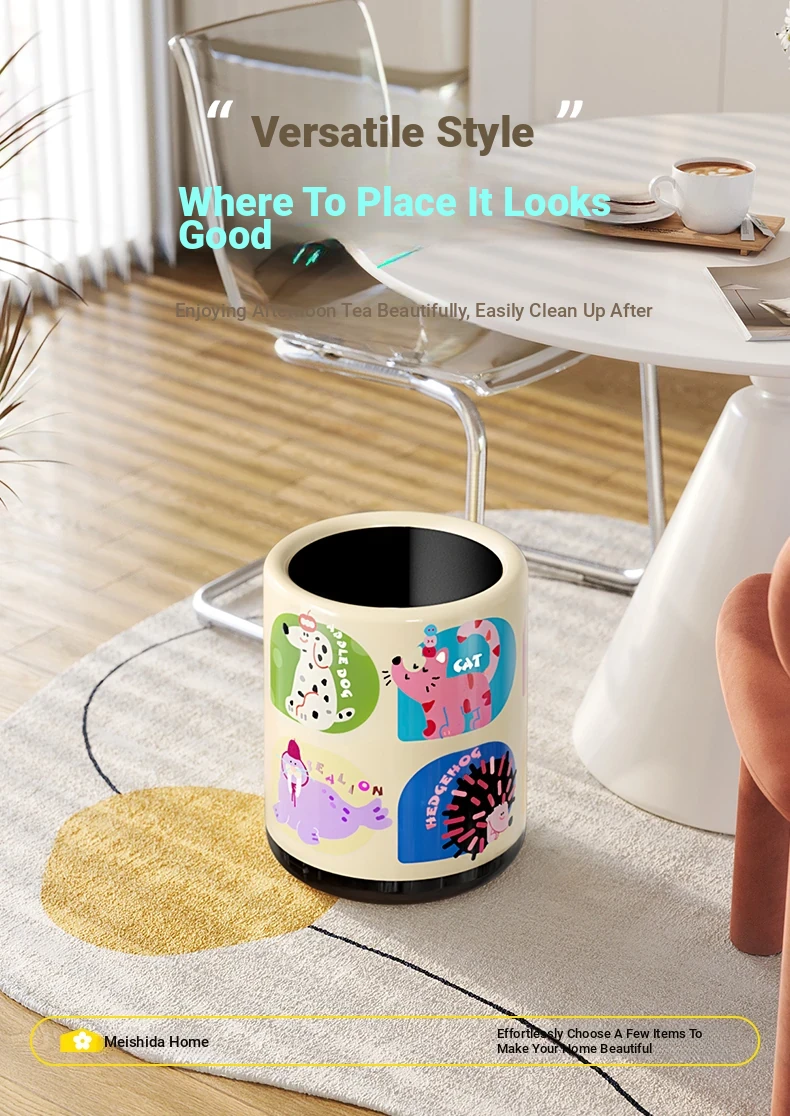 Mei Shida Colorful Cartoon Cat Trash Can - Cute and Versatile Design for Home Use, Large Capacity for Living Room and Bedroom, New 2025 Model