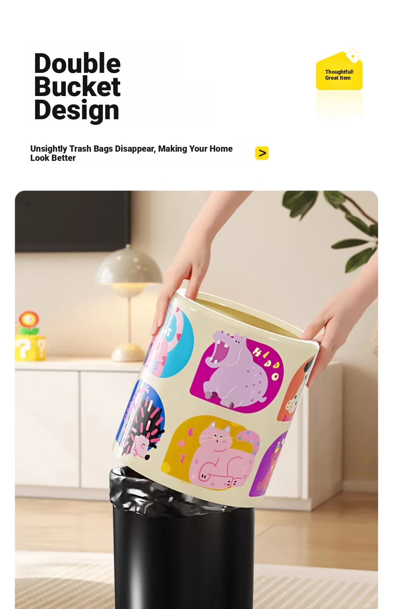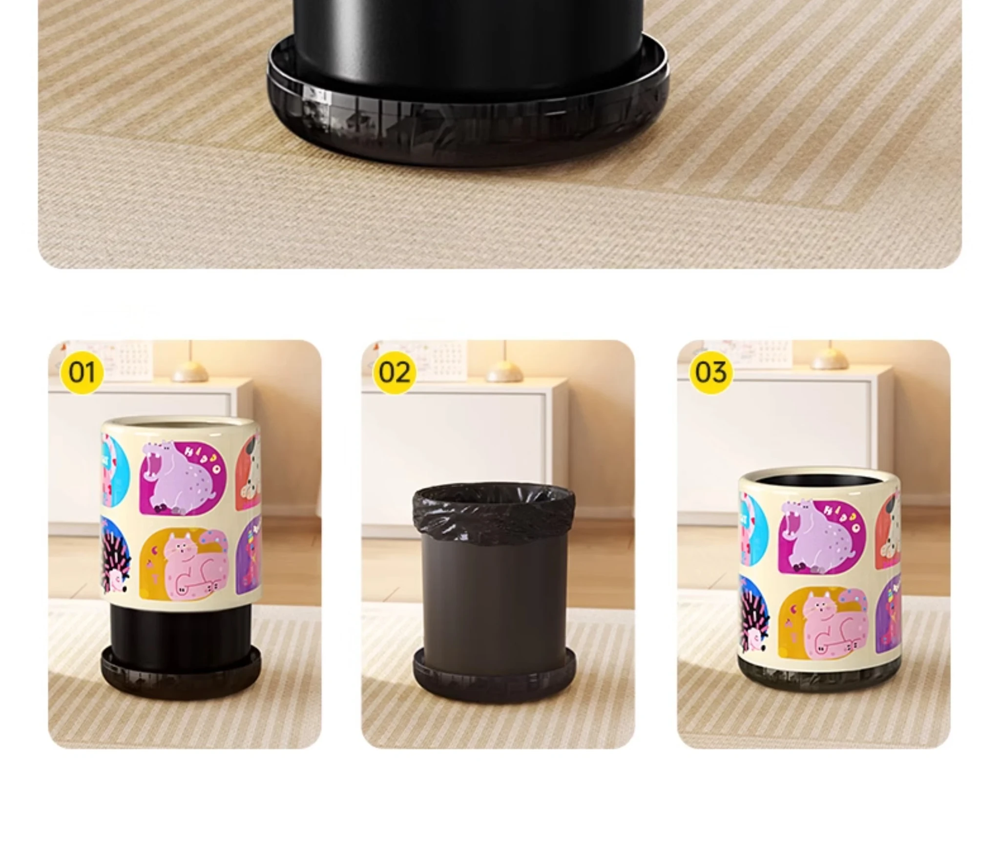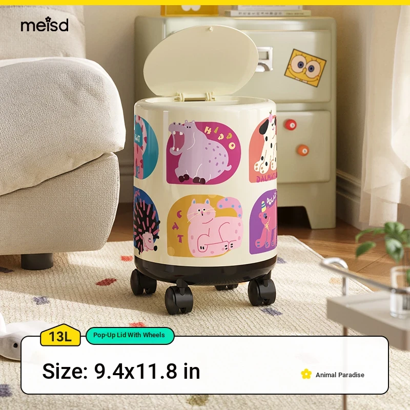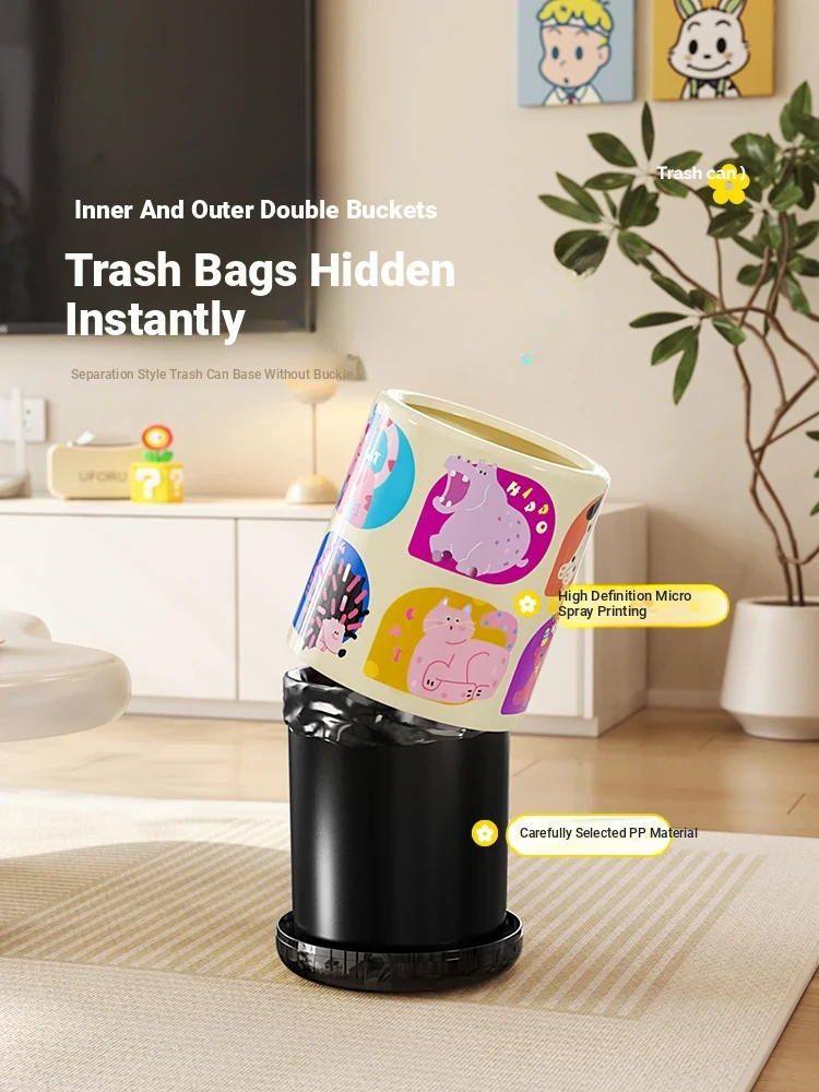 Mei Shida Colorful Cartoon Cat Trash Can - Cute and Versatile Design for Home Use, Large Capacity for Living Room and Bedroom, New 2025 Model