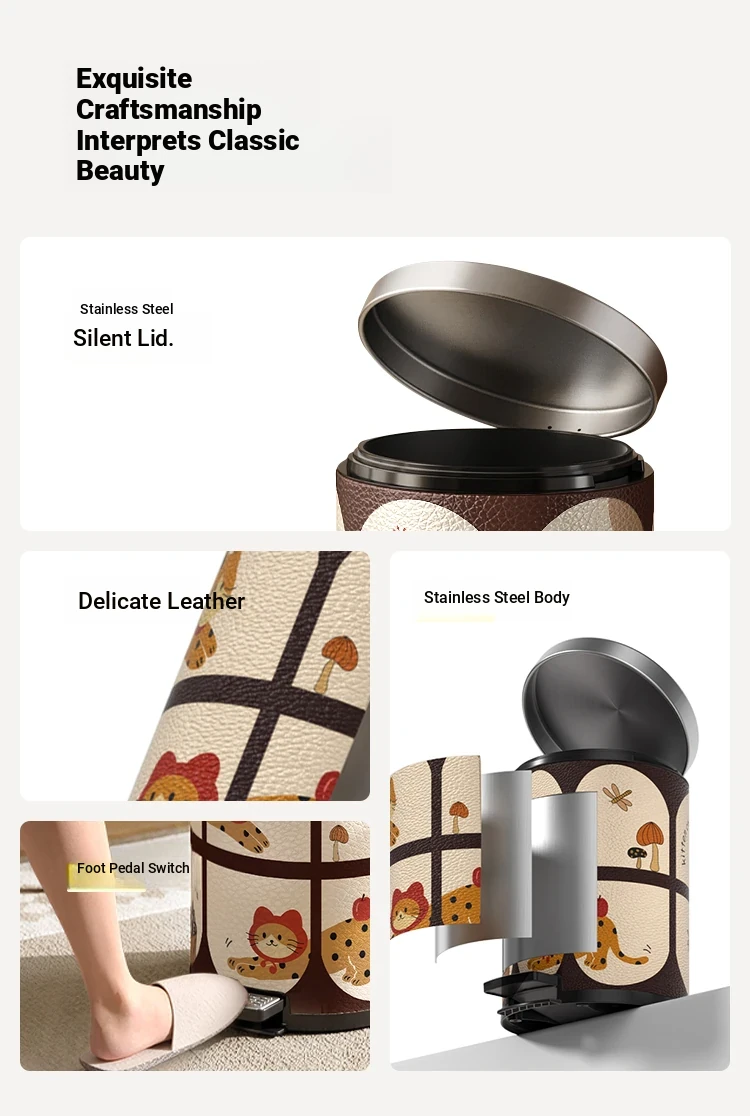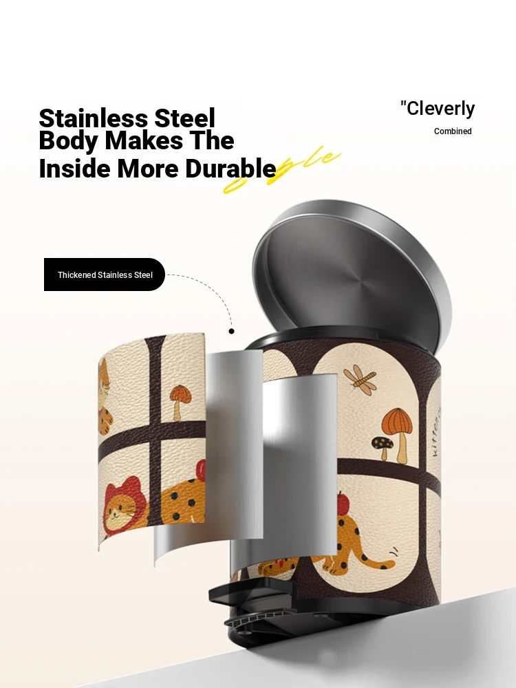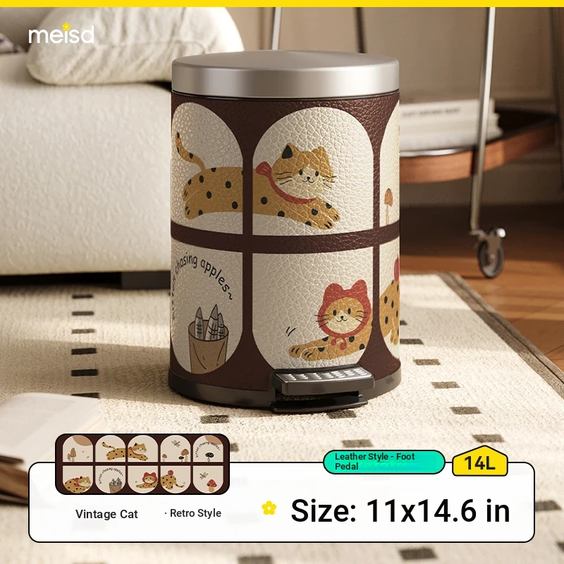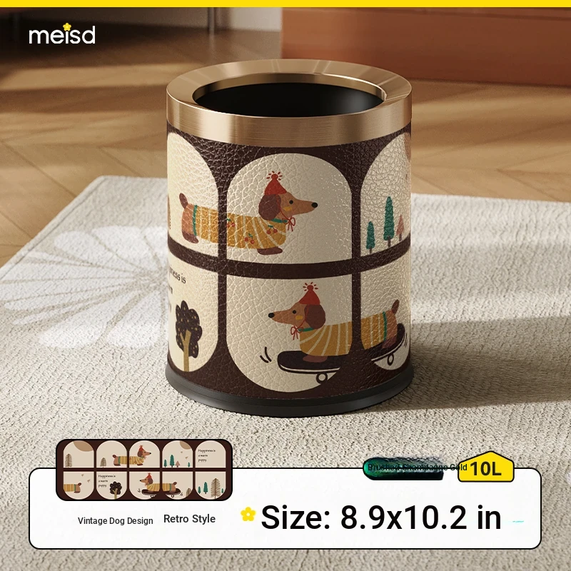Mei Shida Stainless Steel Trash Can with Foot Pedal and Lid - Vintage Style, Large Capacity, Double-Layer Design, Chic and Elegant New Luxury Home Essential