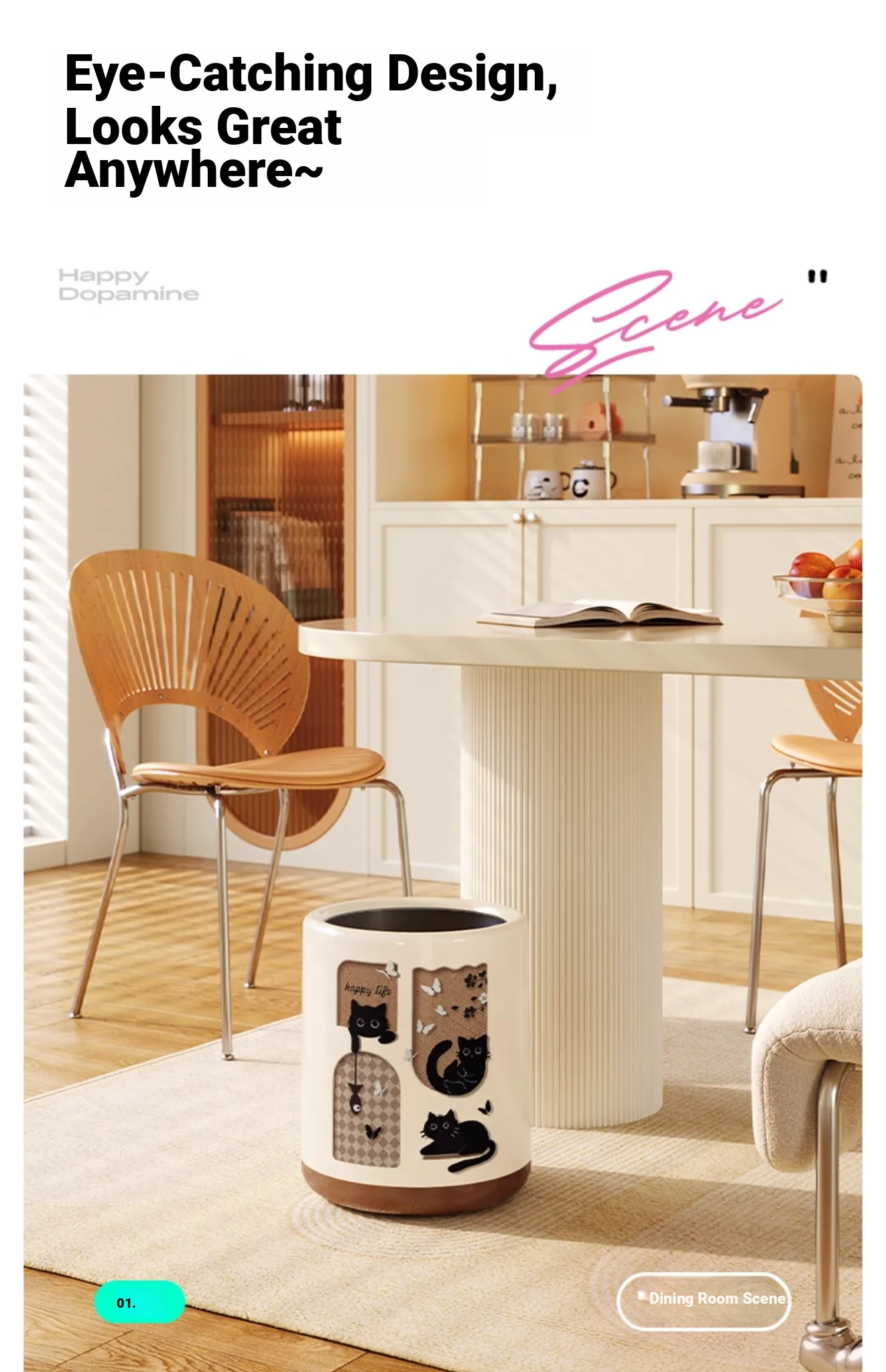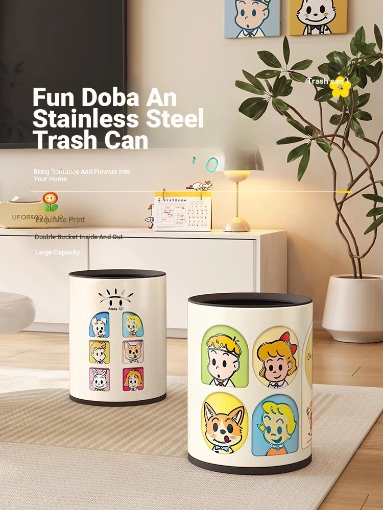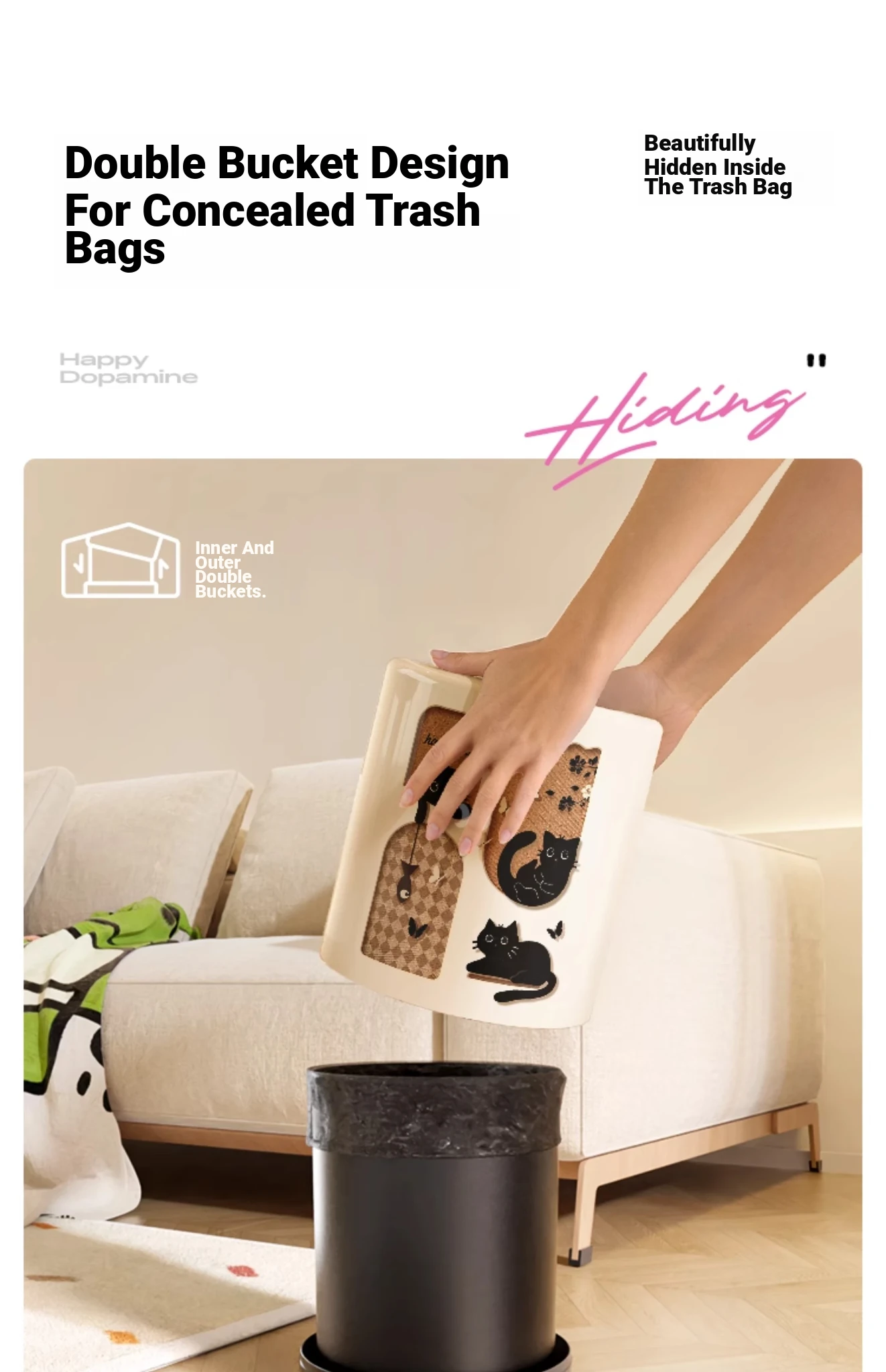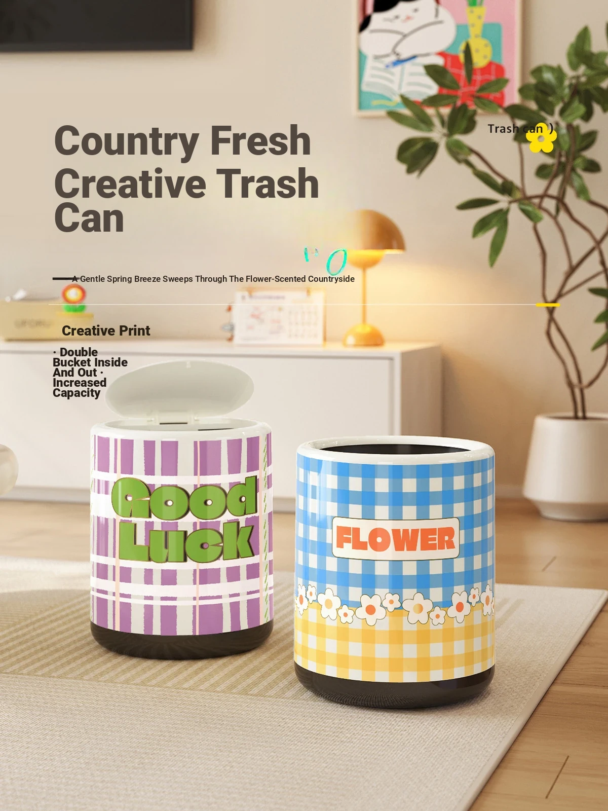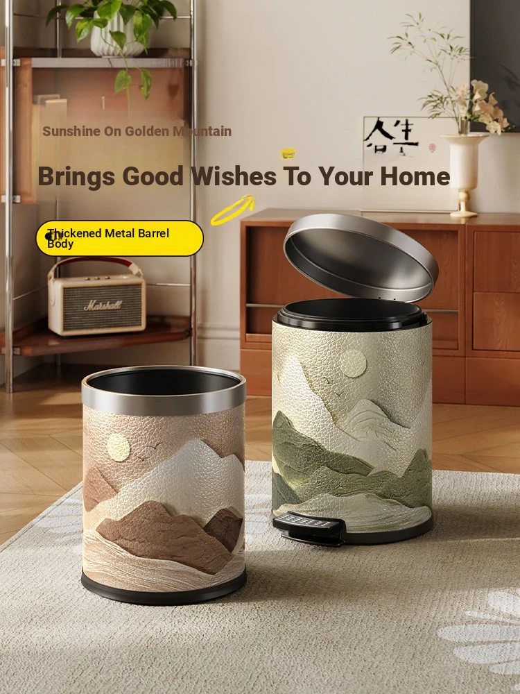 MEISD Mid-Century Modern Trash Can - Stylish & Functional, Double-Layered with Lid, Perfect for Elegant Living Rooms, Elevate Your Home Décor!