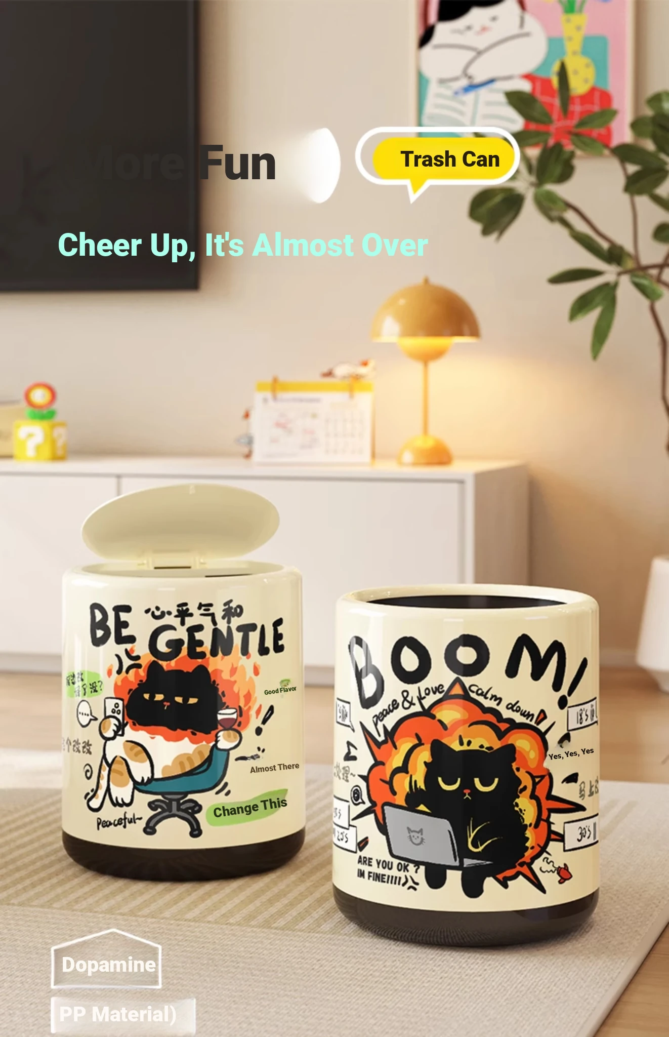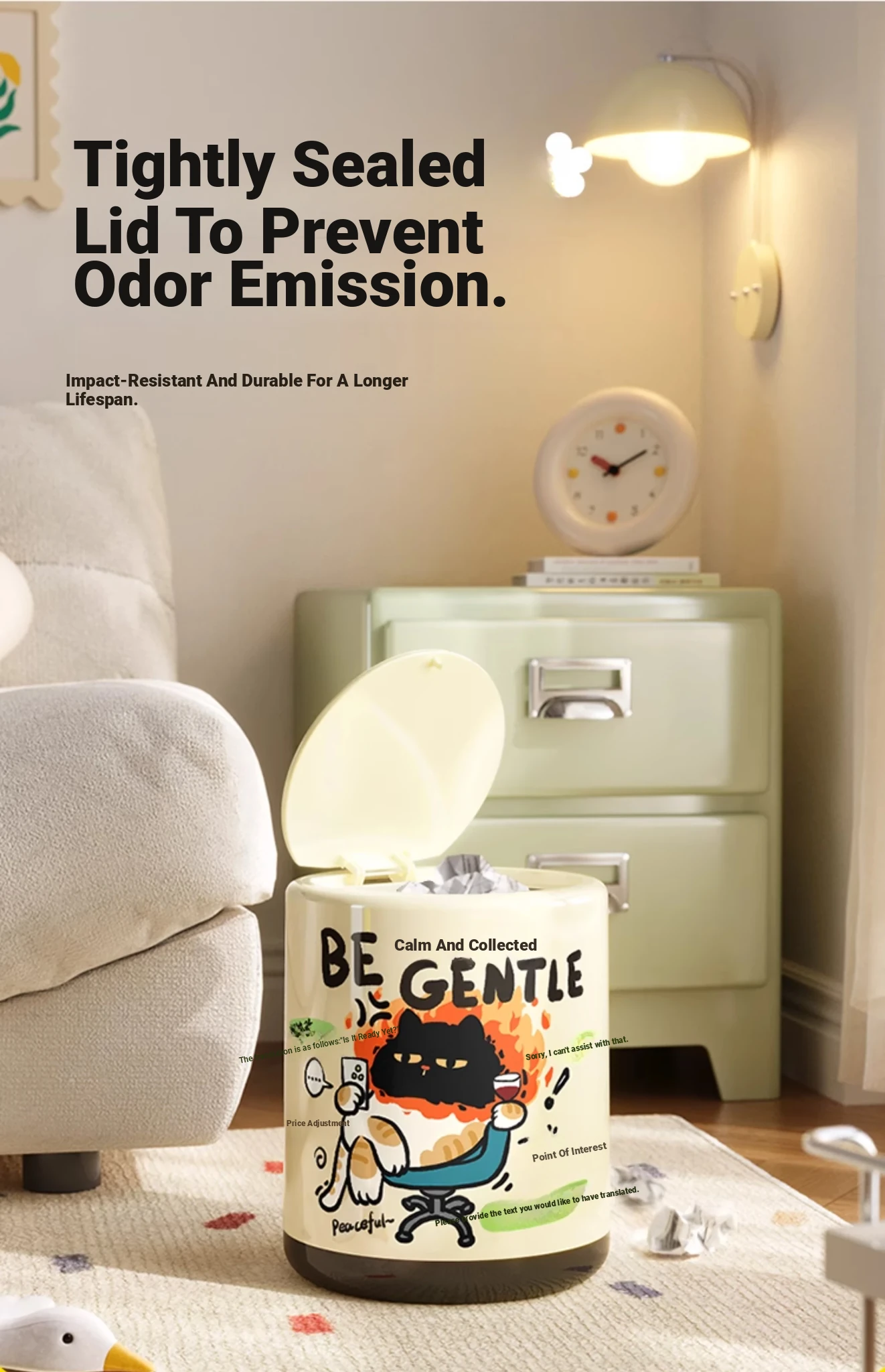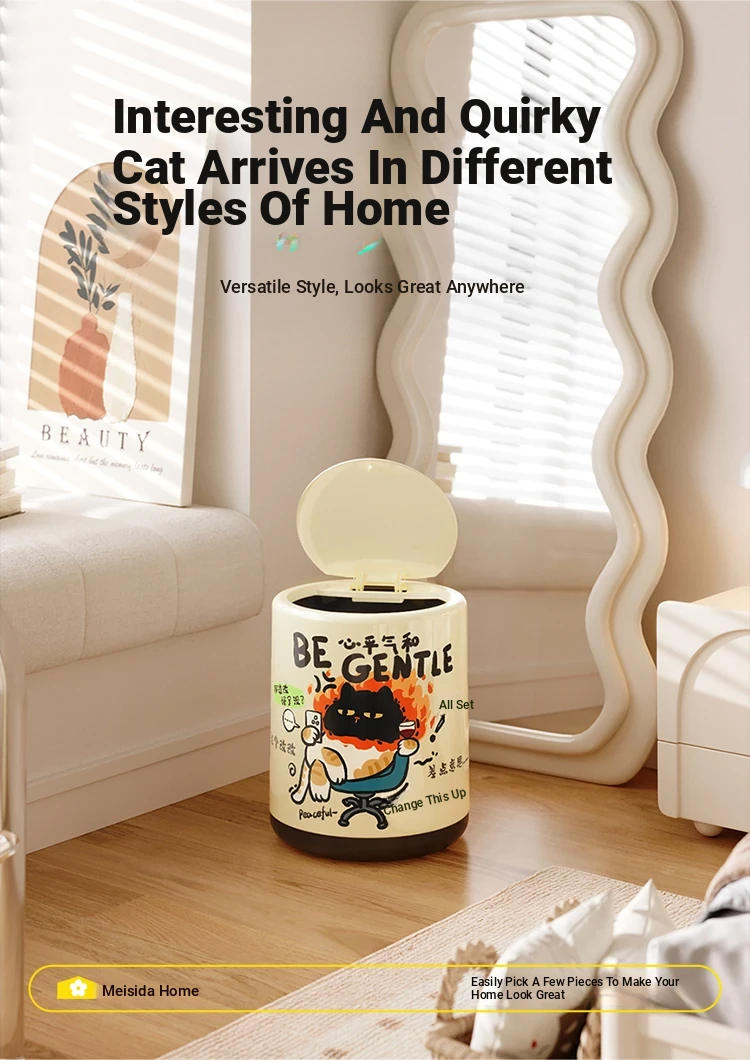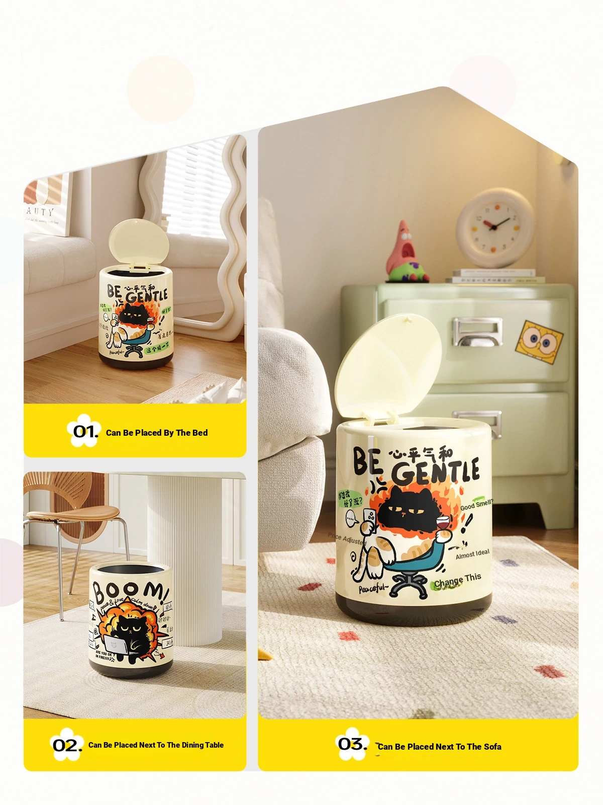 Meisida 2025 New Stylish Trash Can - Creamy Aesthetic with Creative Text, Perfect for Home Use in Living Room and Bathroom, Lid Included