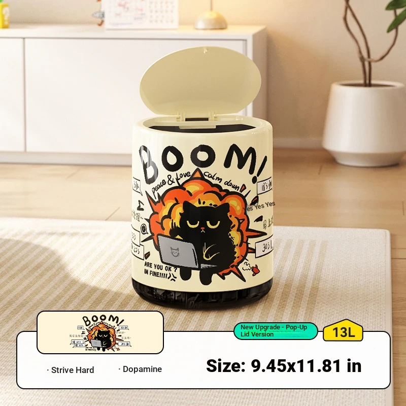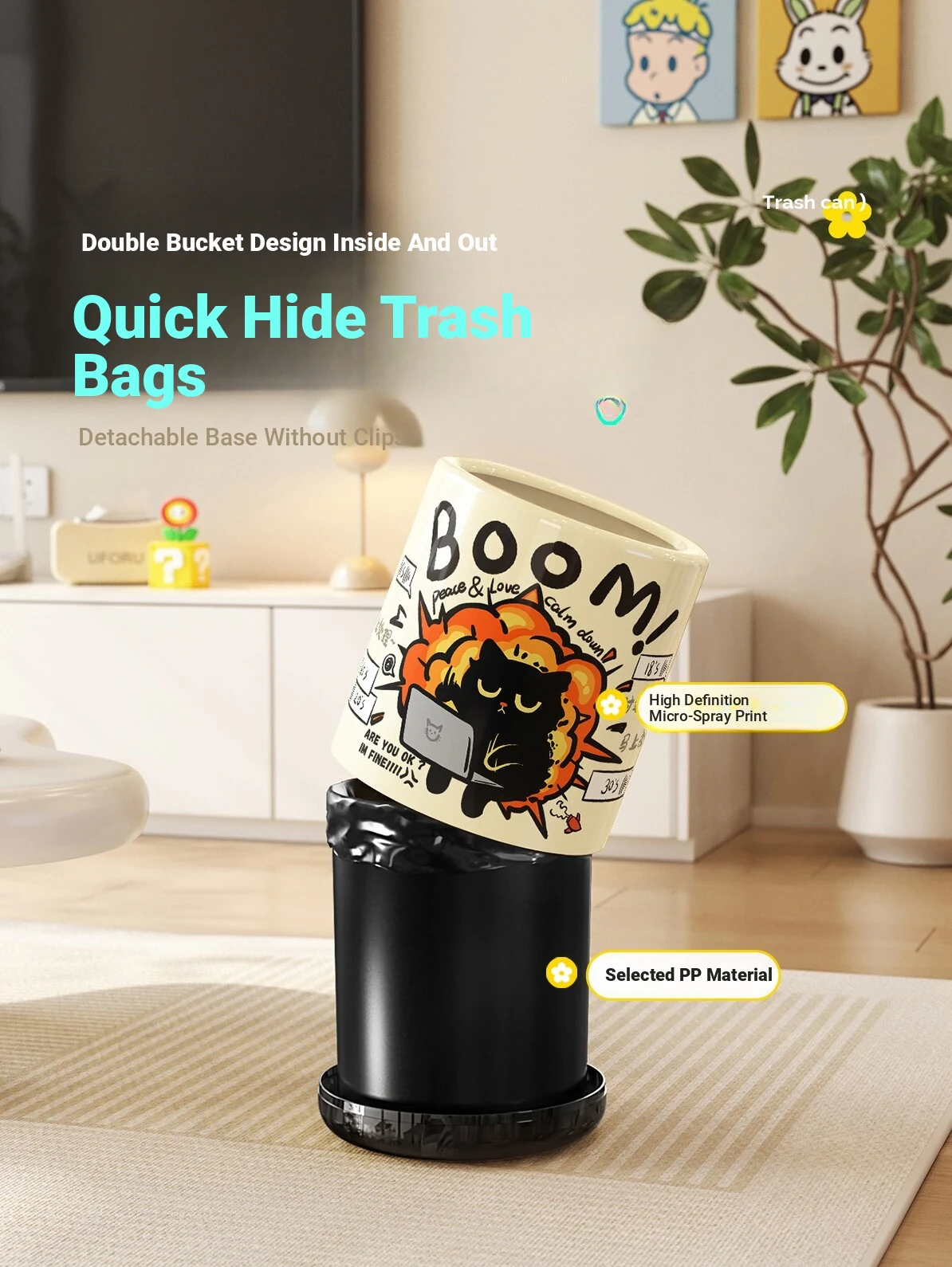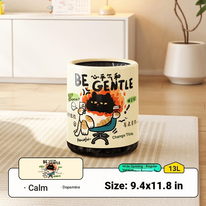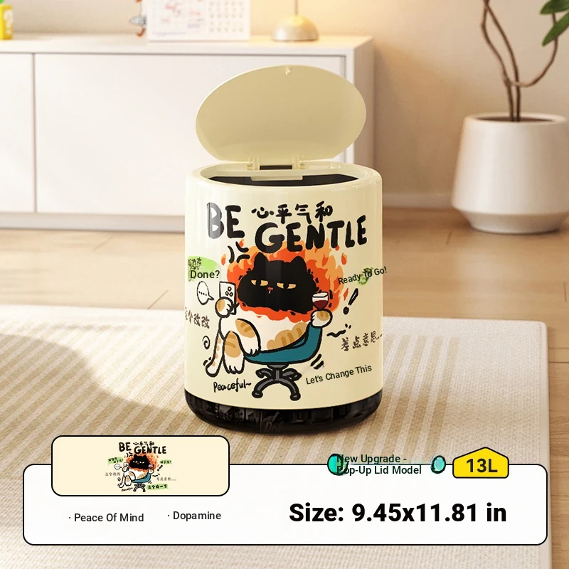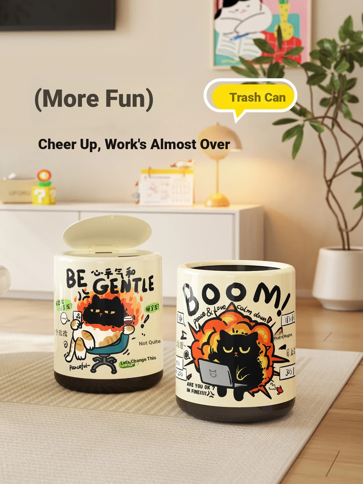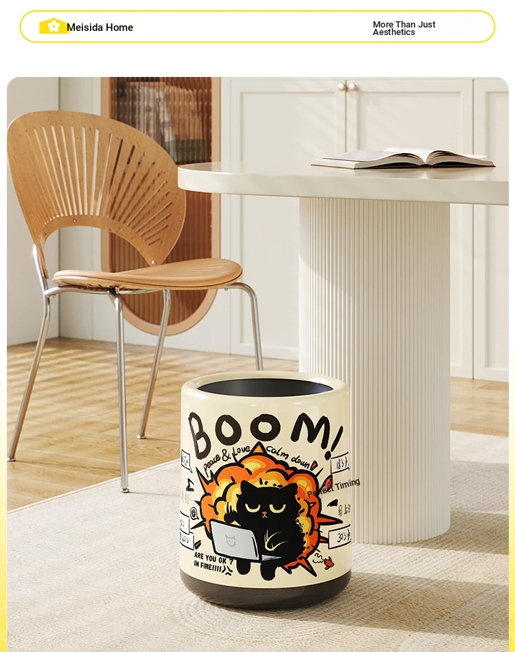 Meisida 2025 New Stylish Trash Can - Creamy Aesthetic with Creative Text, Perfect for Home Use in Living Room and Bathroom, Lid Included