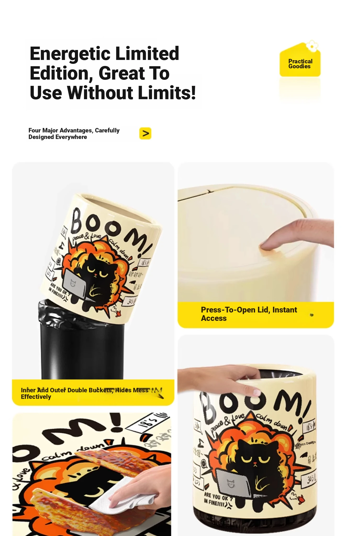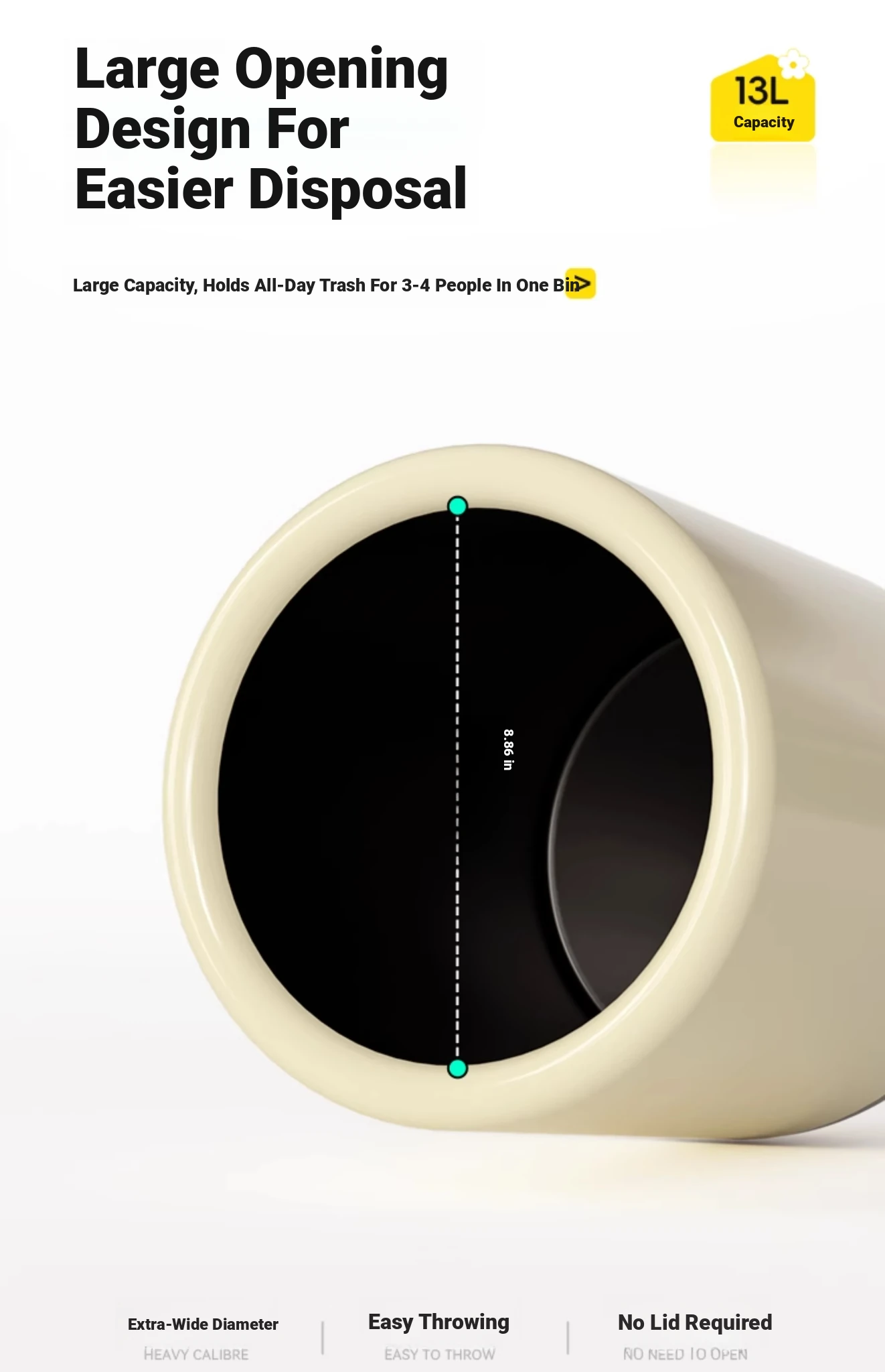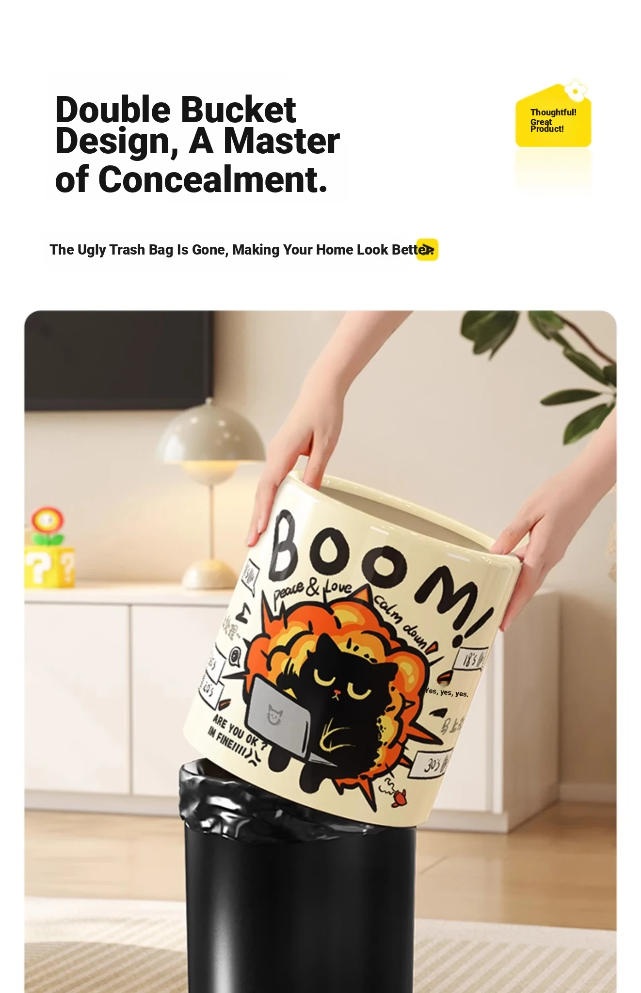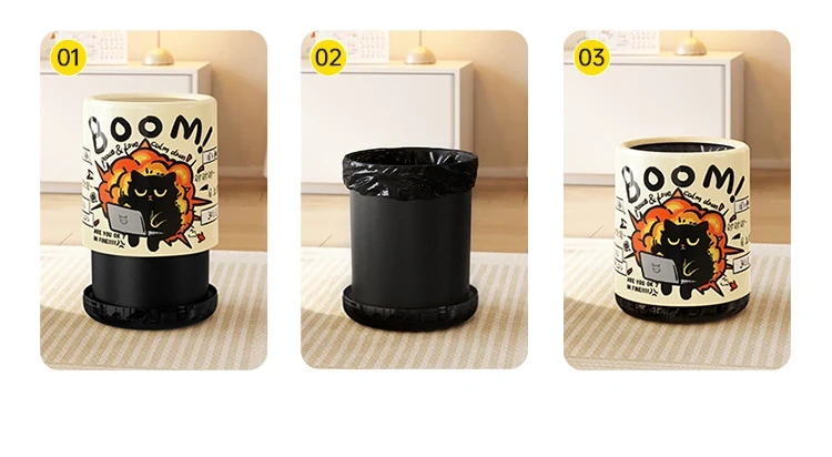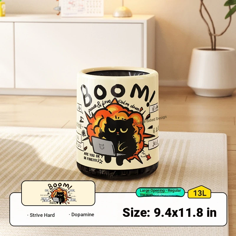 Meisida 2025 New Stylish Trash Can - Creamy Aesthetic with Creative Text, Perfect for Home Use in Living Room and Bathroom, Lid Included