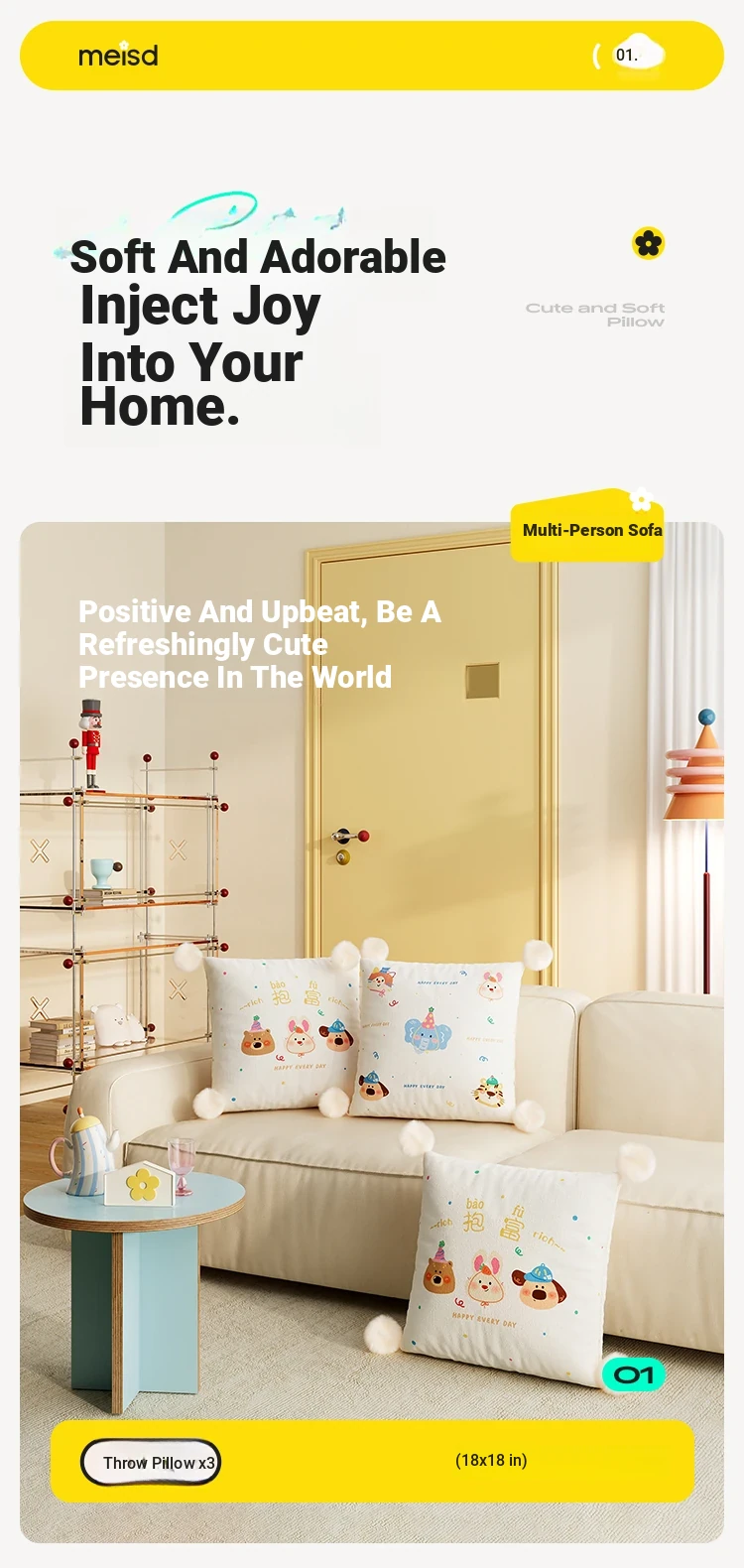 Meisida Cream Wind Throw Pillow - Stylish and Luxurious Accent for Sofa, Living Room, and Office - 2024 New Cute Design for Car and Home Decor