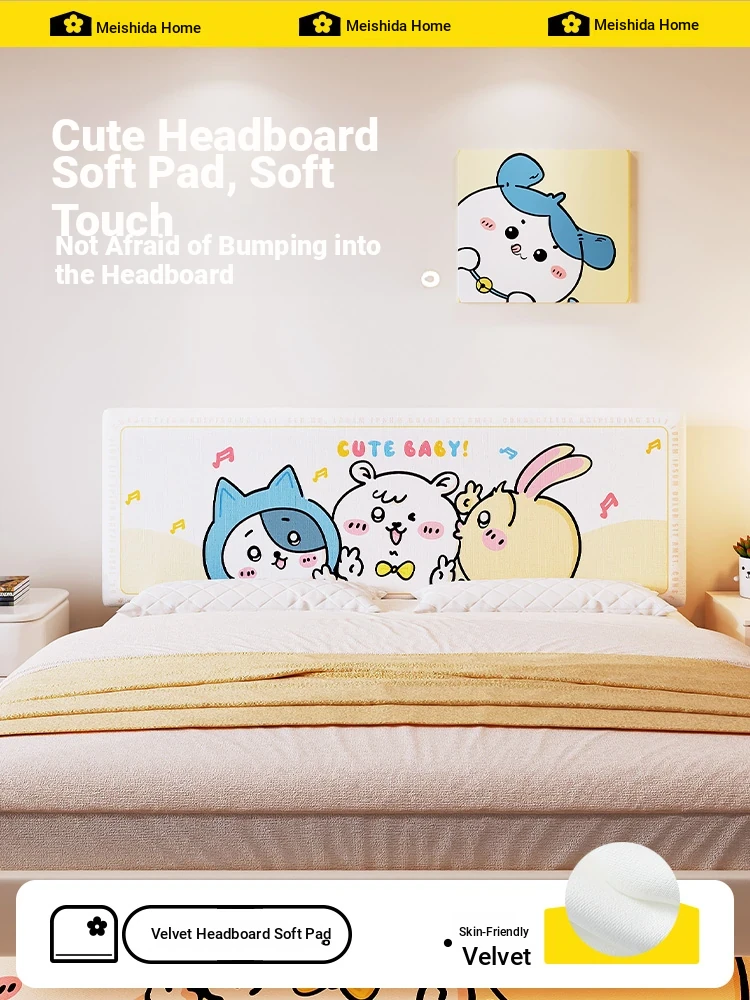 Meisida Cute Cartoon Headboard Cushion - Soft Anti-Collision Backrest, Removable & Washable, Perfect for Headboard Transformation.