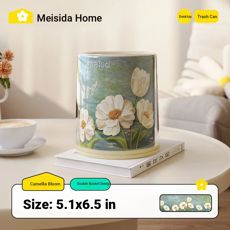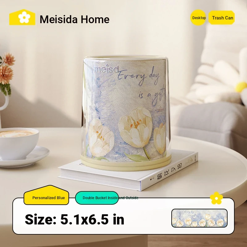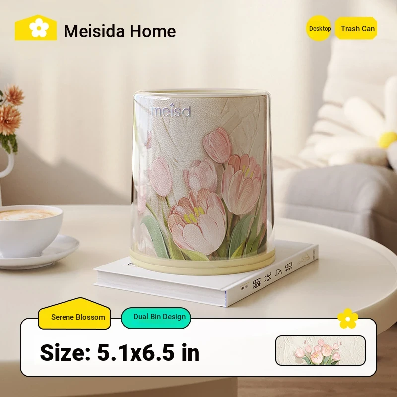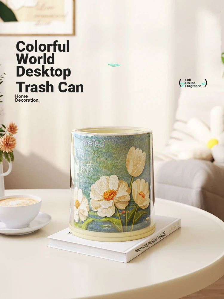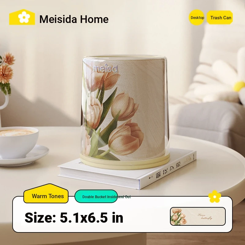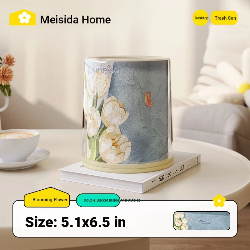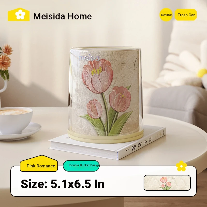 Meisida Cute Mini Tulip Desktop Trash Can - Stylish Creamy Transparent Small Waste Bin for Home and Office Décor, Perfect for Keeping Your Space Tidy and Chic!