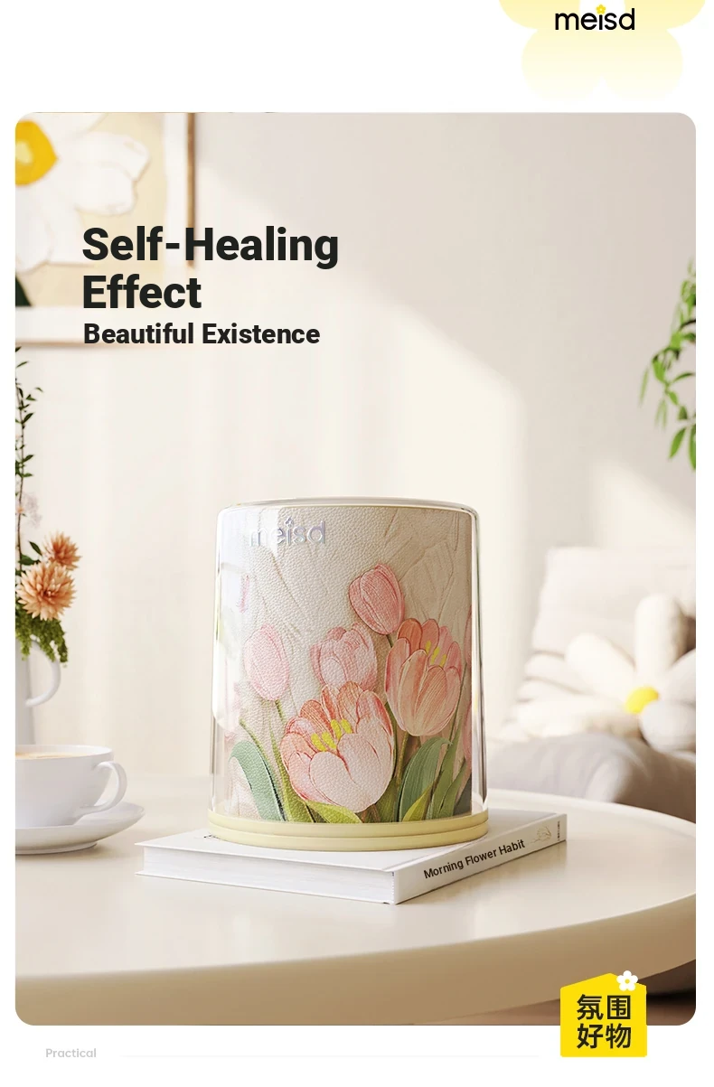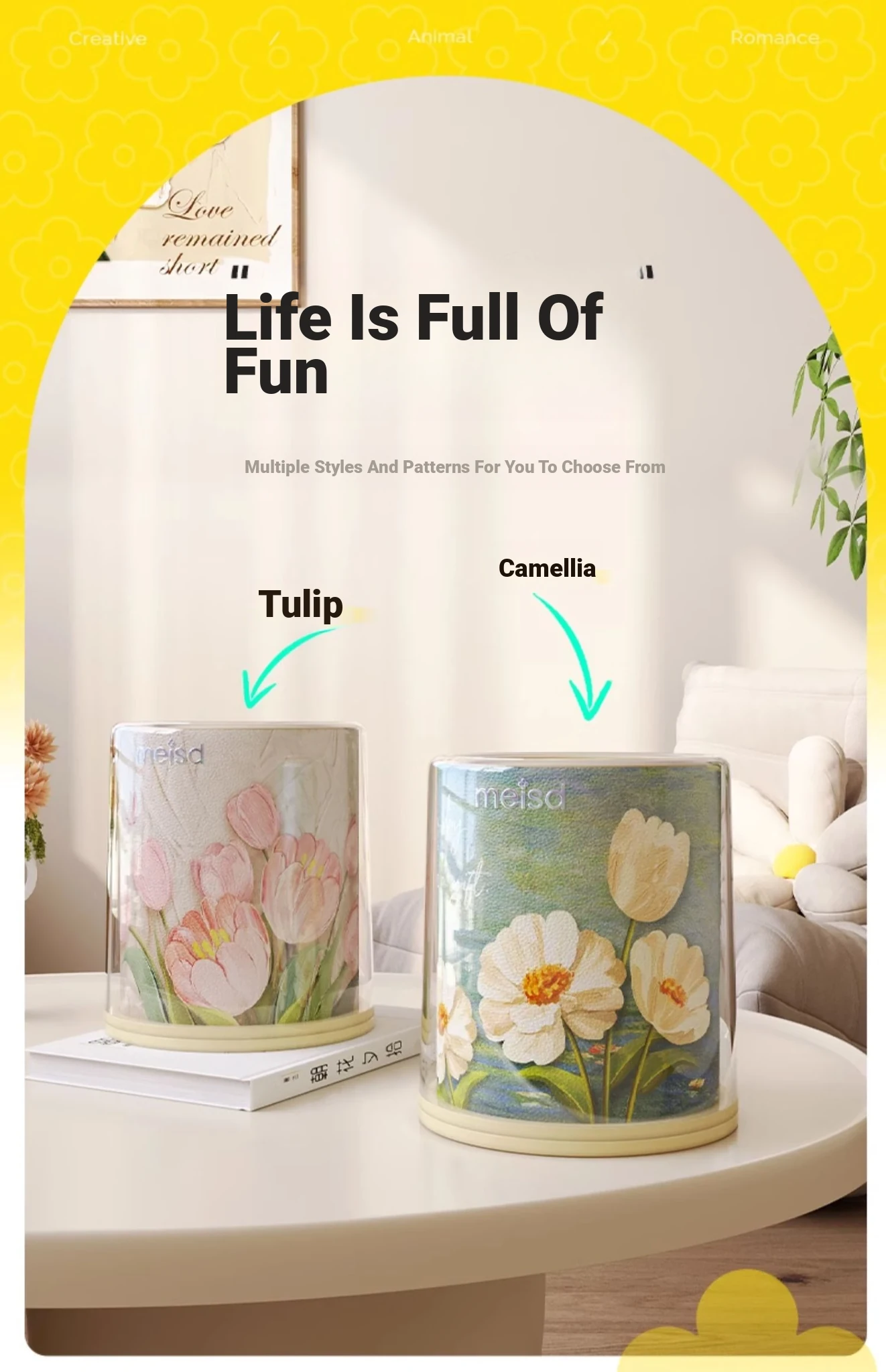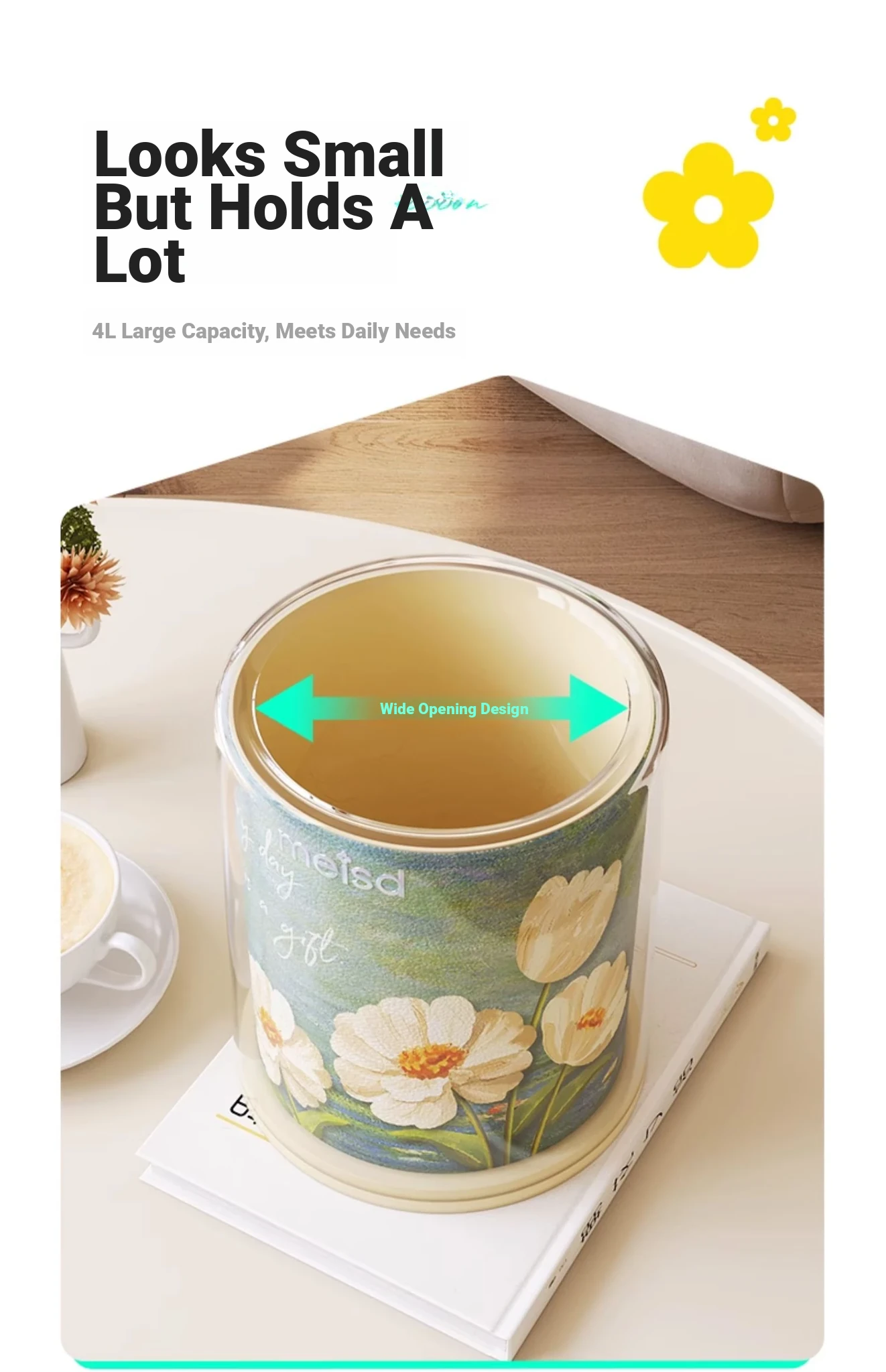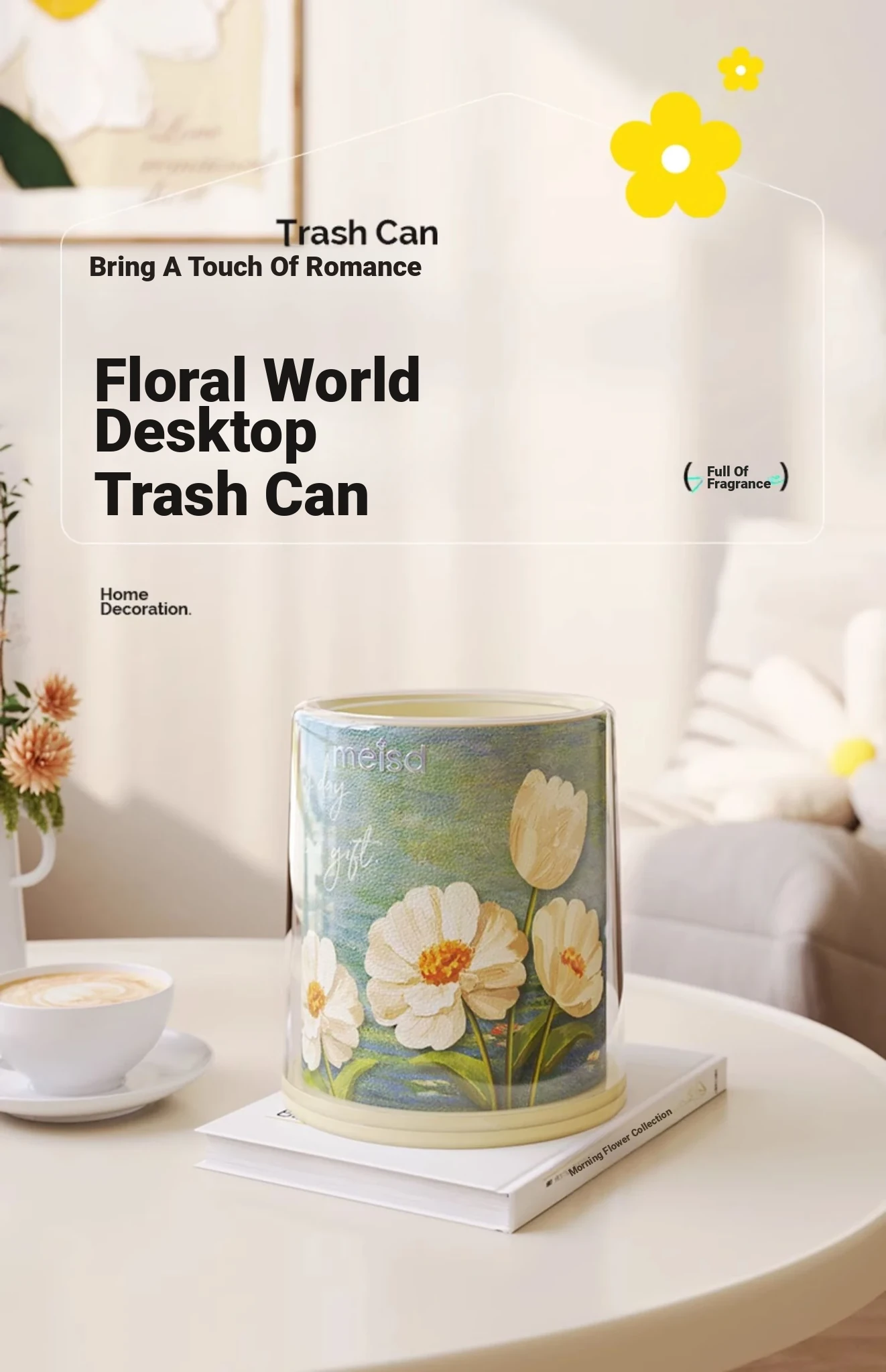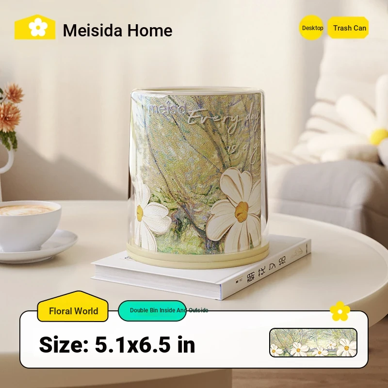 Meisida Cute Mini Tulip Desktop Trash Can - Stylish Creamy Transparent Small Waste Bin for Home and Office Décor, Perfect for Keeping Your Space Tidy and Chic!