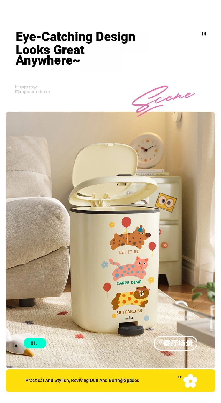 Meisida Stylish Foot-Pedal Trash Can - High-Capacity, Lidded Waste Bin for Home Use, Perfect for Modern Living Rooms, Elevate Your Space with Functional Elegance!