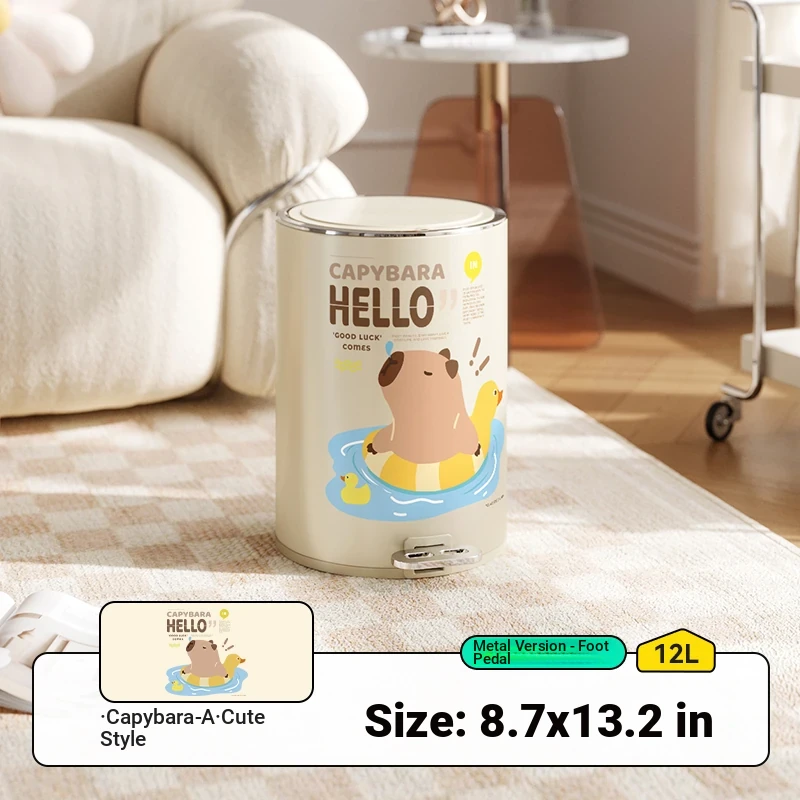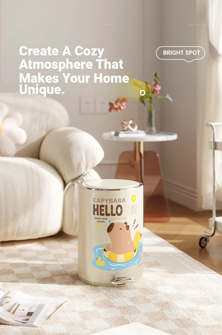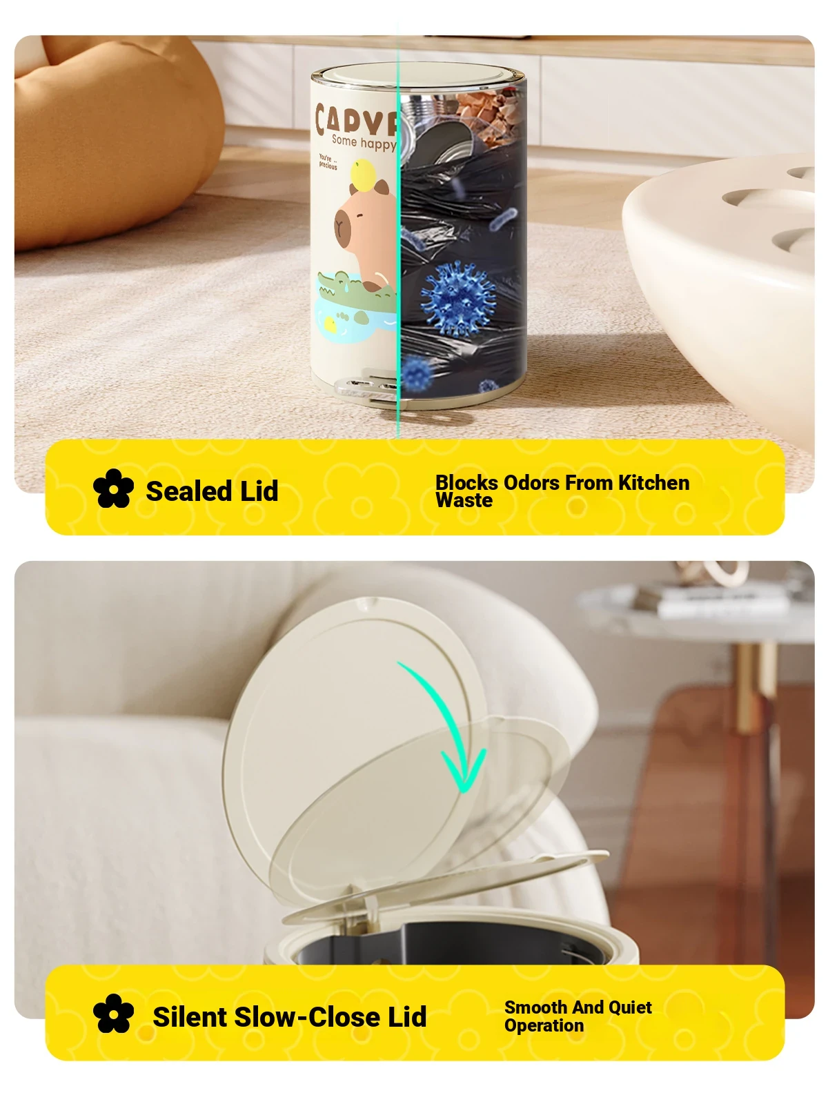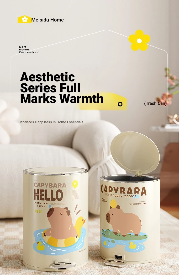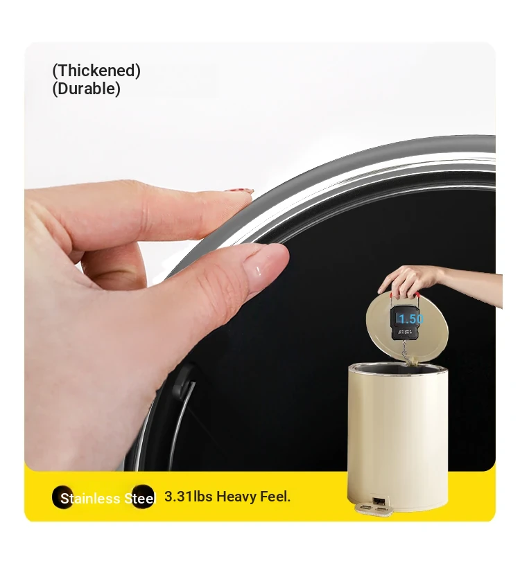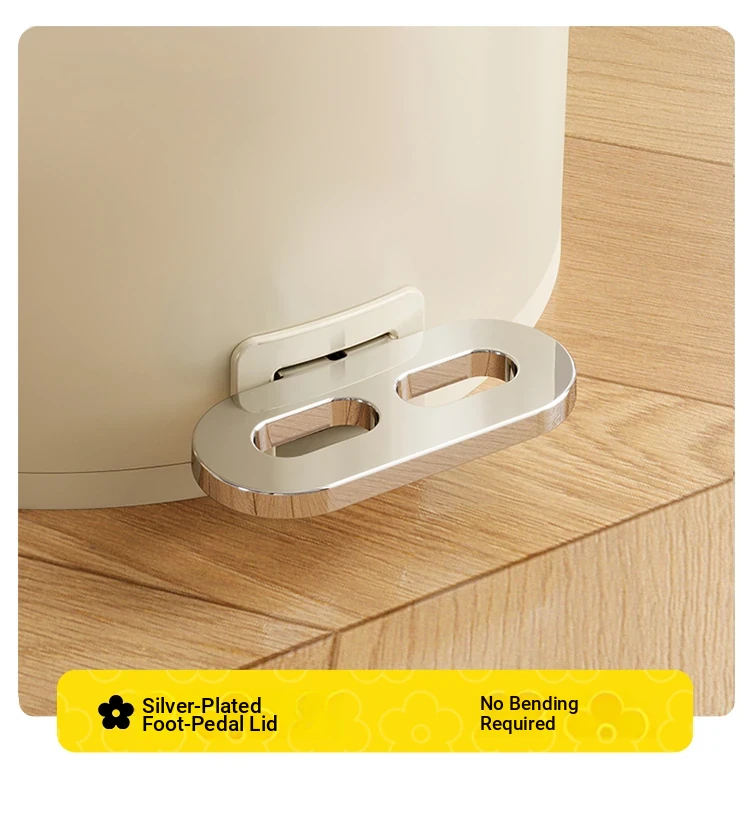Meisida Stylish Metal Step Trash Can - Large Capacity Household Bin for Living Room, Elegant Cream Design with Lid