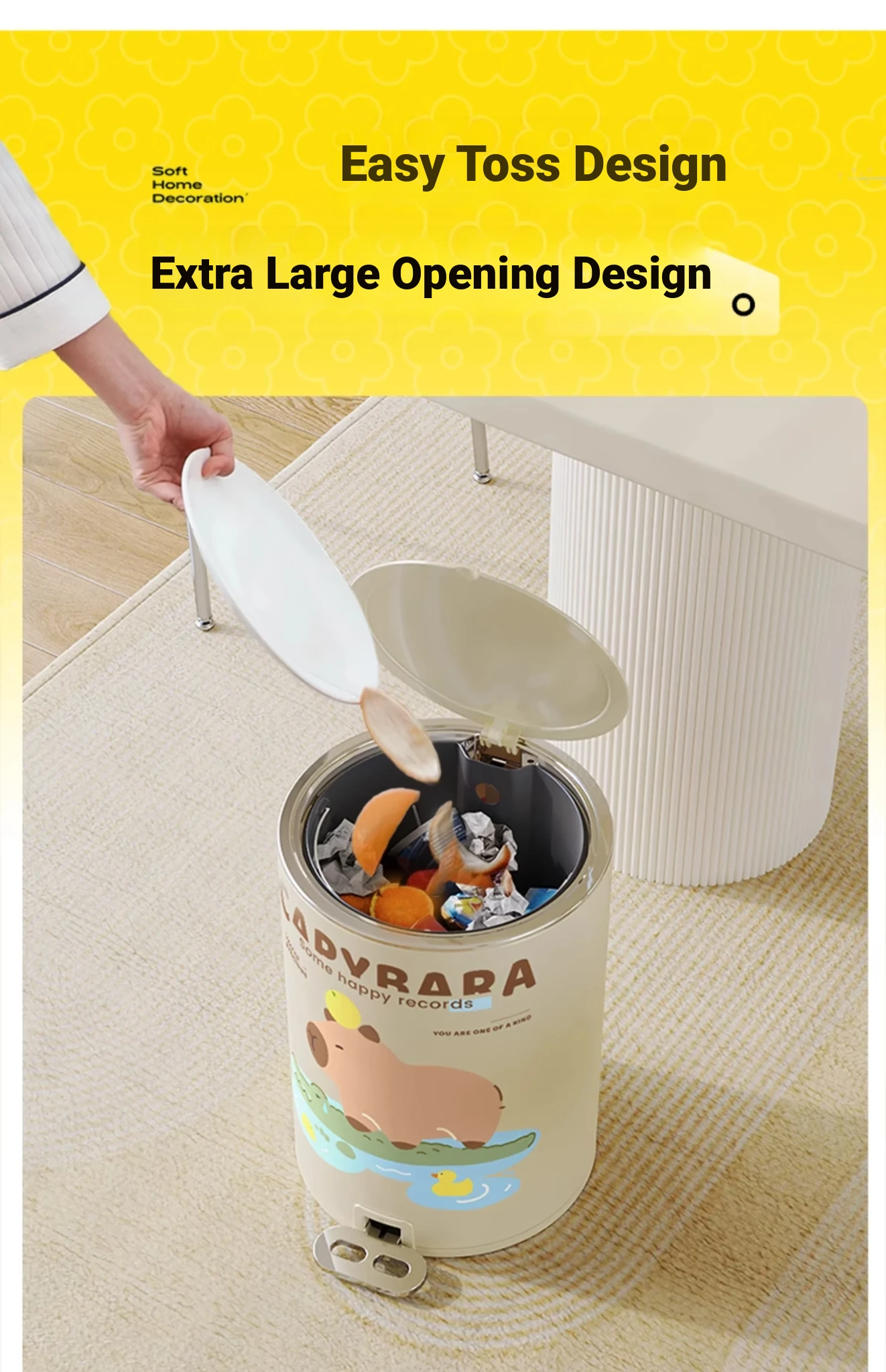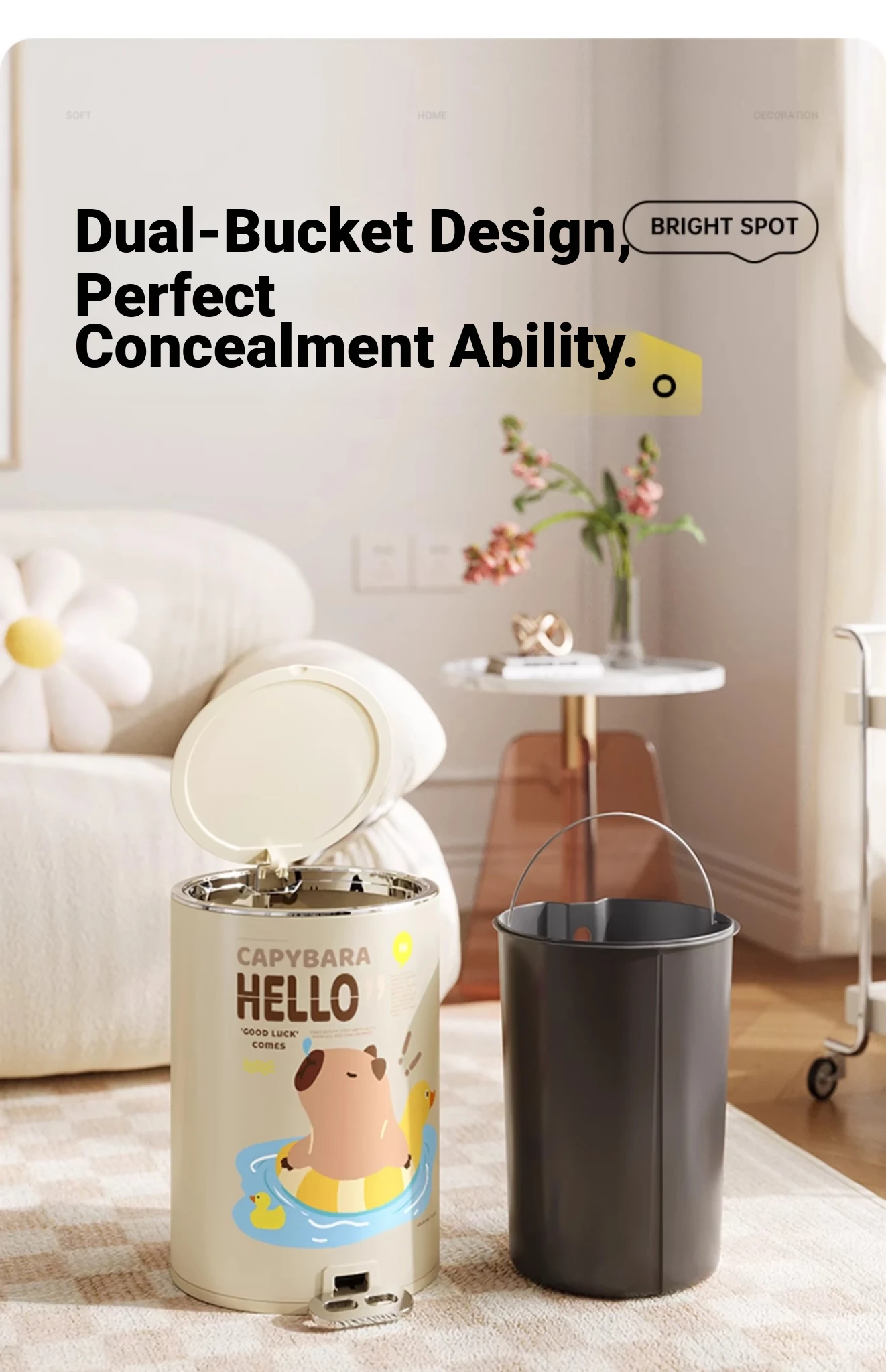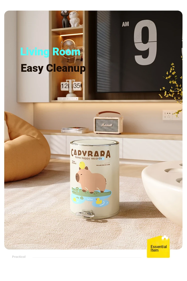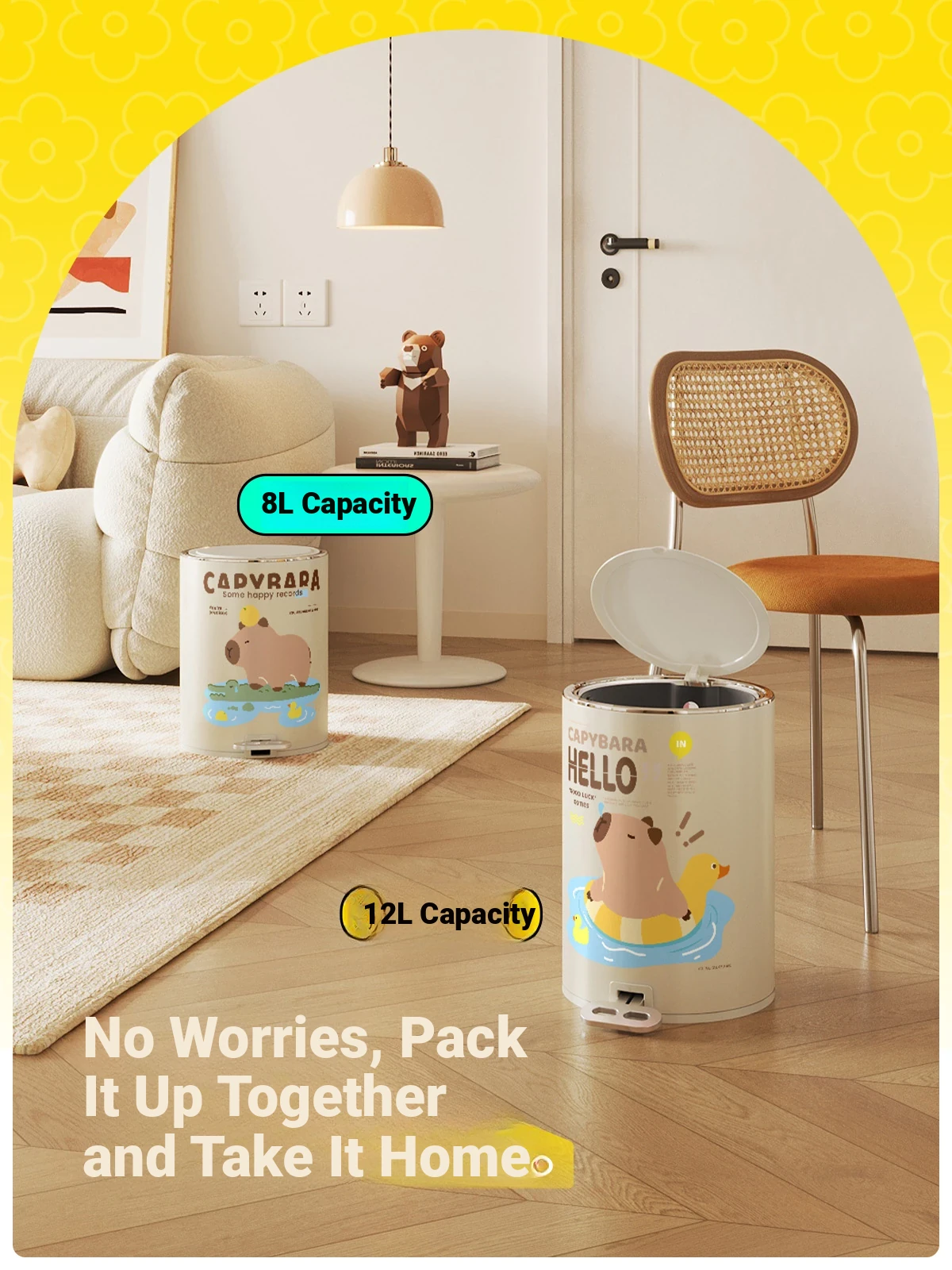 Meisida Stylish Metal Step Trash Can - Large Capacity Household Bin for Living Room, Elegant Cream Design with Lid