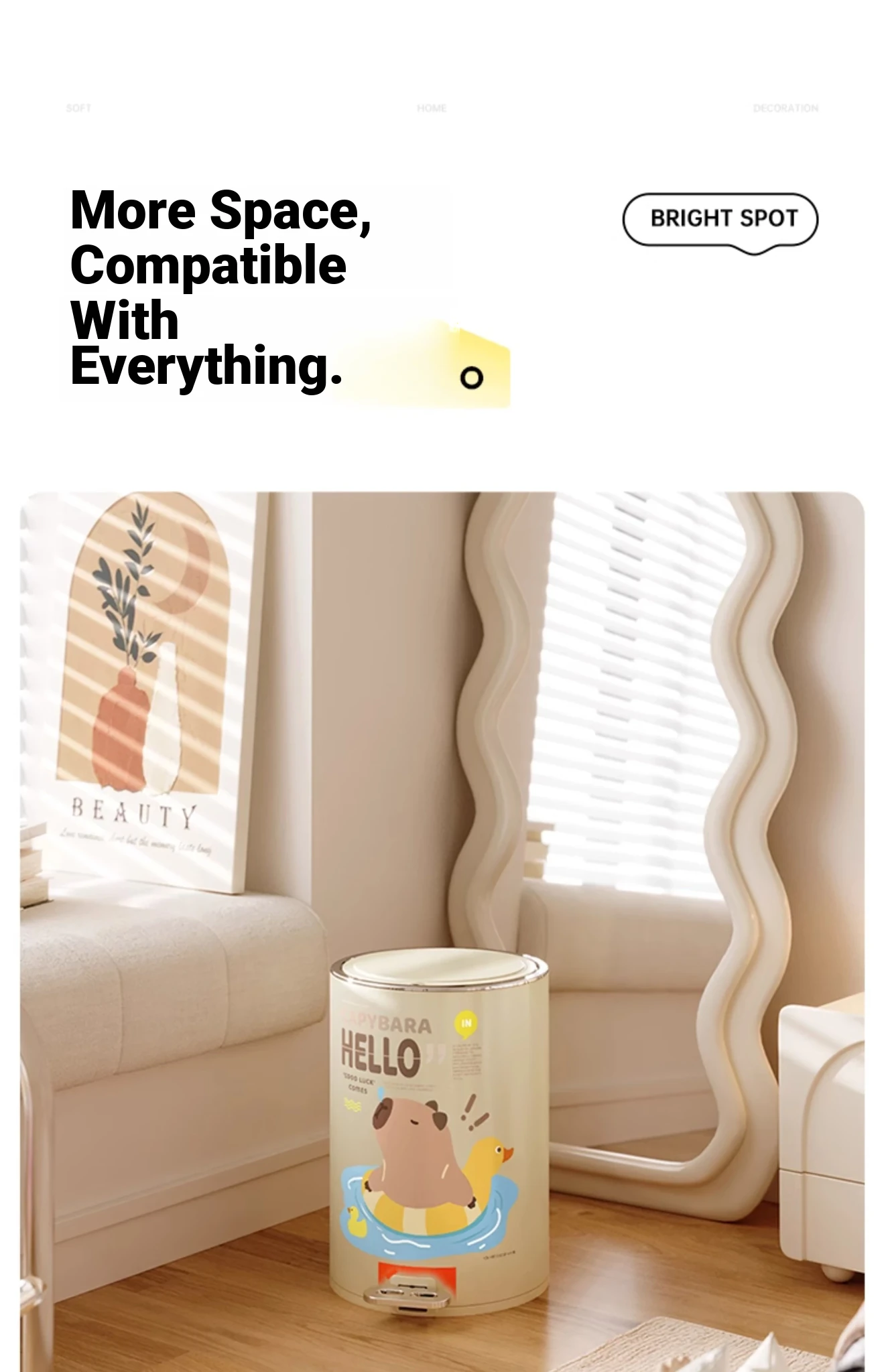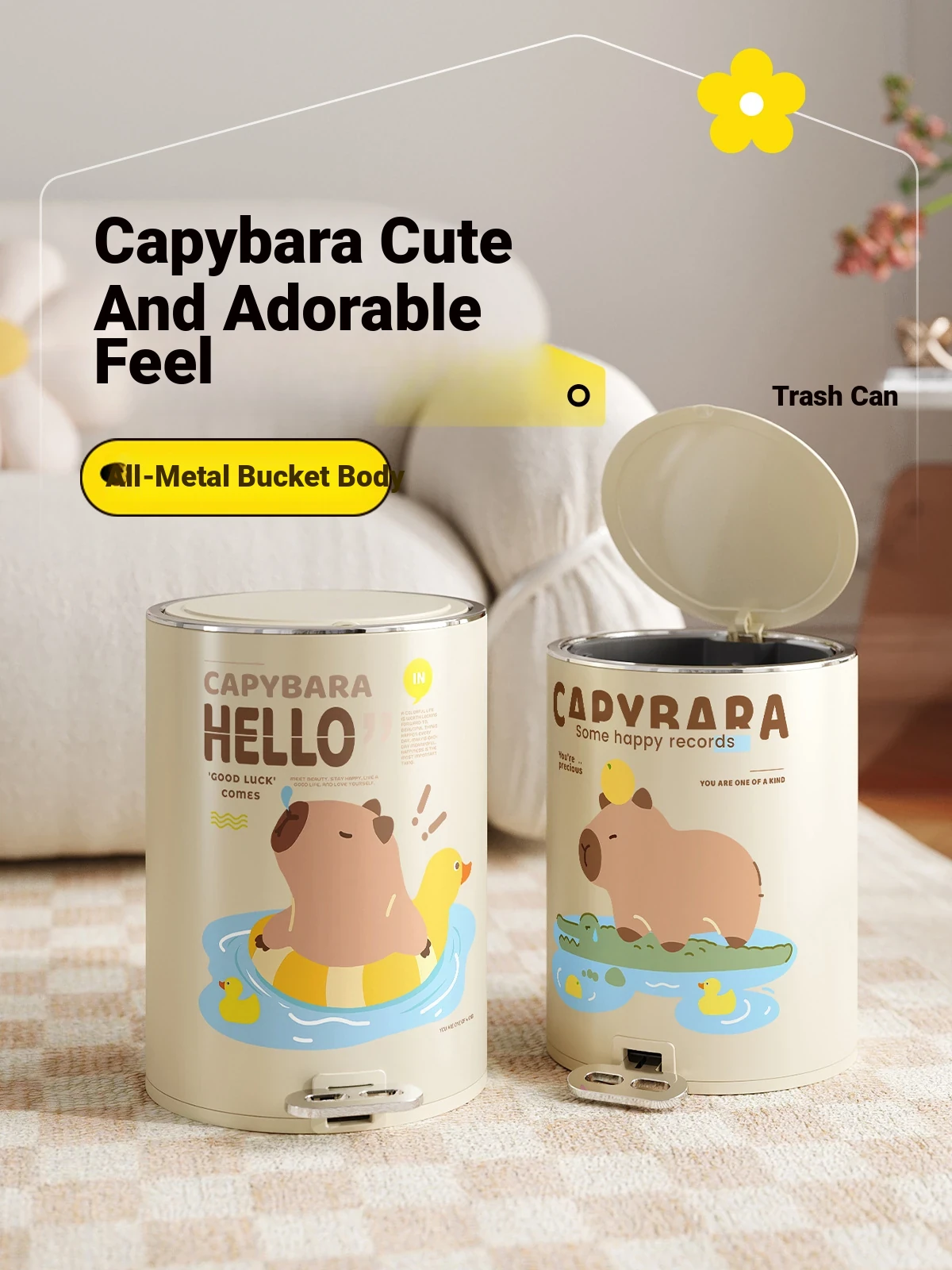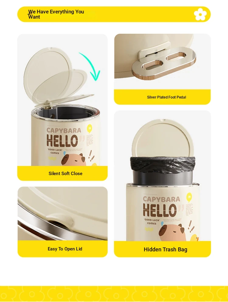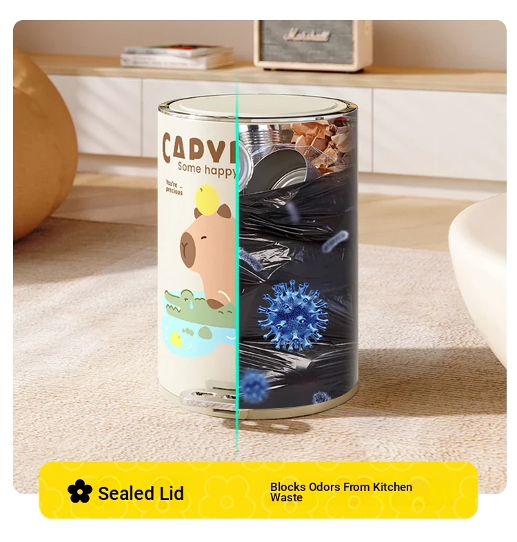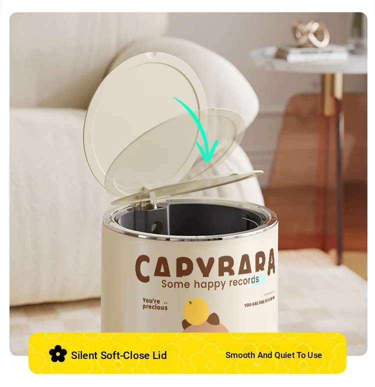 Meisida Stylish Metal Step Trash Can - Large Capacity Household Bin for Living Room, Elegant Cream Design with Lid