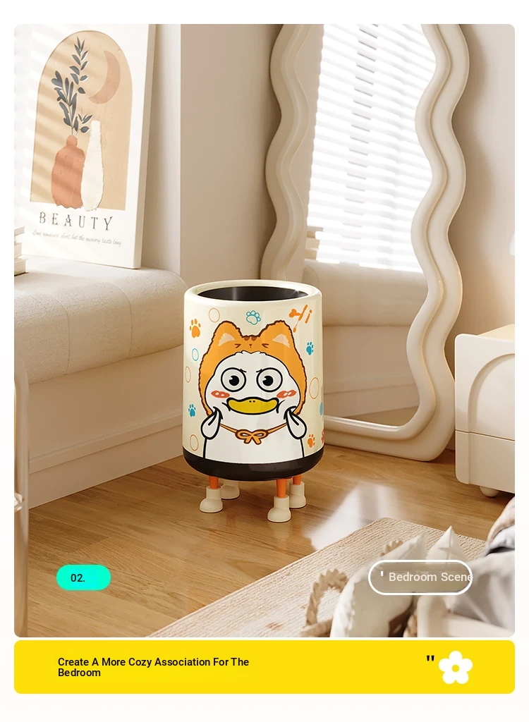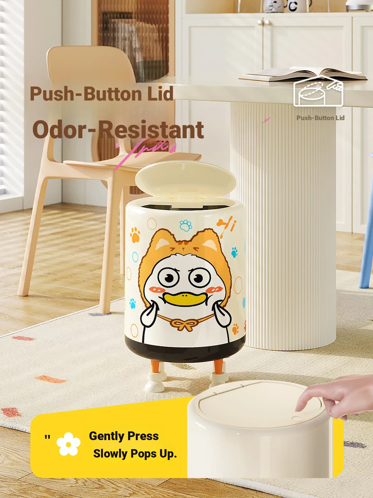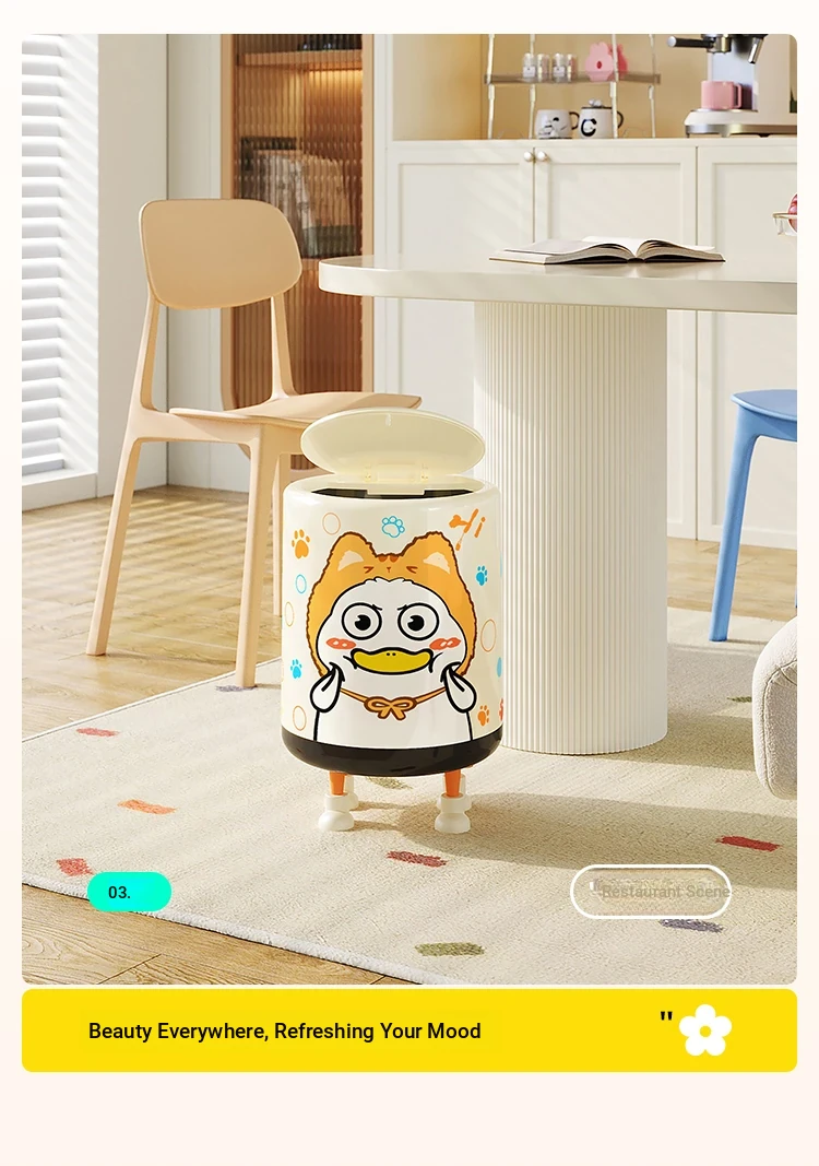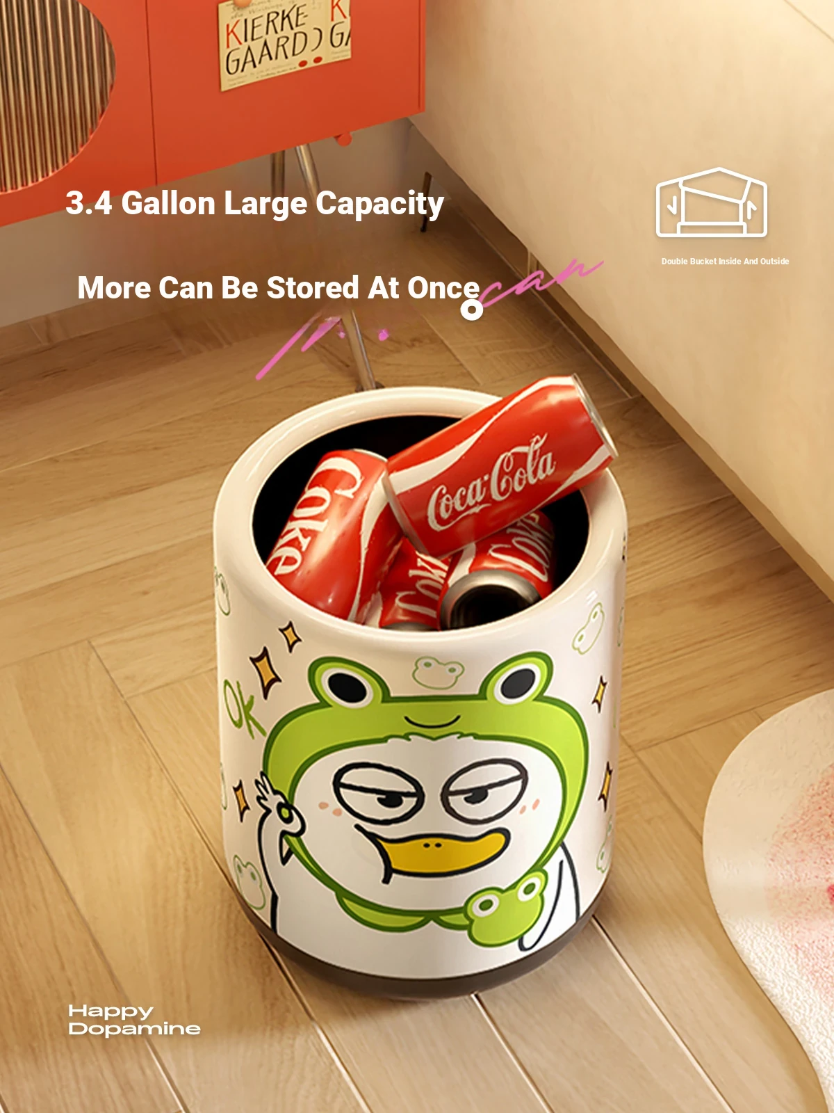 Stylish Cartoon Dopamine Cream Trash Can - Large Covered Waste Bin for Home, Perfect for Living Room and Bedroom, High-Quality Design