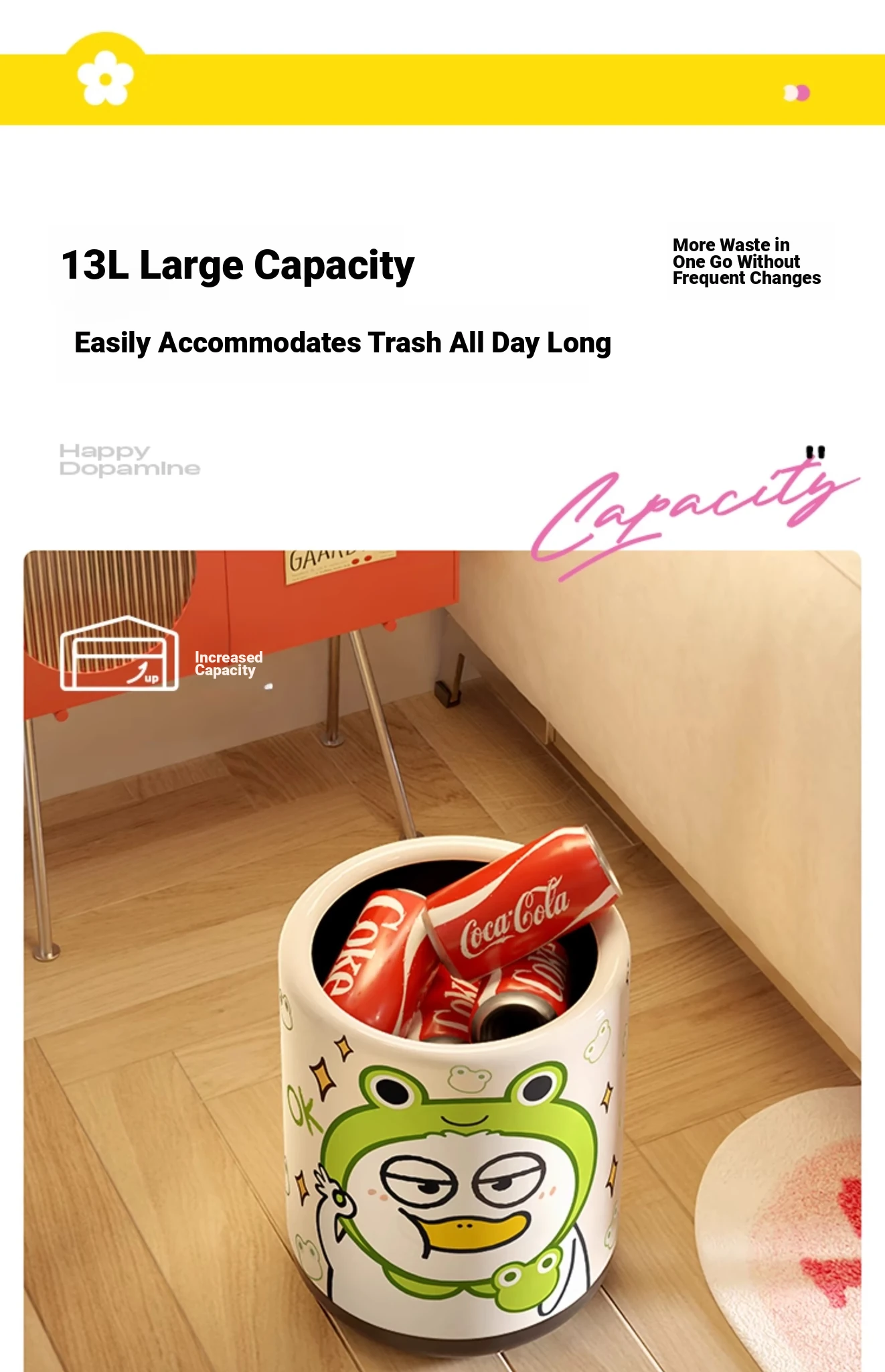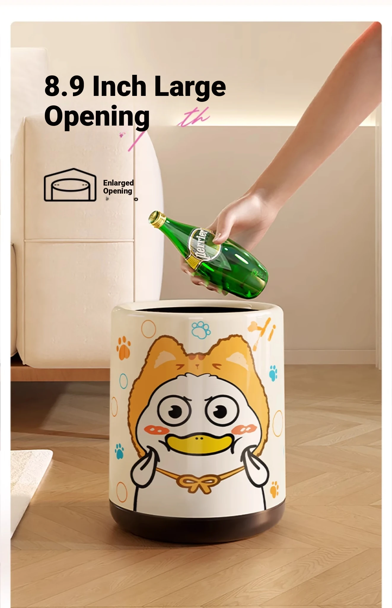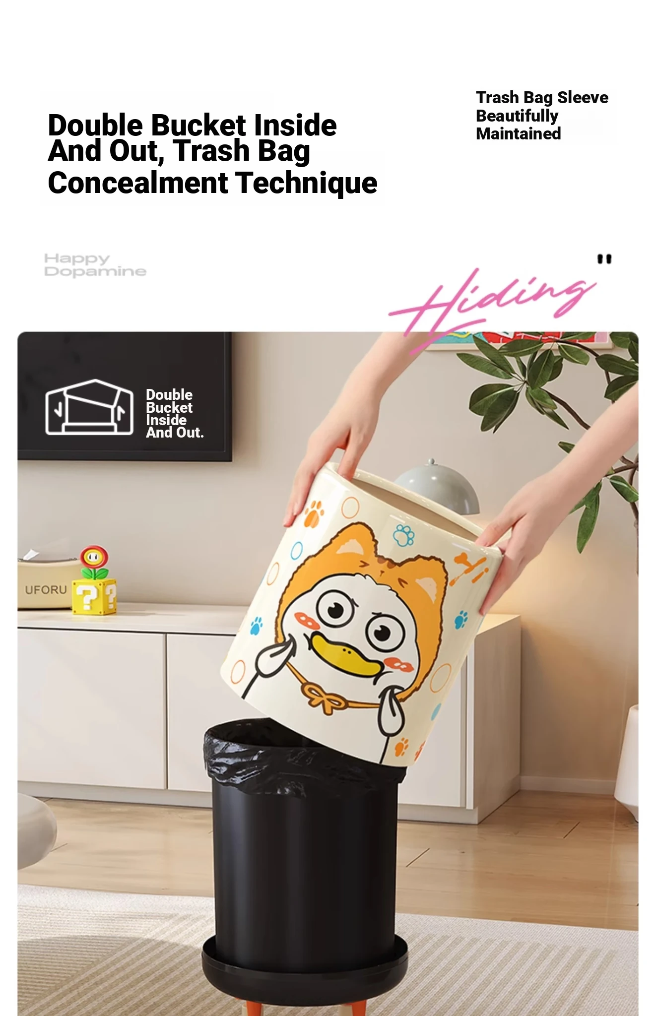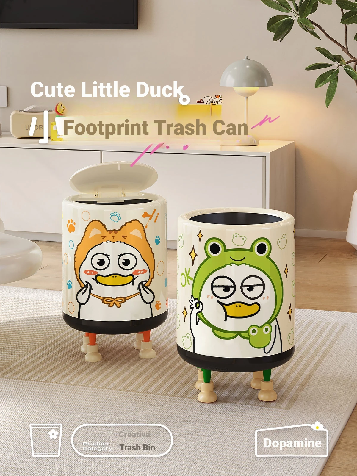 Stylish Cartoon Dopamine Cream Trash Can - Large Covered Waste Bin for Home, Perfect for Living Room and Bedroom, High-Quality Design