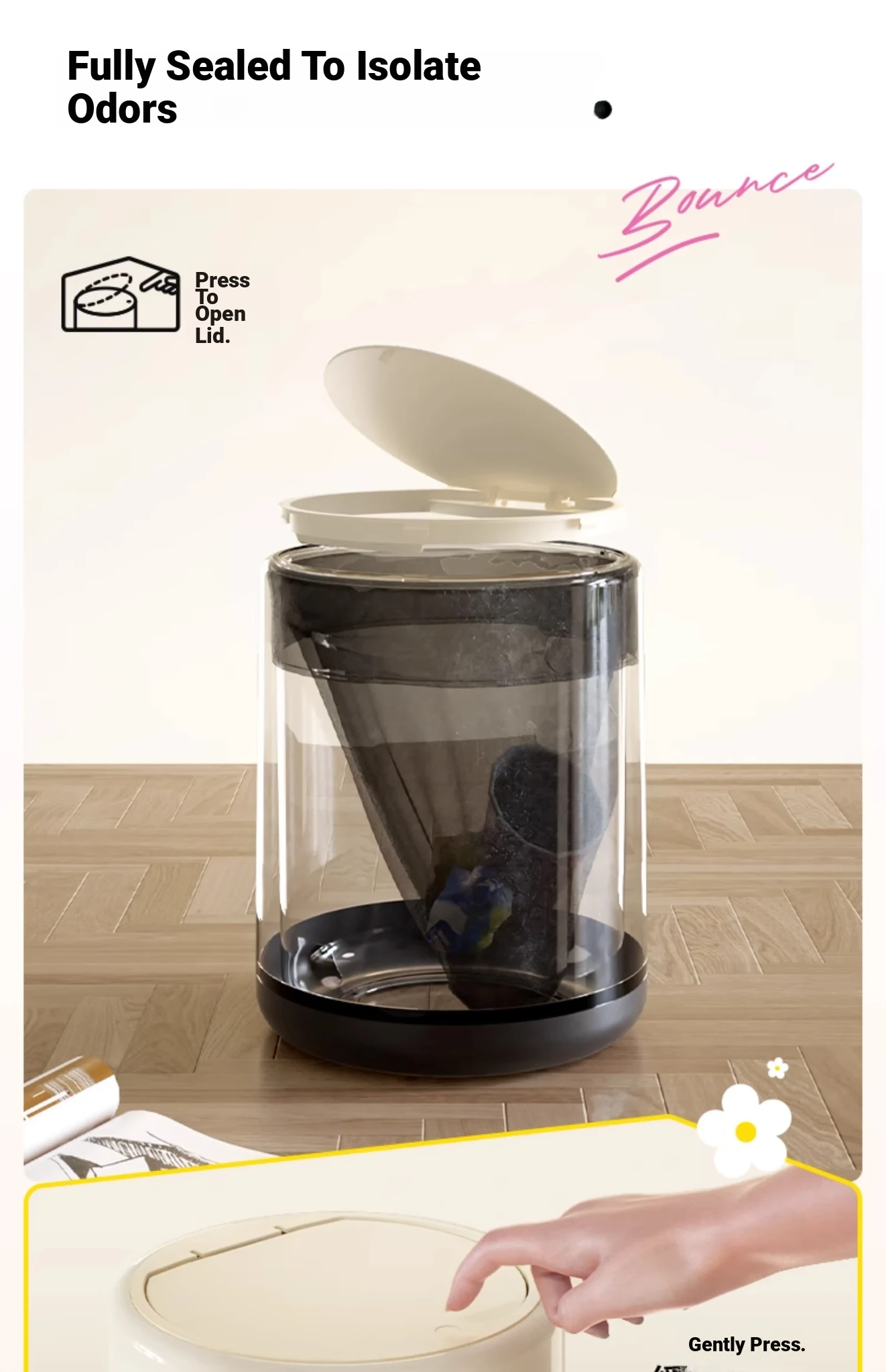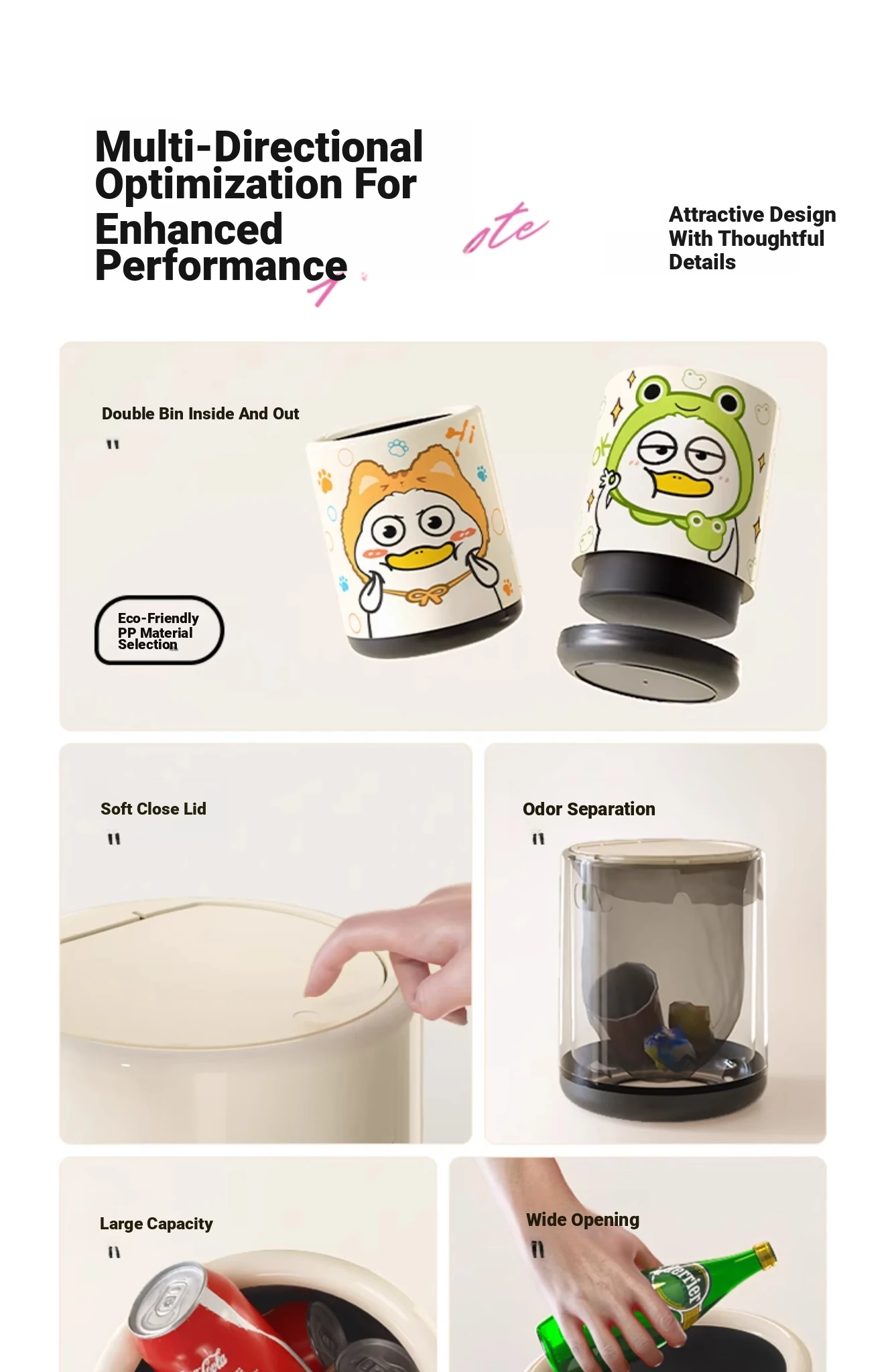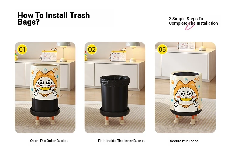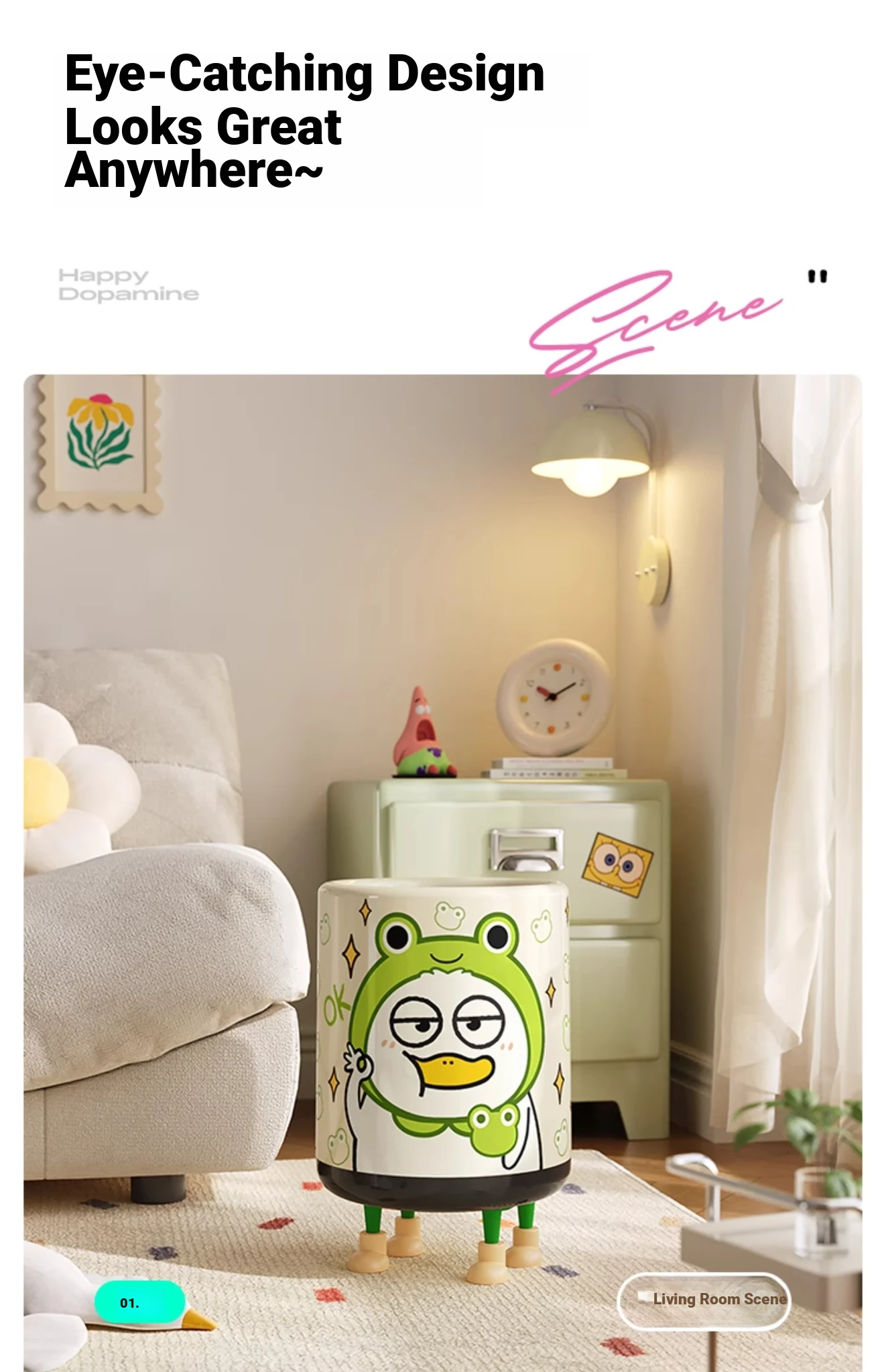 Stylish Cartoon Dopamine Cream Trash Can - Large Covered Waste Bin for Home, Perfect for Living Room and Bedroom, High-Quality Design