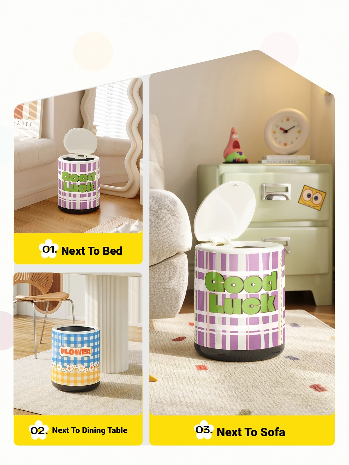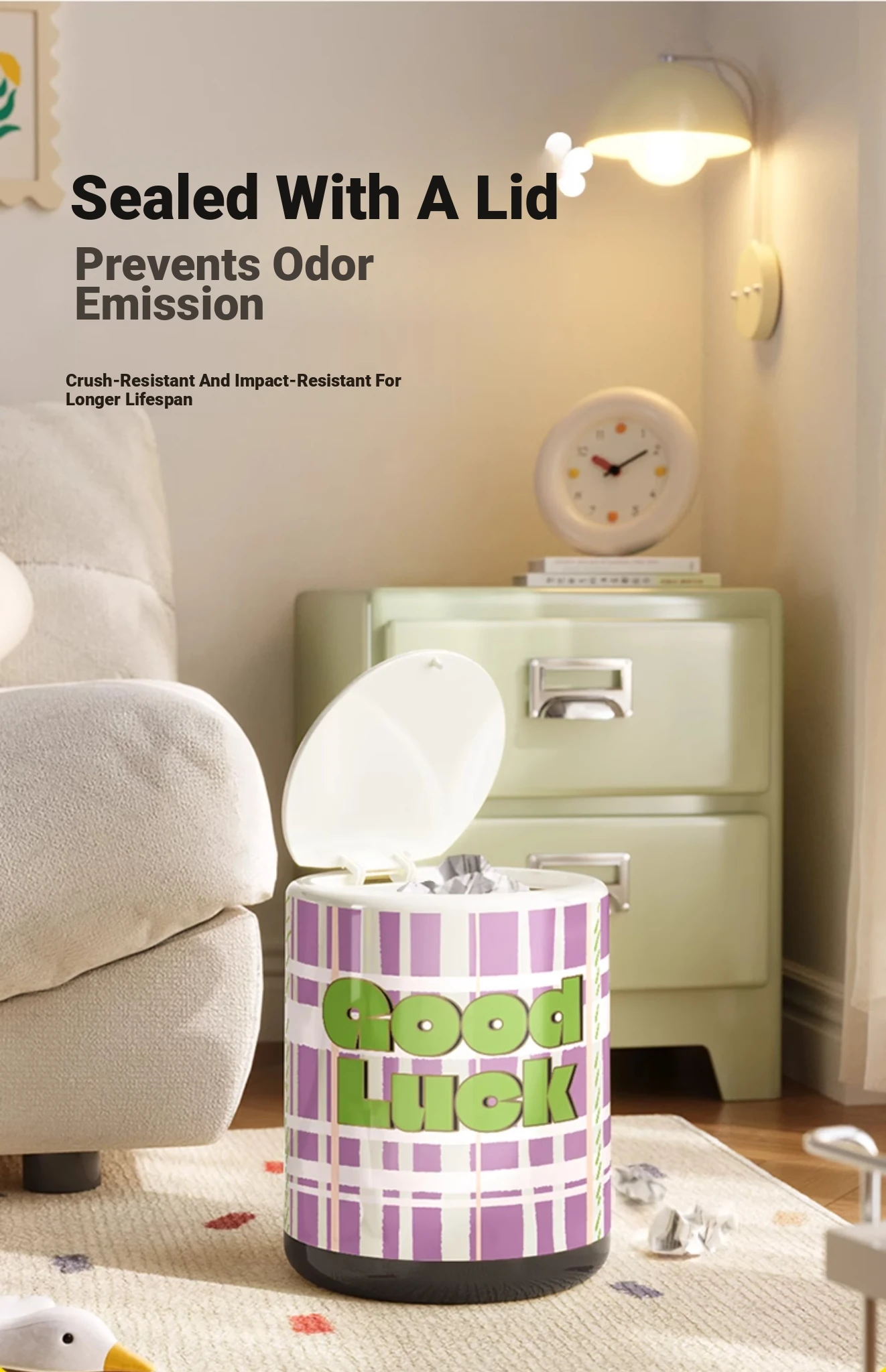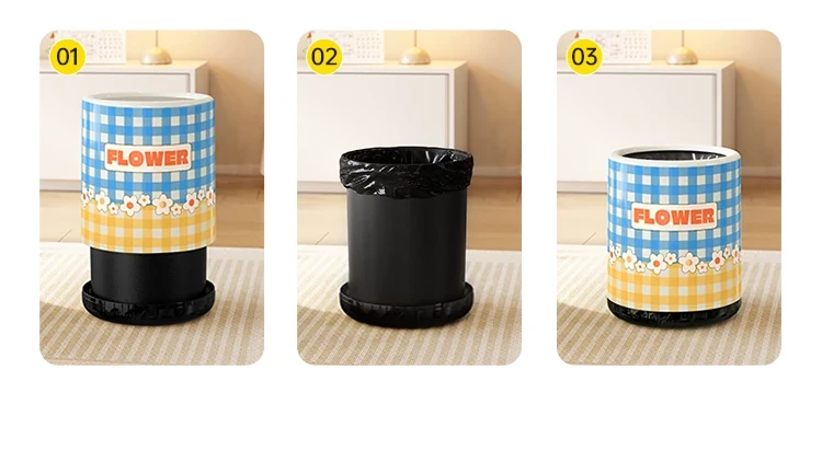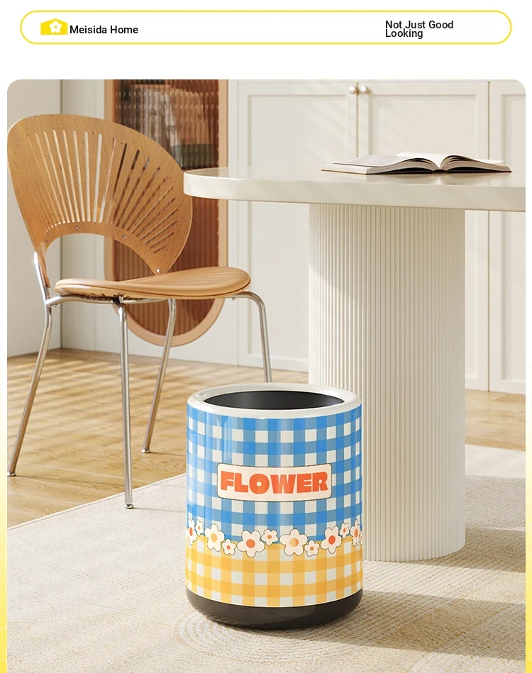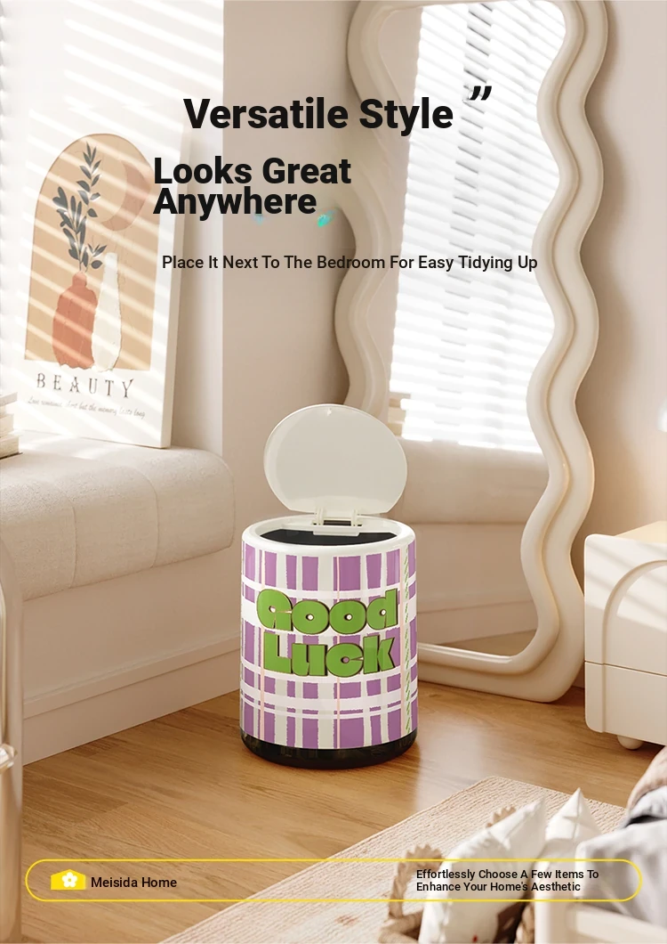 Stylish Cream-Colored Large Capacity Trash Can with Lid - Perfect for Home, Bedroom, and Living Room - Push-Top Design for Easy Use