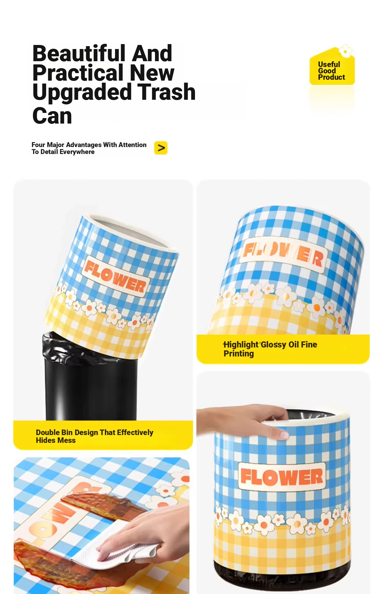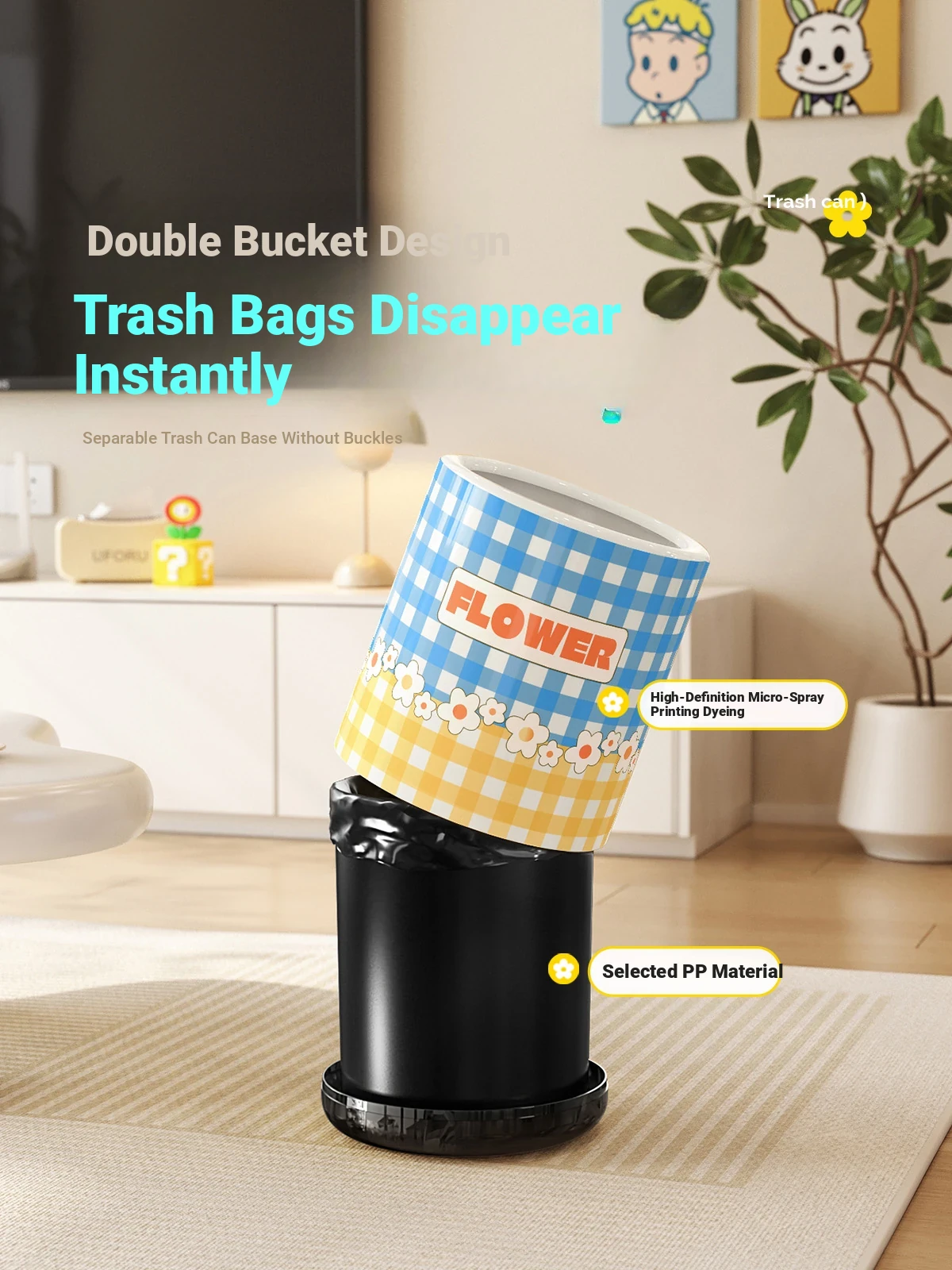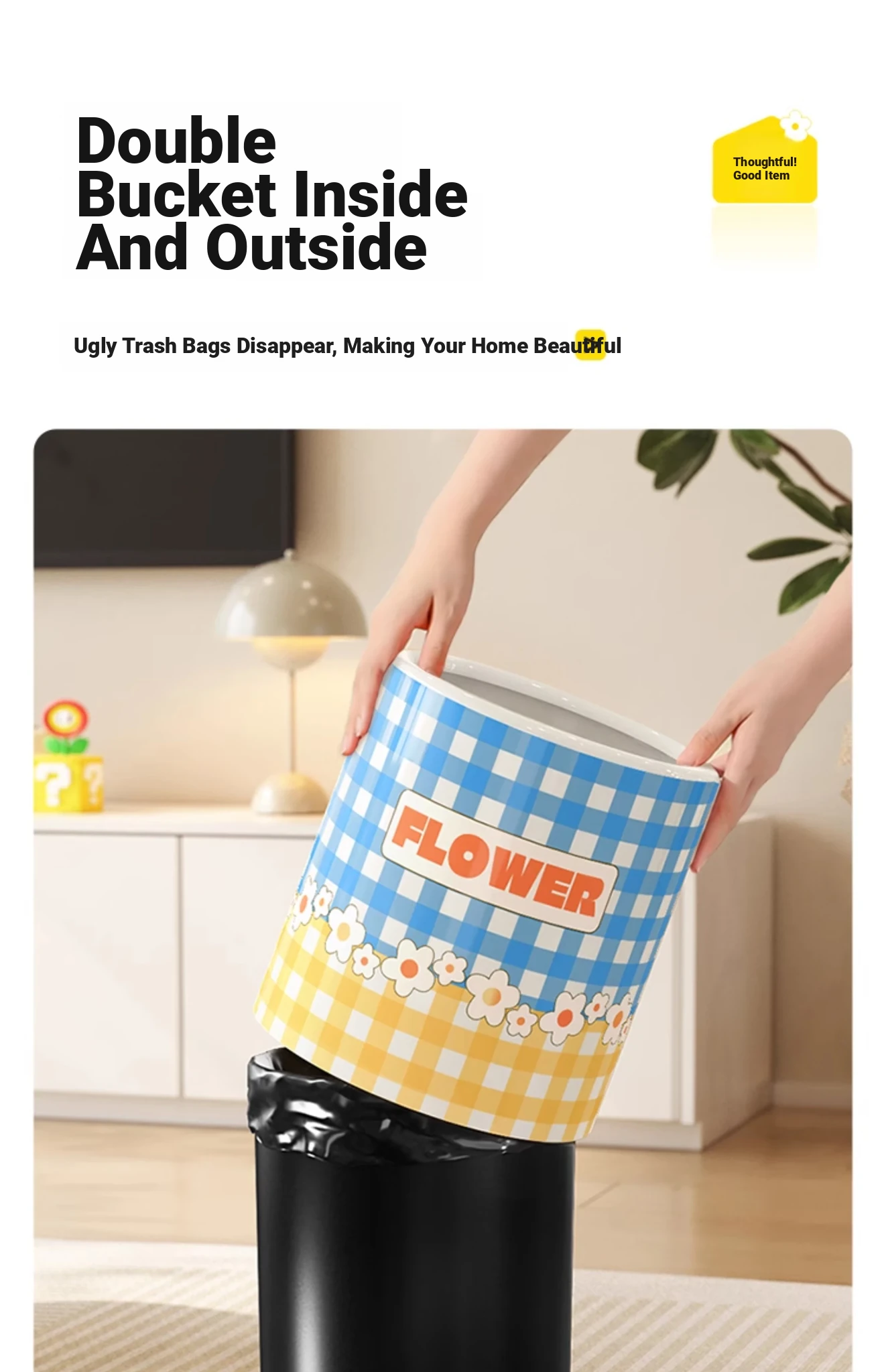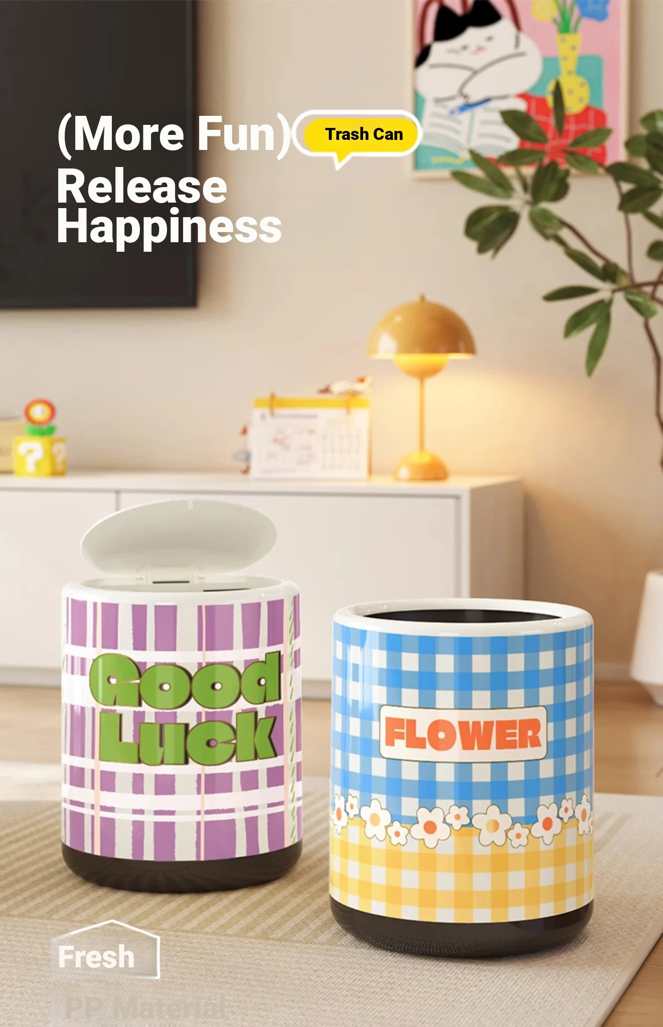 Stylish Cream-Colored Large Capacity Trash Can with Lid - Perfect for Home, Bedroom, and Living Room - Push-Top Design for Easy Use