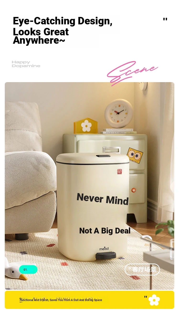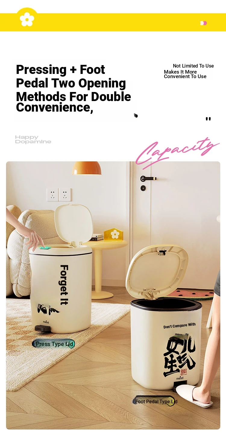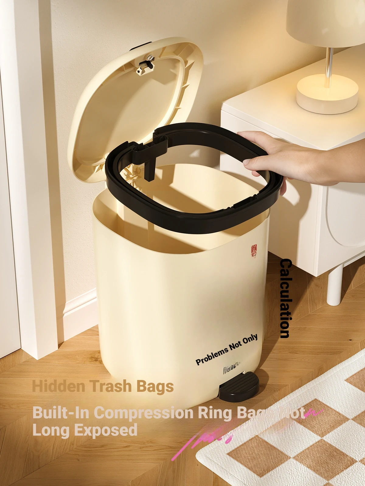 Stylish Large Capacity Trash Can with Lid - Foot Pedal Design for Home Use, Perfect for Living Room, Elegant and Minimalist, New Arrival