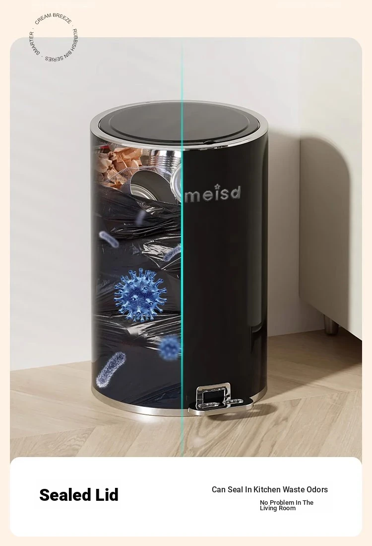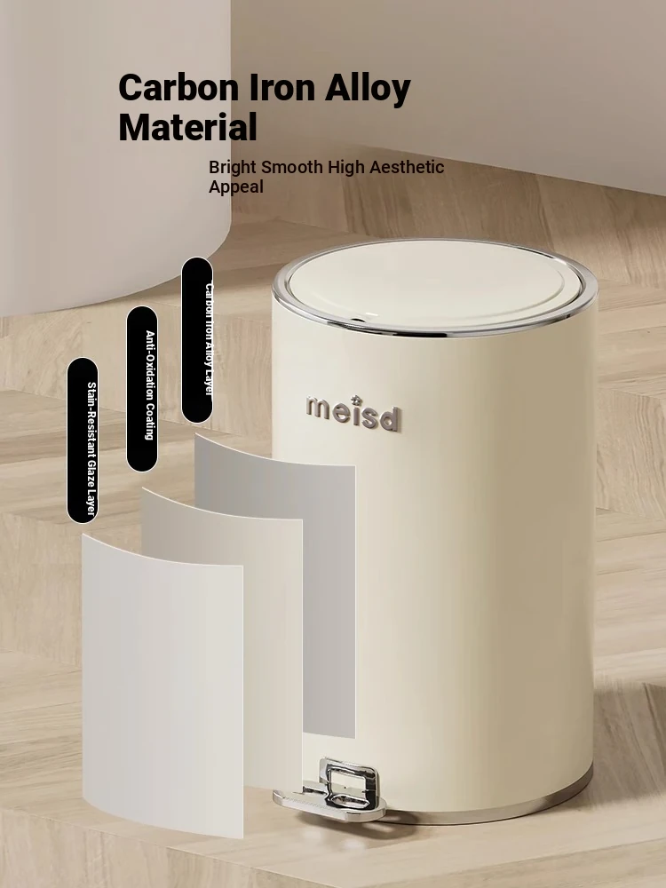Stylish Metal Foot-Activated Flip Lid Trash Can - 2025 New Model for Home Use, Large Capacity, Elegant Design for Bedrooms and Living Rooms