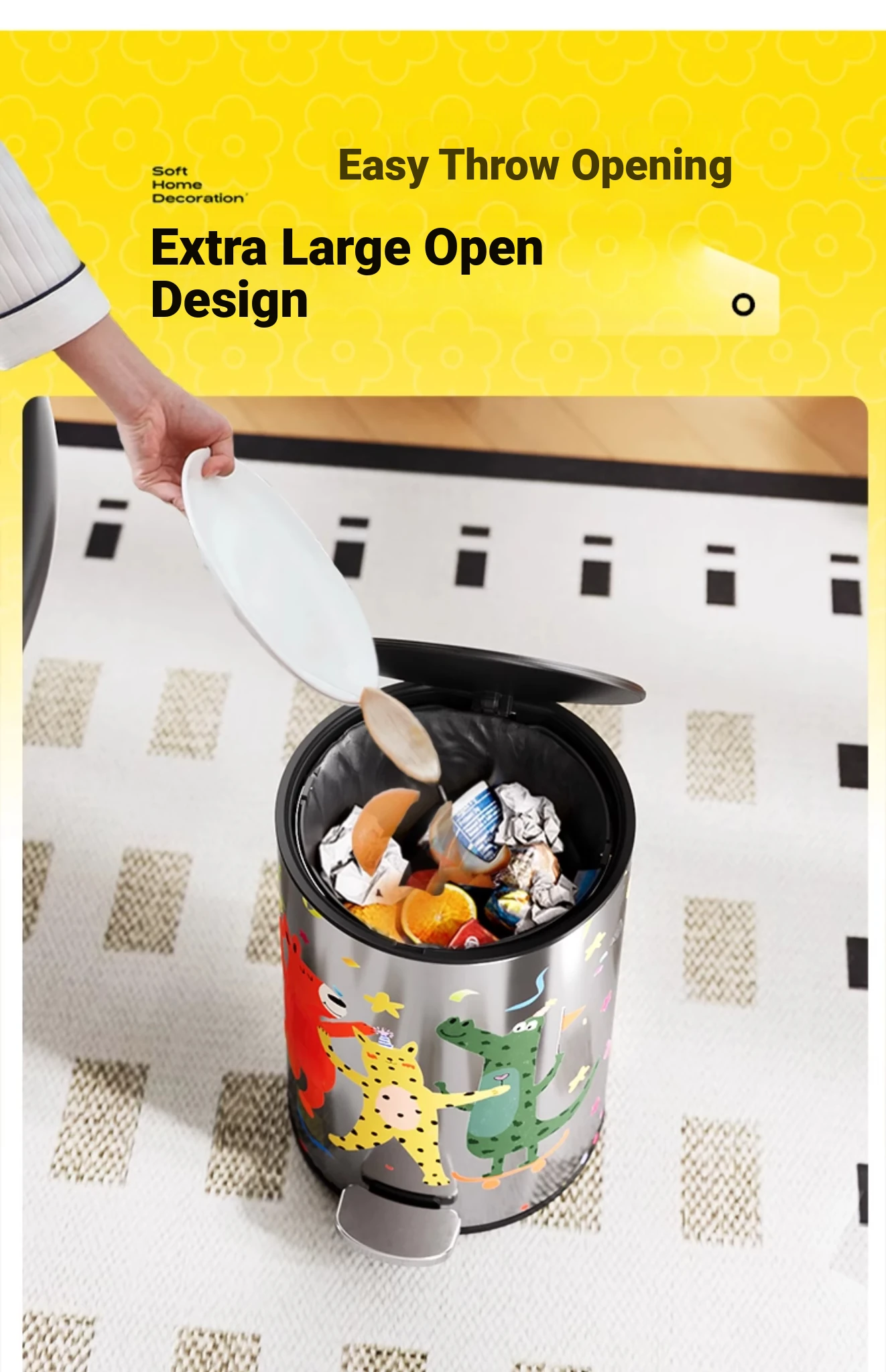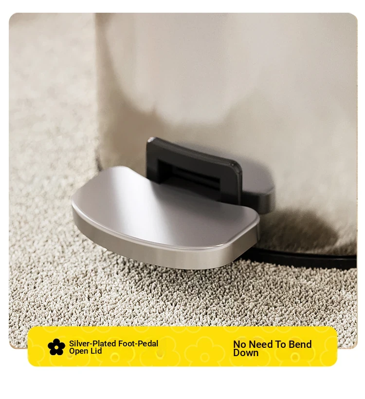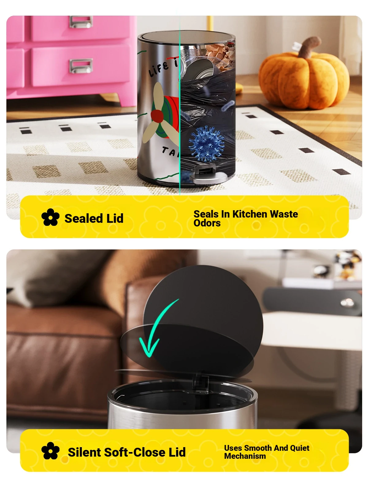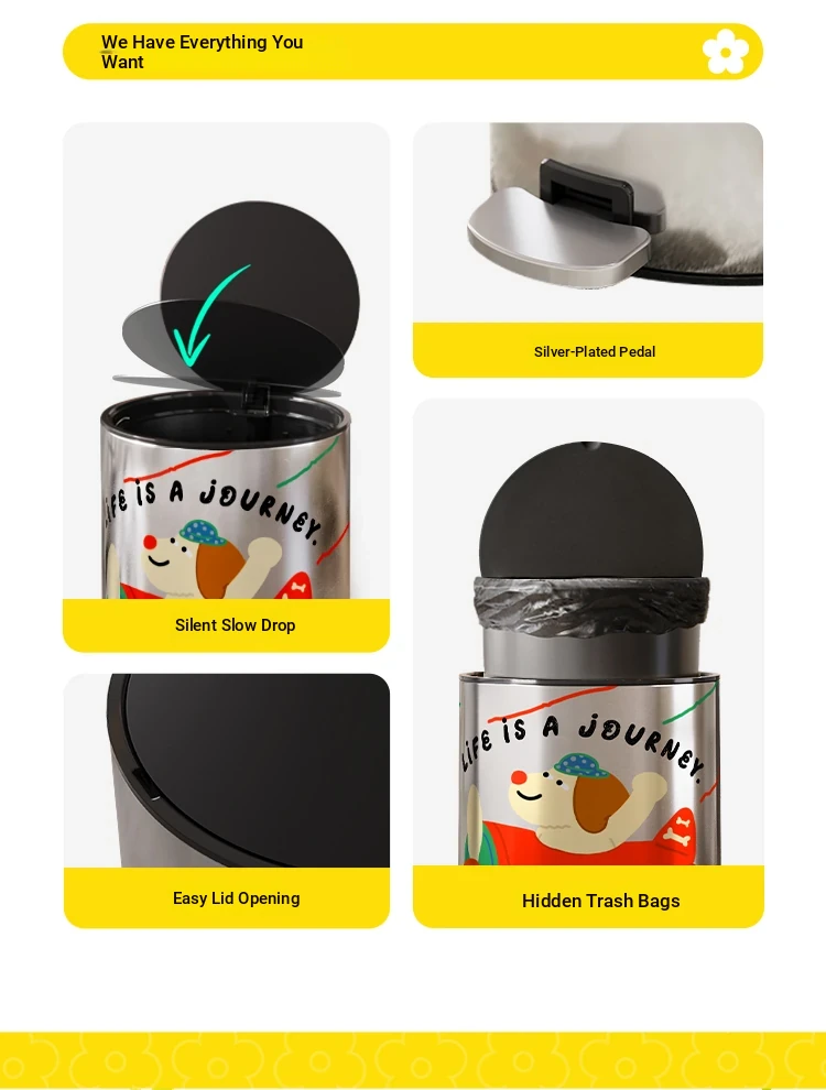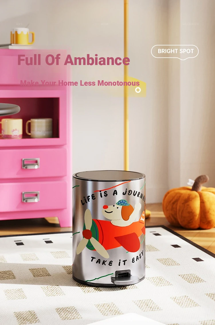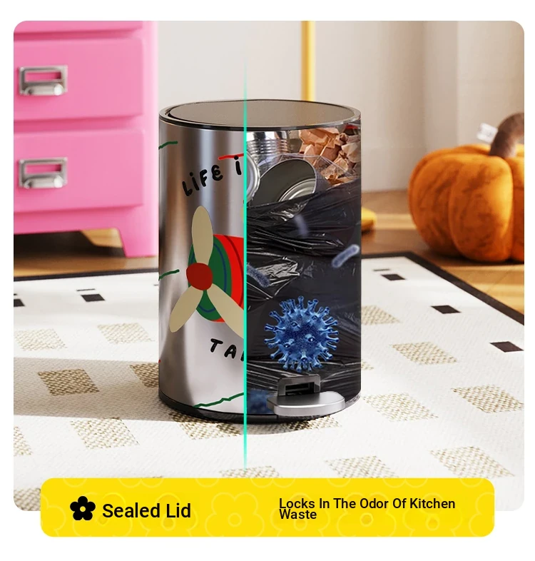 Stylish Stainless Steel Trash Can with Lid - Cute Cartoon Design Perfect for Living Room and Bedroom - Large Foot Pedal Household Bin