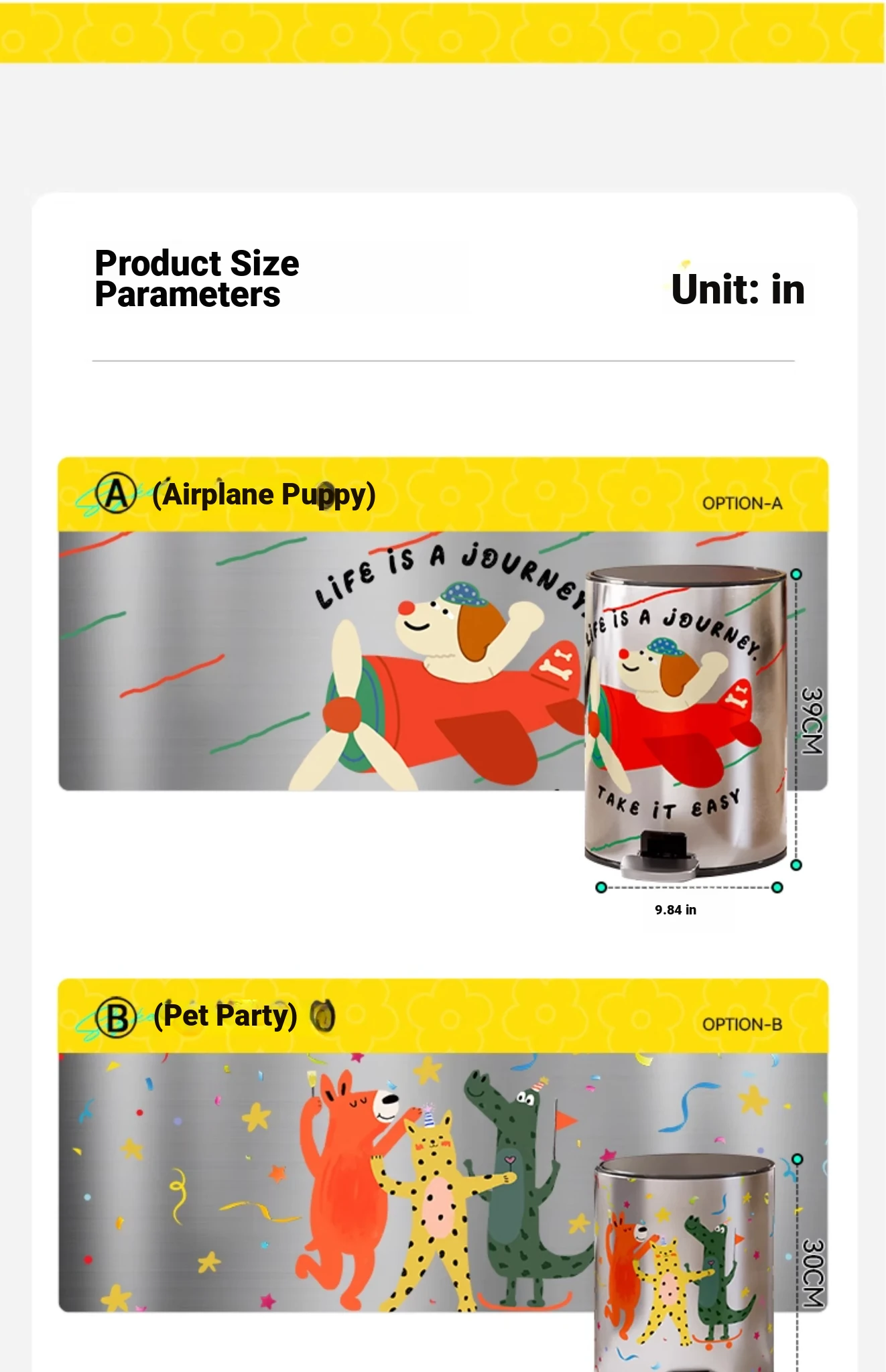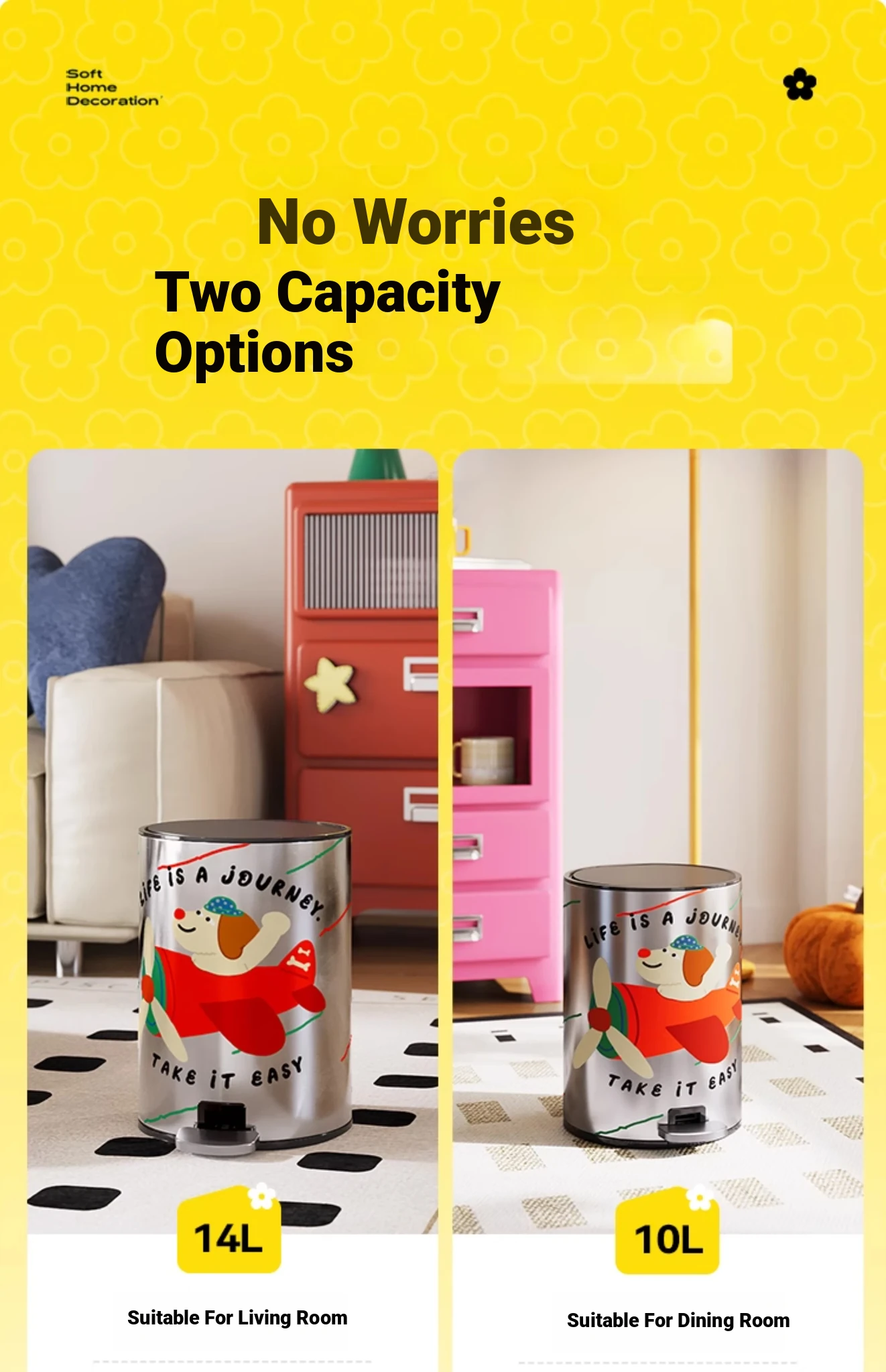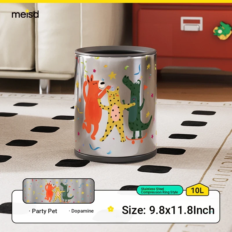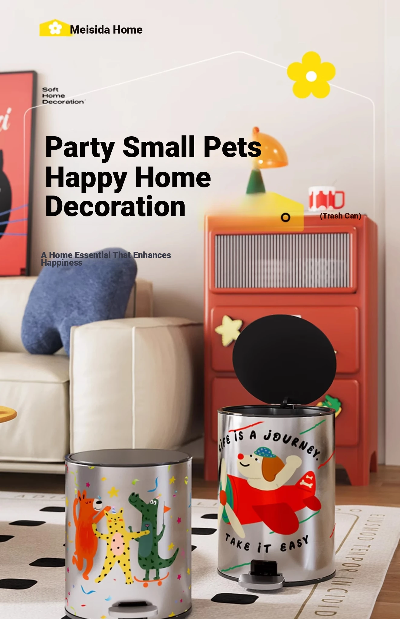 Stylish Stainless Steel Trash Can with Lid - Cute Cartoon Design Perfect for Living Room and Bedroom - Large Foot Pedal Household Bin