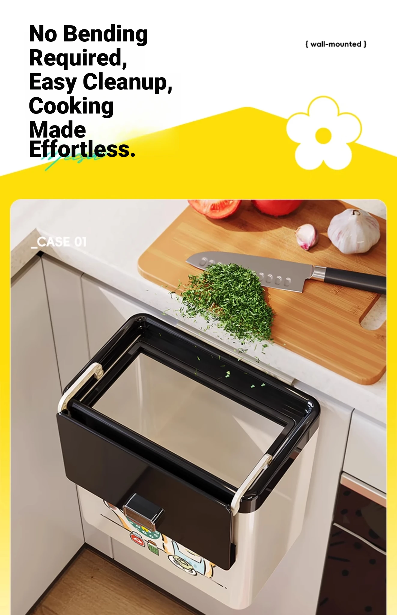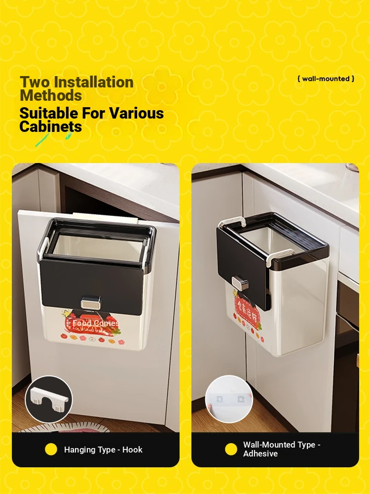 Stylish Wall-Mounted Kitchen Trash Can - Durable, Waterproof, Odor-Proof, No Drilling Required - Perfect for Food Waste Storage