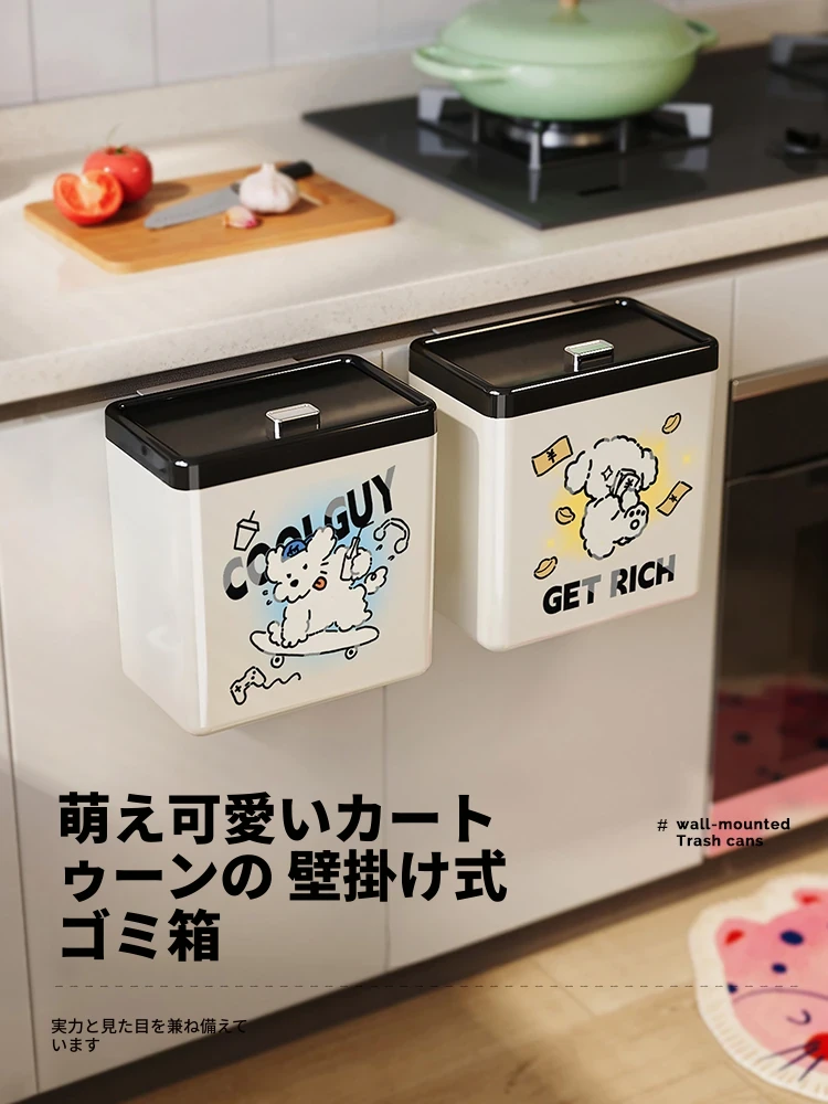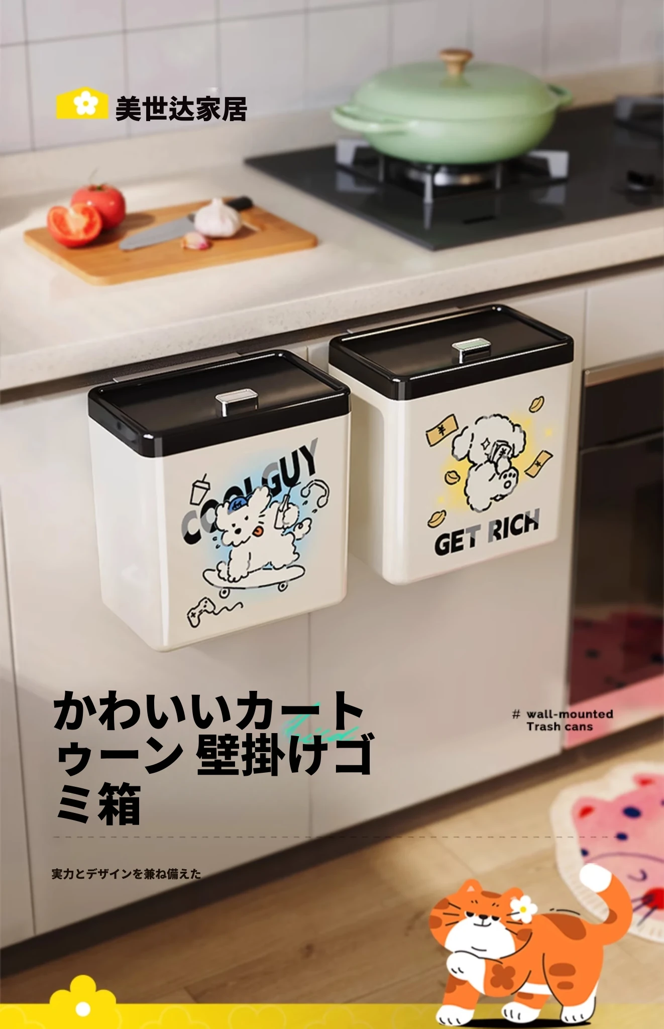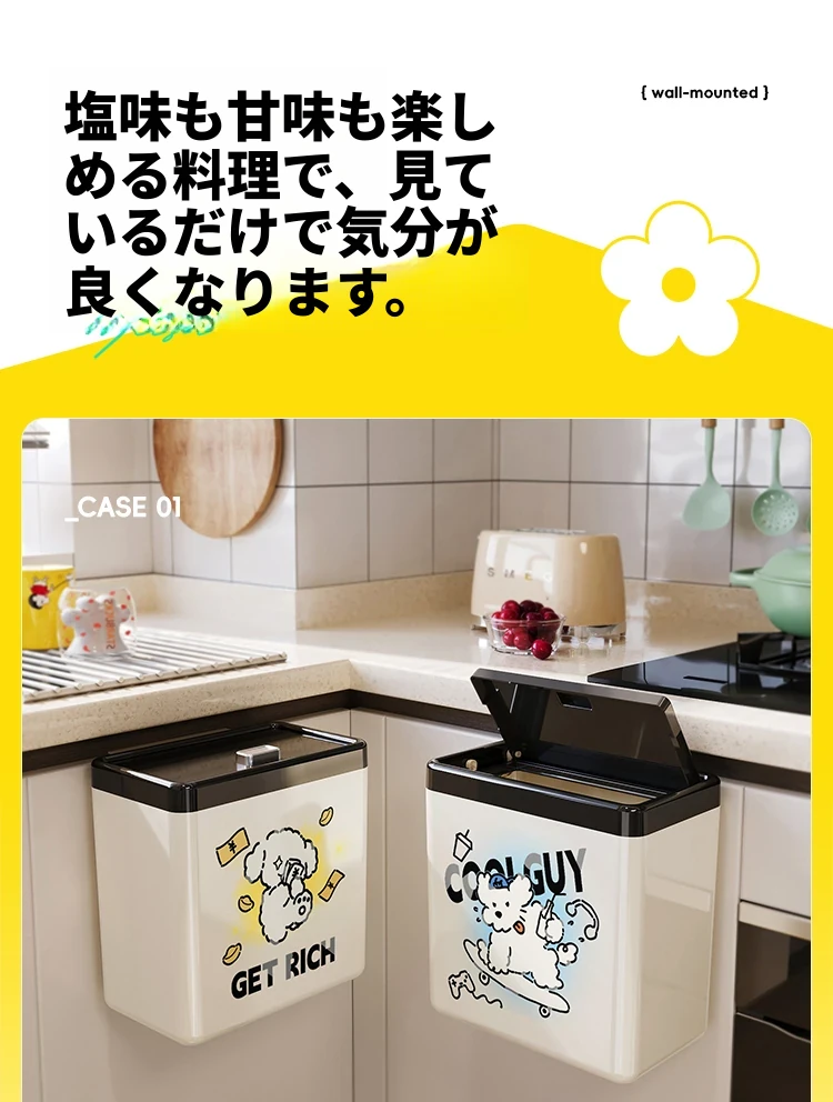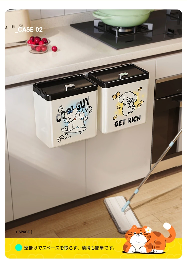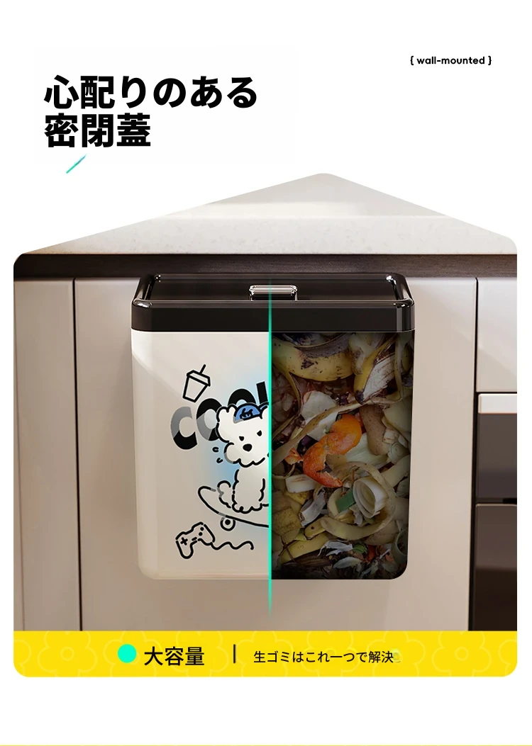 美世达の可愛らしいカートゥーンデザインの壁掛けゴミ箱!キッチンやバスルームにぴったりの大容量で、おしゃれな蓋付き。お部屋をスッキリ保ちながら、可愛さもプラス!