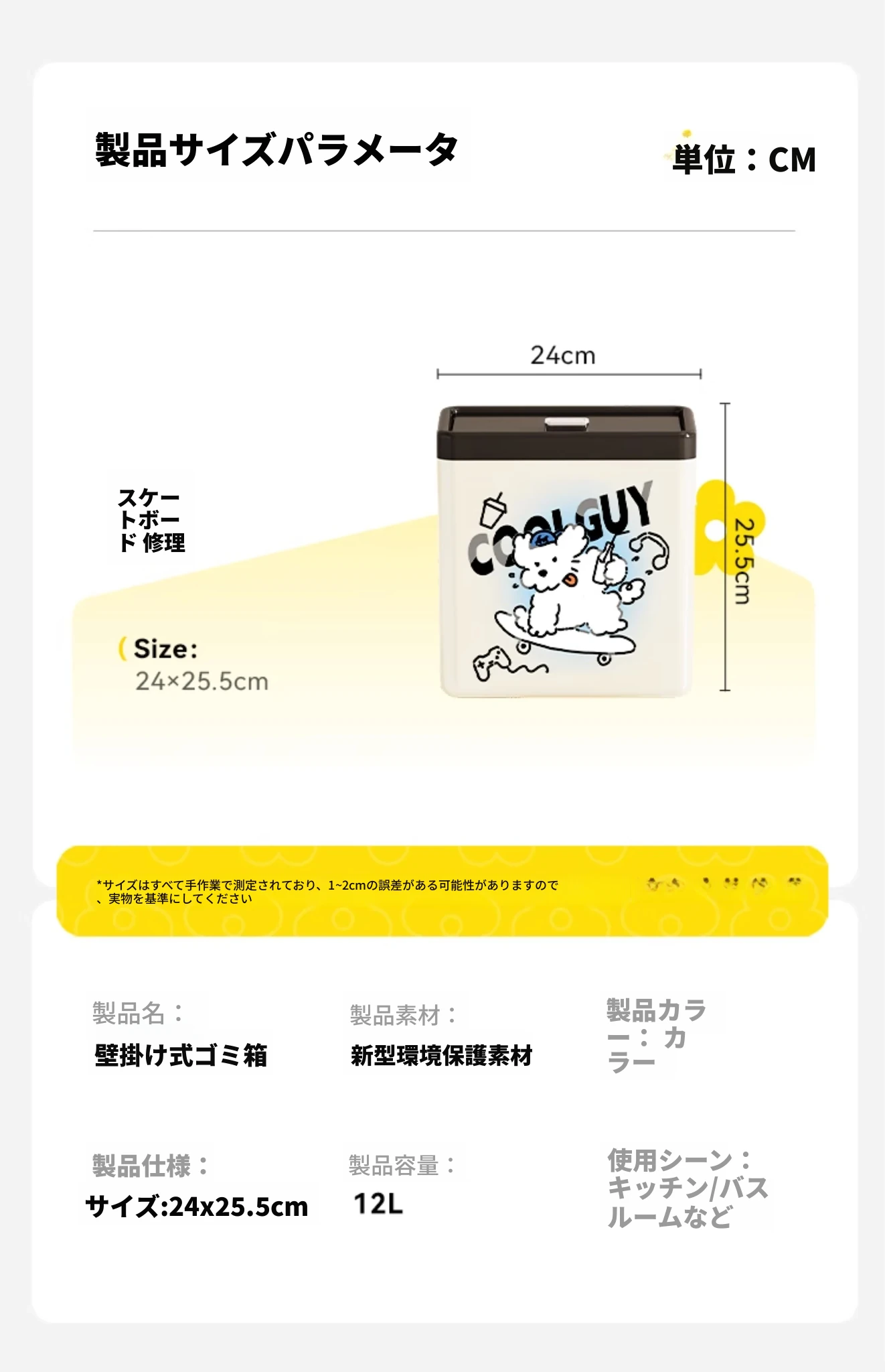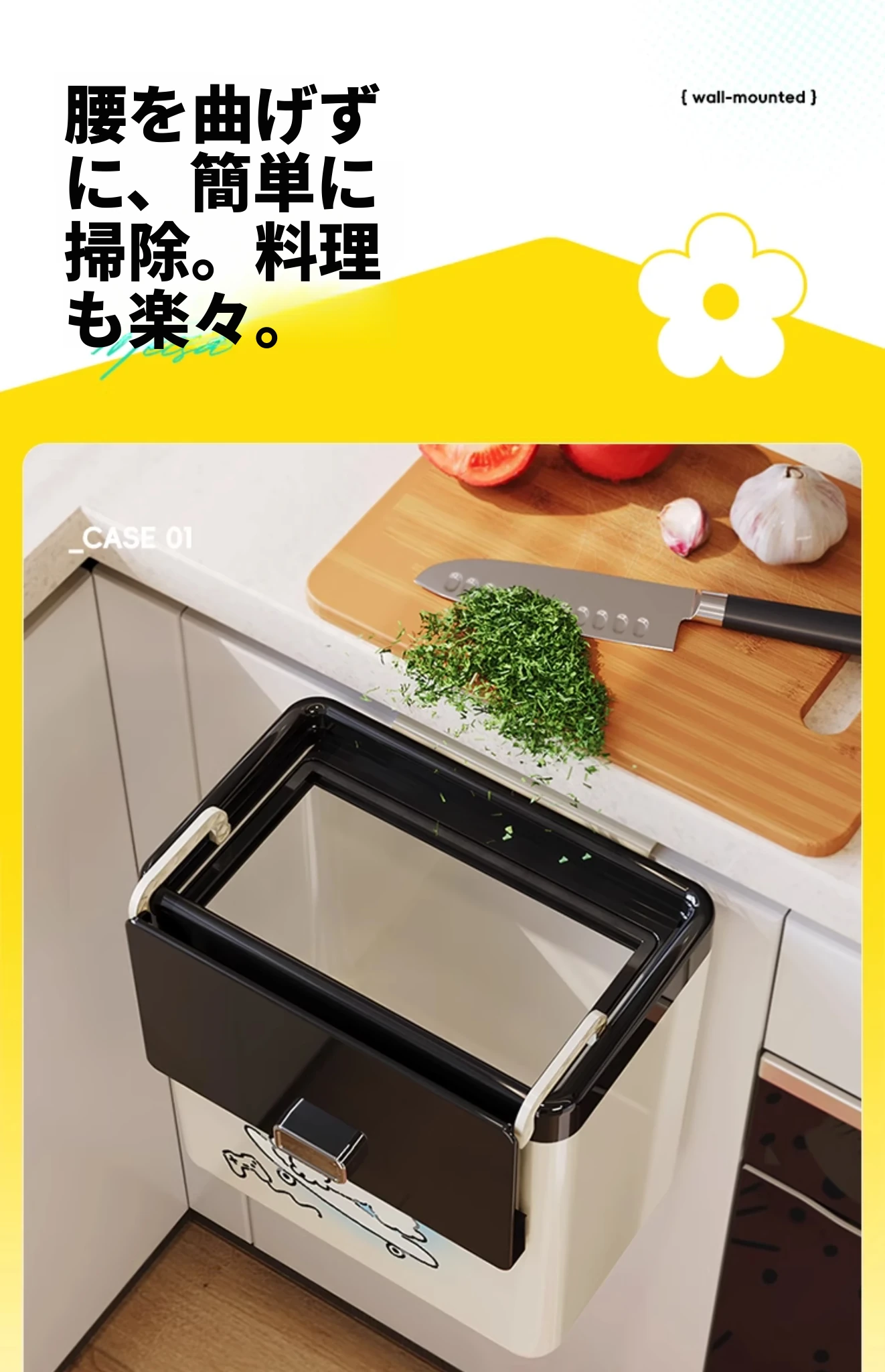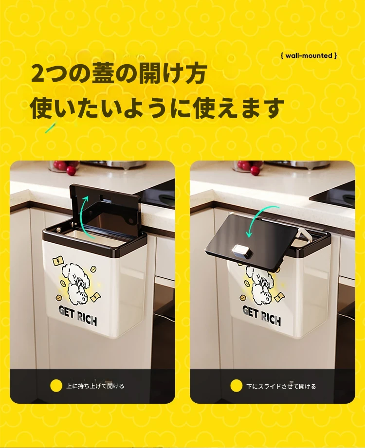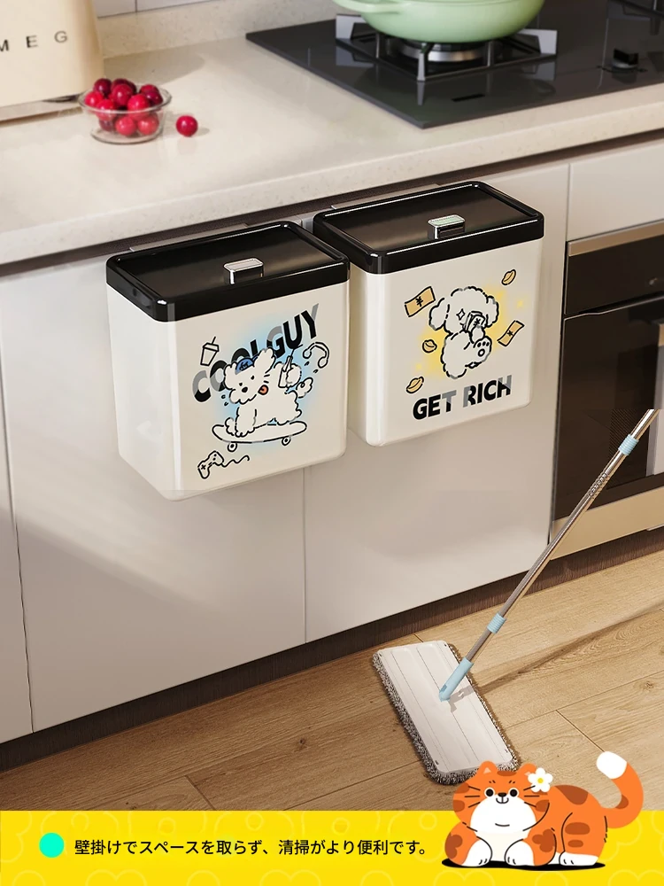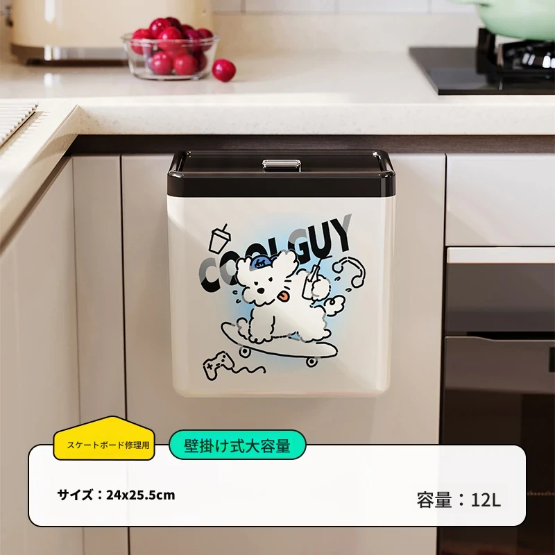 美世达の可愛らしいカートゥーンデザインの壁掛けゴミ箱!キッチンやバスルームにぴったりの大容量で、おしゃれな蓋付き。お部屋をスッキリ保ちながら、可愛さもプラス!