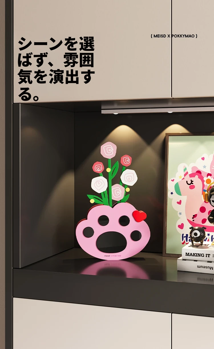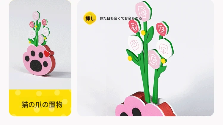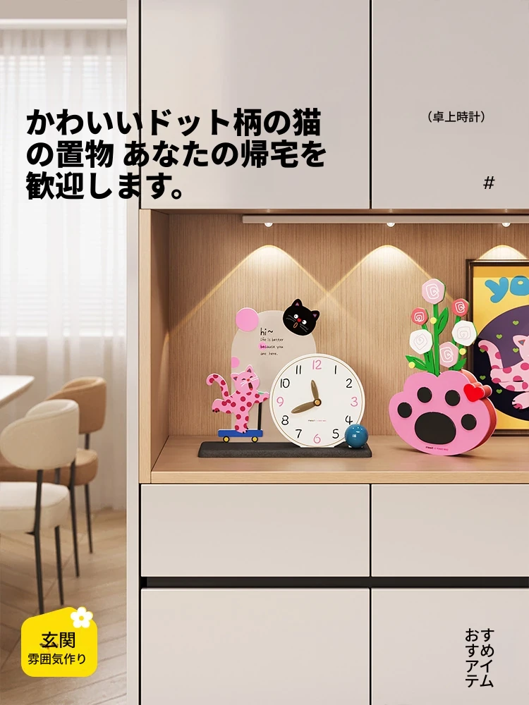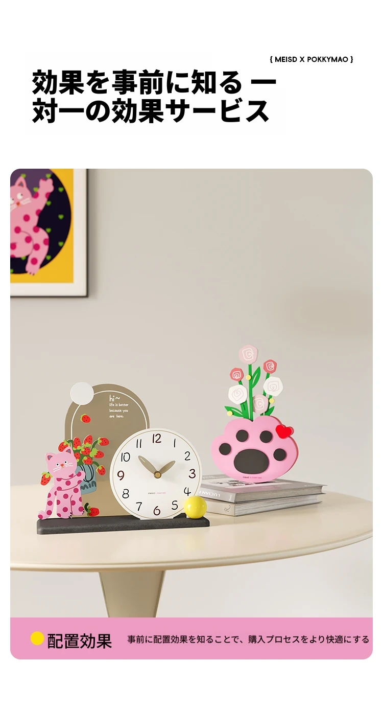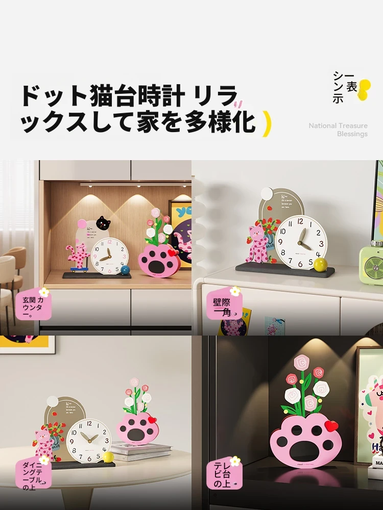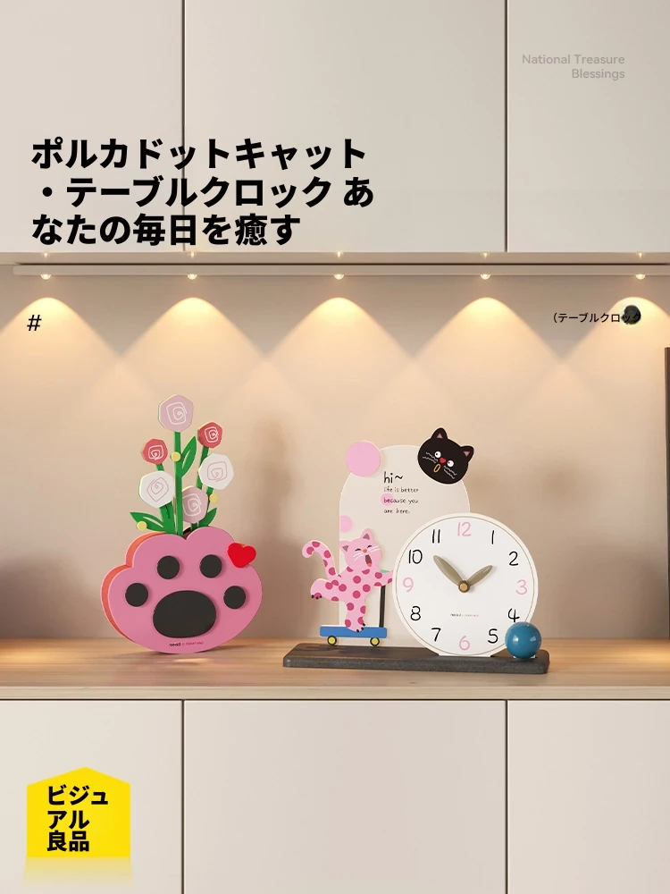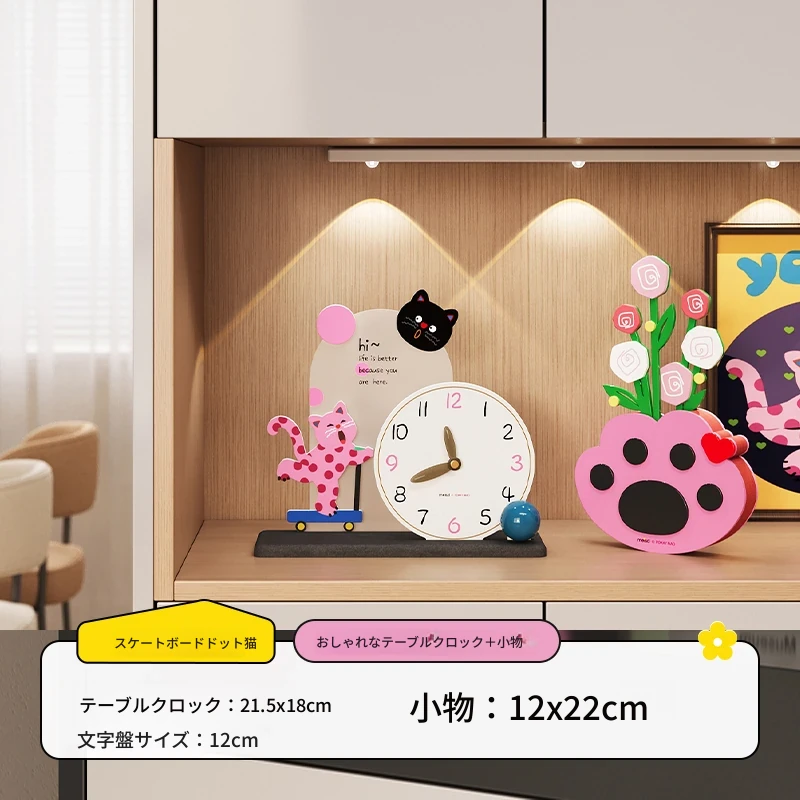 カートドット猫台時計+猫の手花瓶飾り