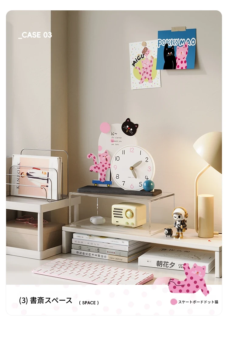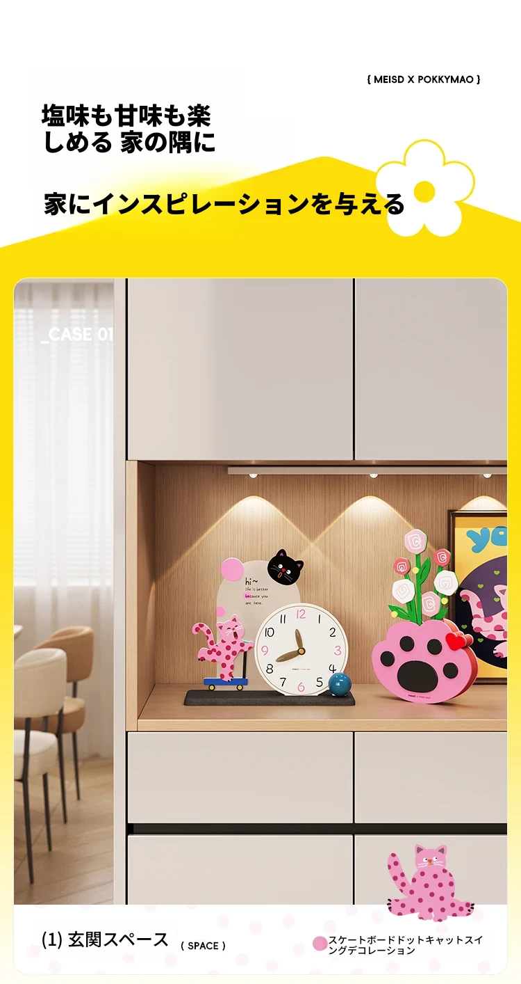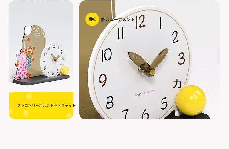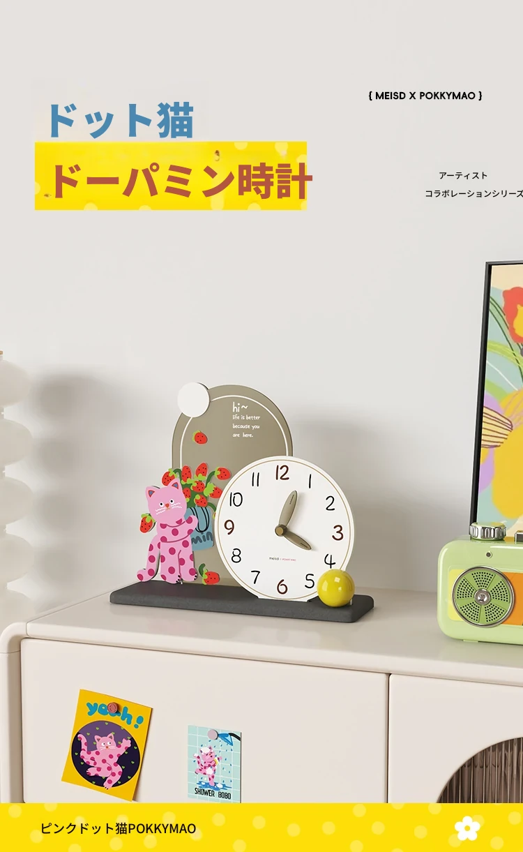 美世達ドットキャットテーブルクロック - 可愛らしいインテリアデコレーション、リビングルームや寝室にぴったり!おしゃれなデザインで、テレビ台やデスクを華やかに彩ります。心温まる猫の友達と共に、素敵な時間をお楽しみください。