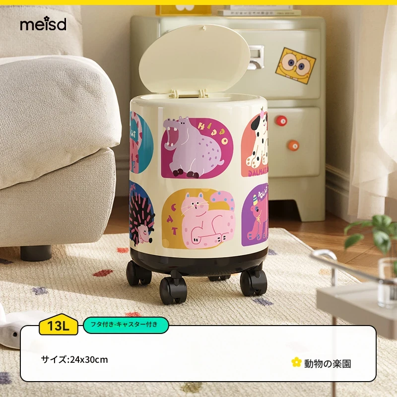 【キャスター付きフタ付き】動物楽園⭐13L⭐360°自由に移動