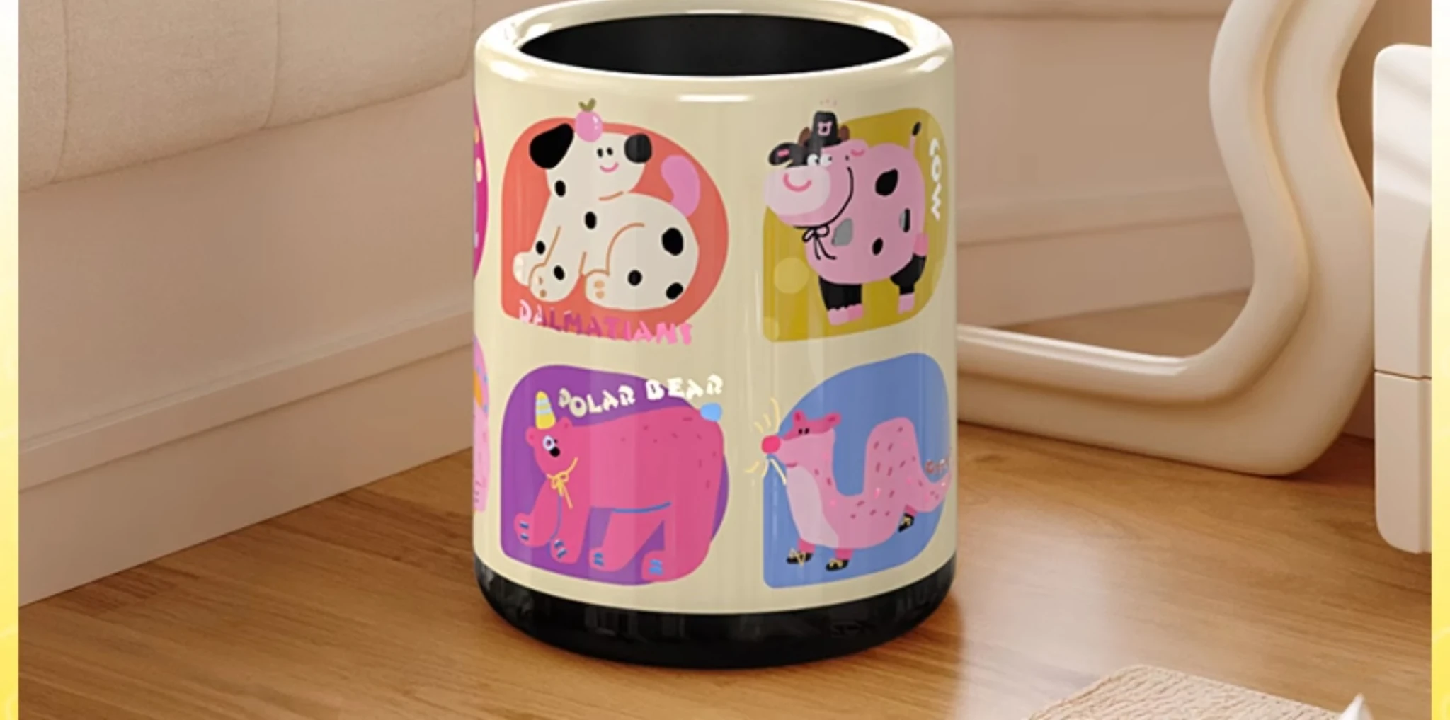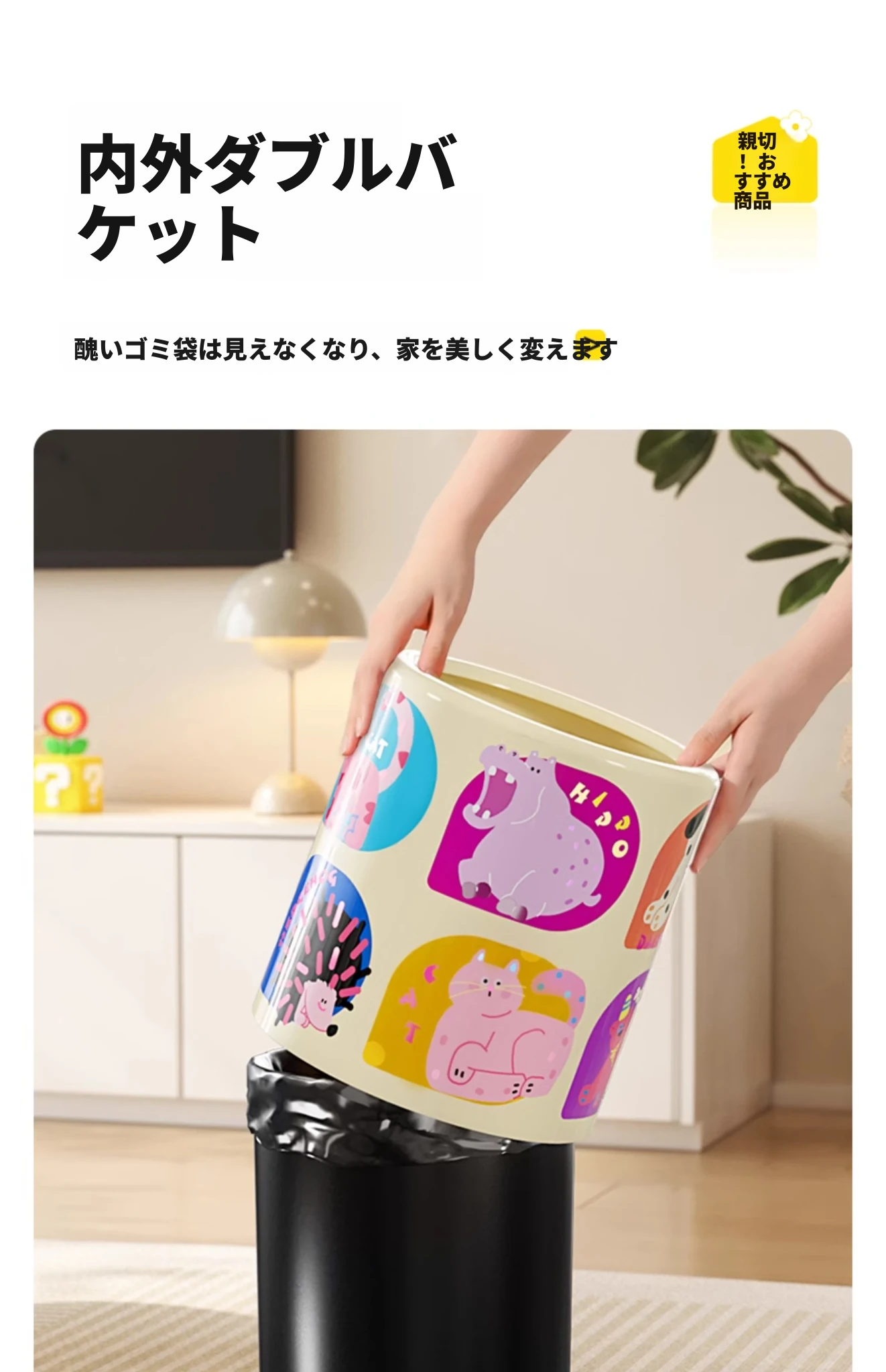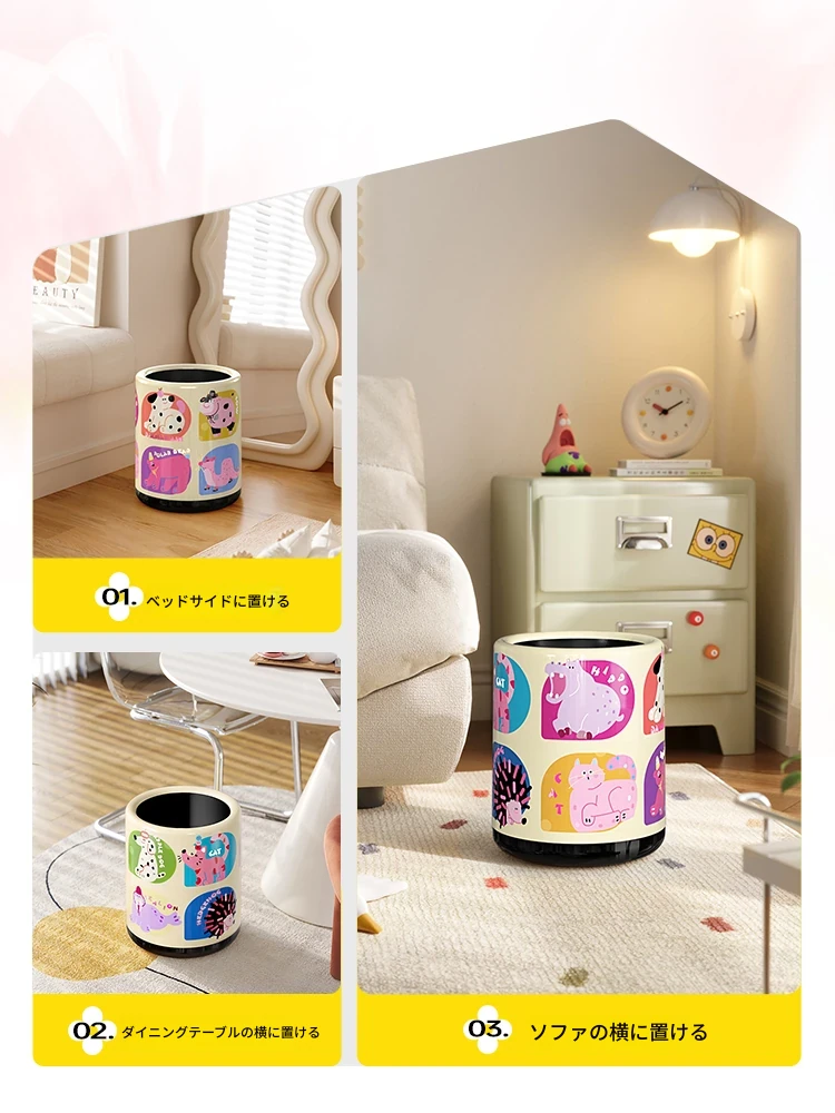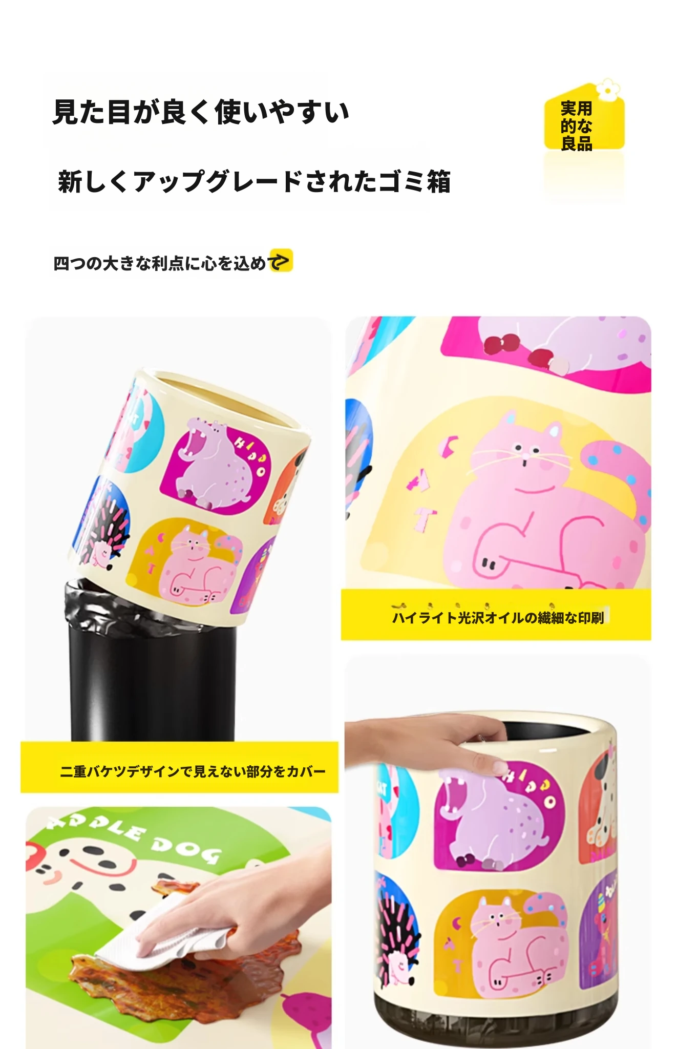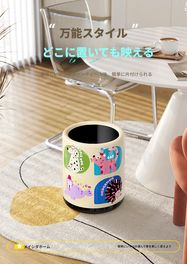 美世达のカラフルでかわいい猫デザインの大容量ゴミ箱!家庭用、リビングや寝室にぴったりの2025年新作。おしゃれで機能的、あなたの空間を明るく彩ります!