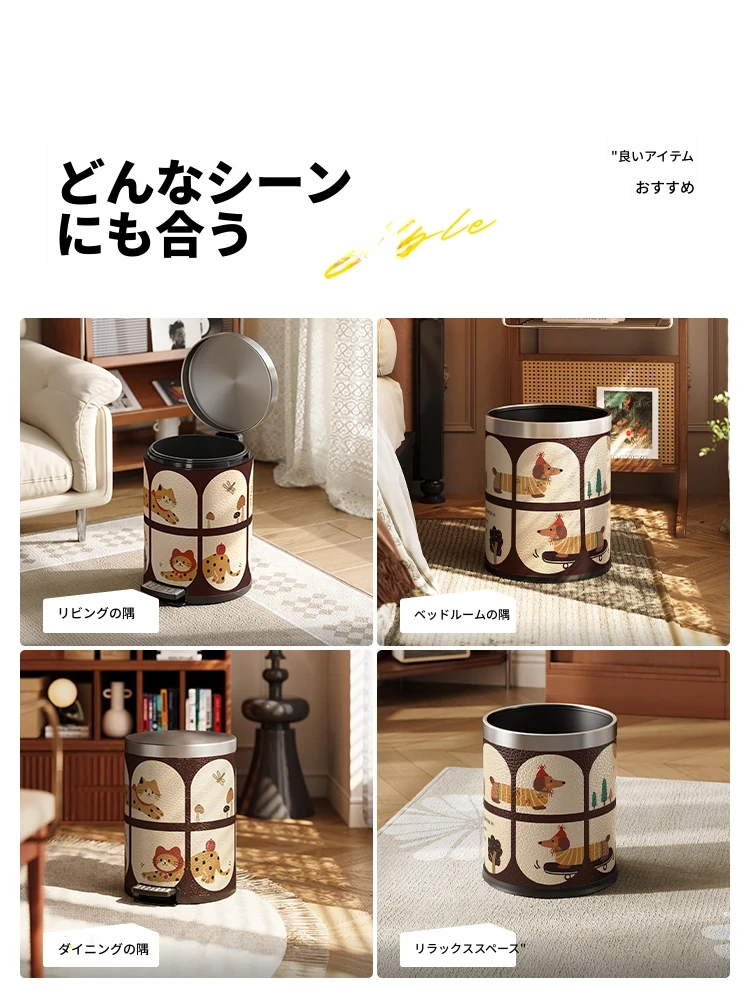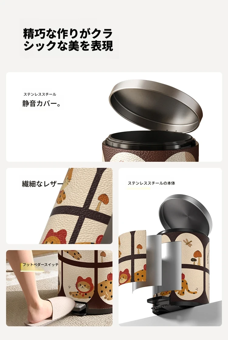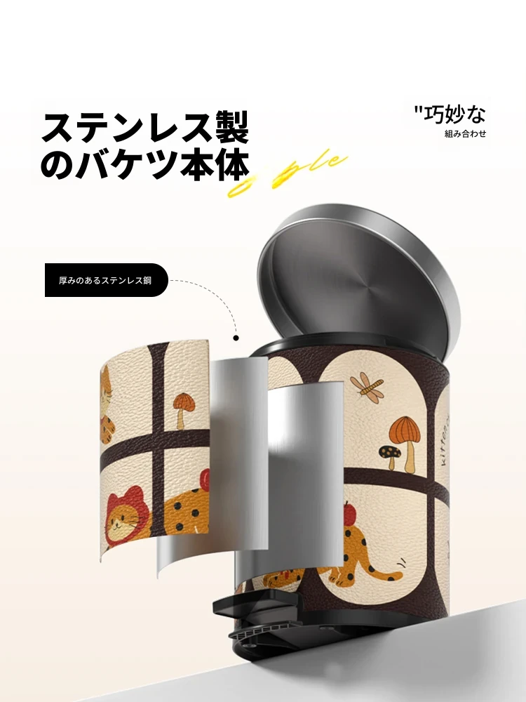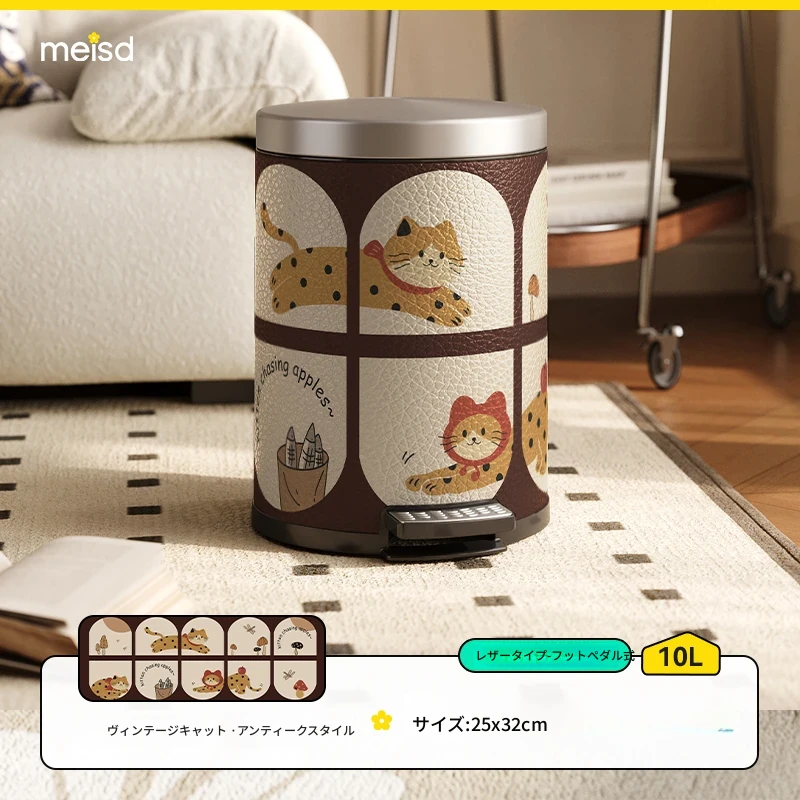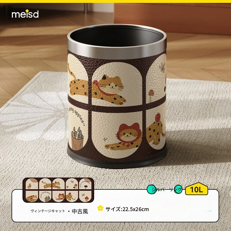 美世达のステンレス製ゴミ箱 - 踏み込み式蓋付き、アンティーク風デザインの大容量ダブルレイヤー、洗練された新作!おしゃれで高品質な生活空間を演出します。