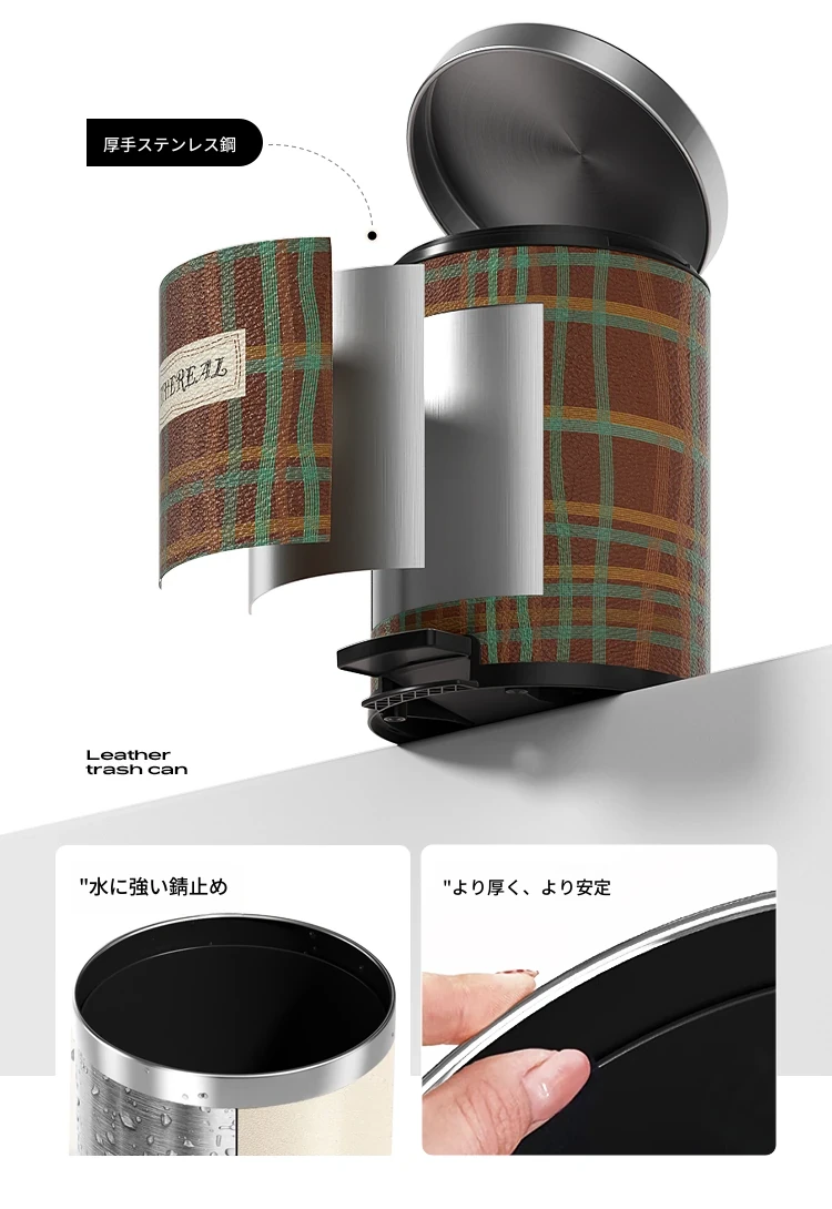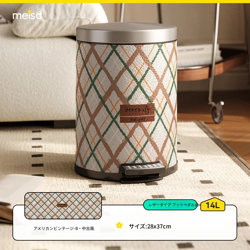 美世达ステンレス製ゴミ箱 - ヴィンテージ風の高級感!大容量で家庭用、リビングやバスルームに最適なフットペダル式ペーパーバスケット。おしゃれで実用的なインテリアアイテム!