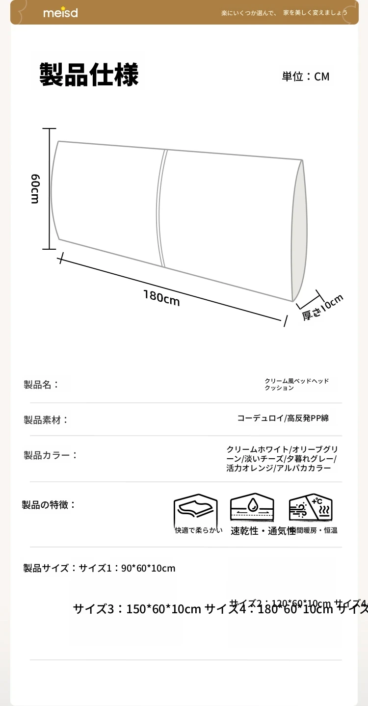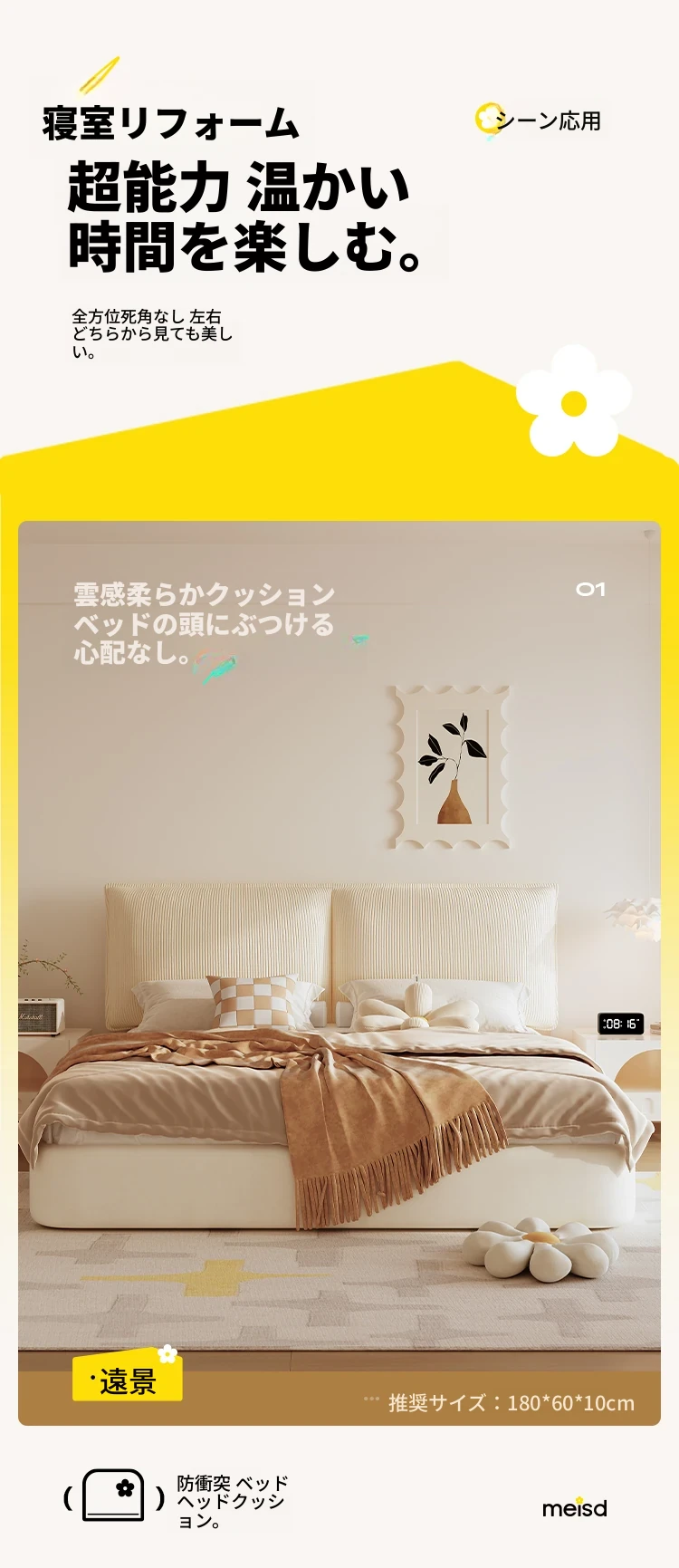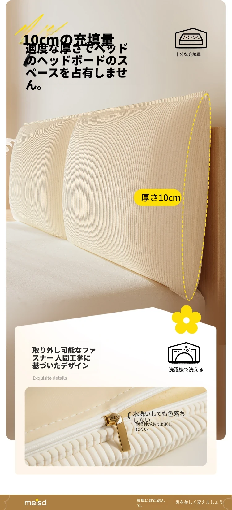 美世达新作!2024年雪尼尔生地のベッドサイドクッション、柔らかな寝室用背もたれ。榻榻米スタイルにも最適!腰をしっかりサポートし、取り外し可能なカバーでお手入れも簡単。快適な眠りをお届けします!