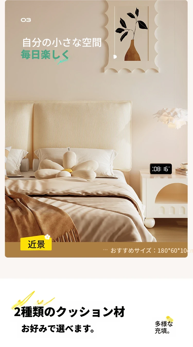 90*60*10cm(スパンボード充填モデルヘッドボードあり)