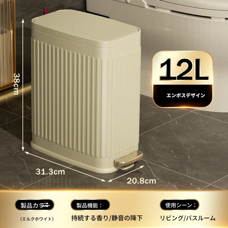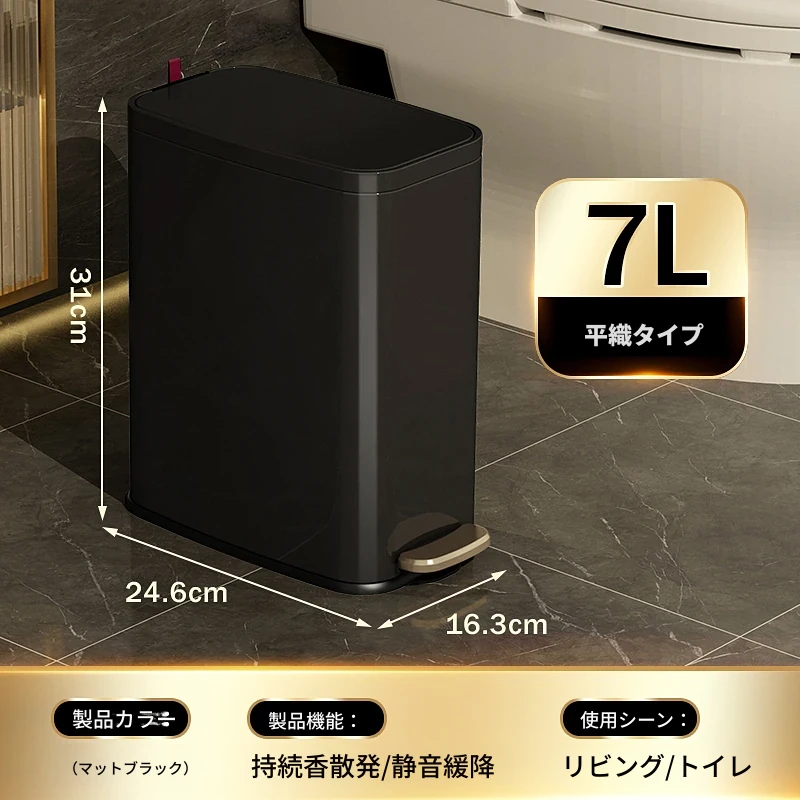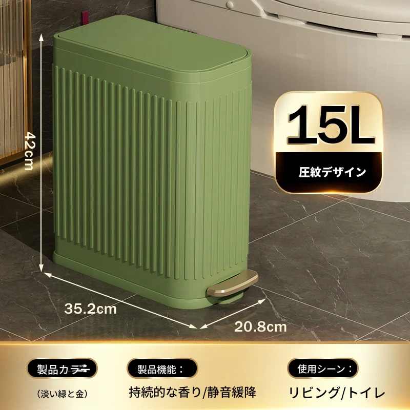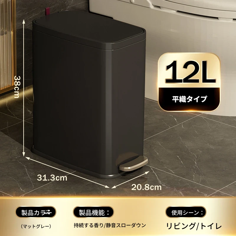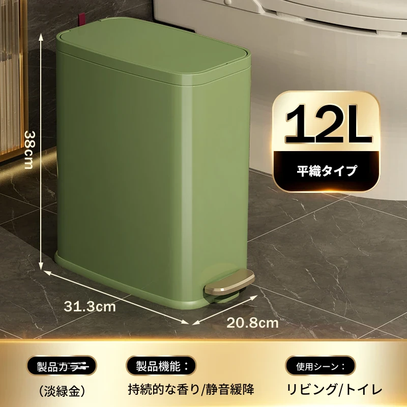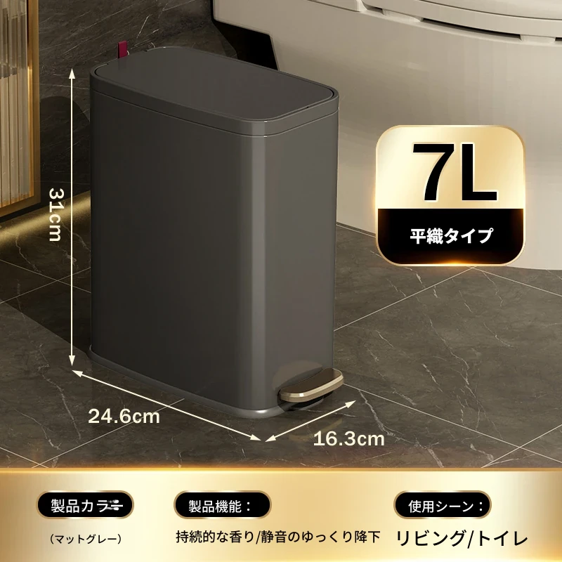 ミセダ ステンレス製ゴミ箱 2025年新モデル 家庭用 トイレや洗面所にぴったりの隙間収納 ゴミ袋付き 蓋付き おしゃれで清潔感あふれるデザイン