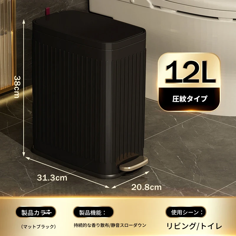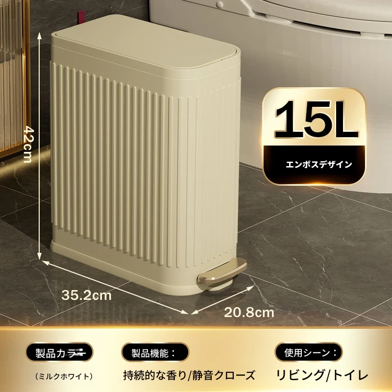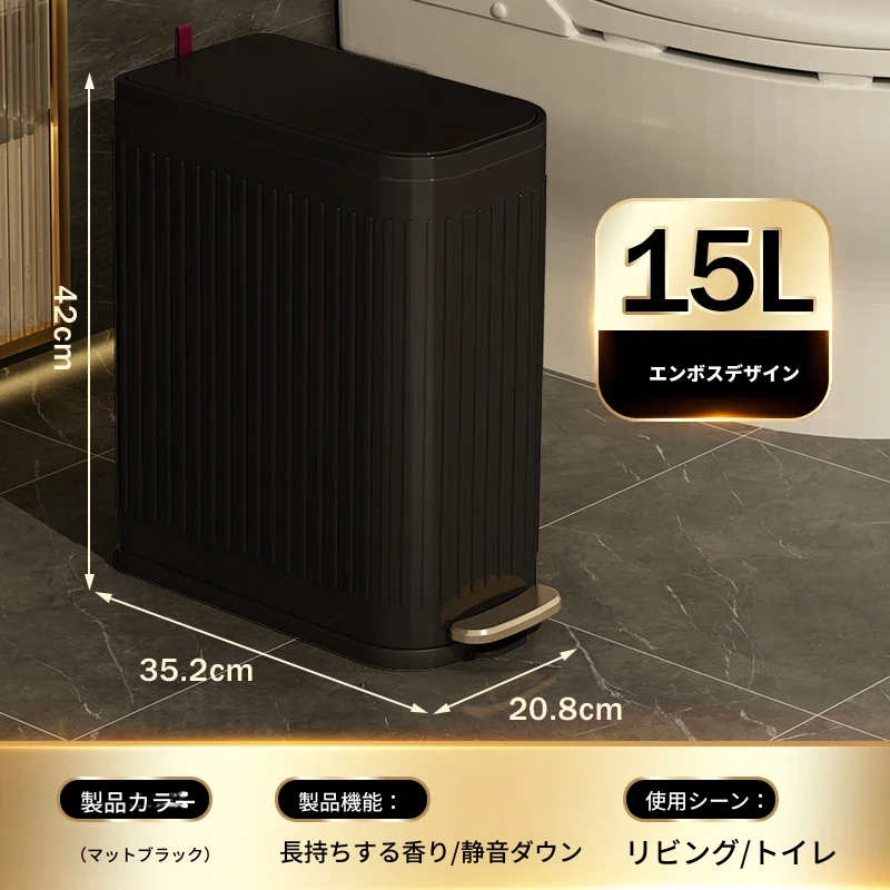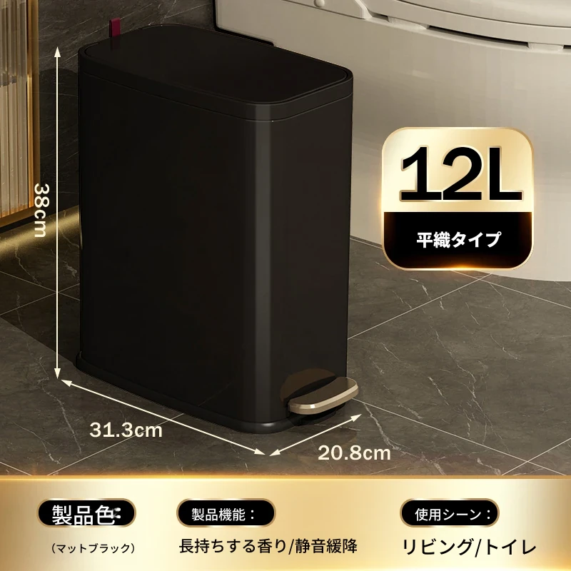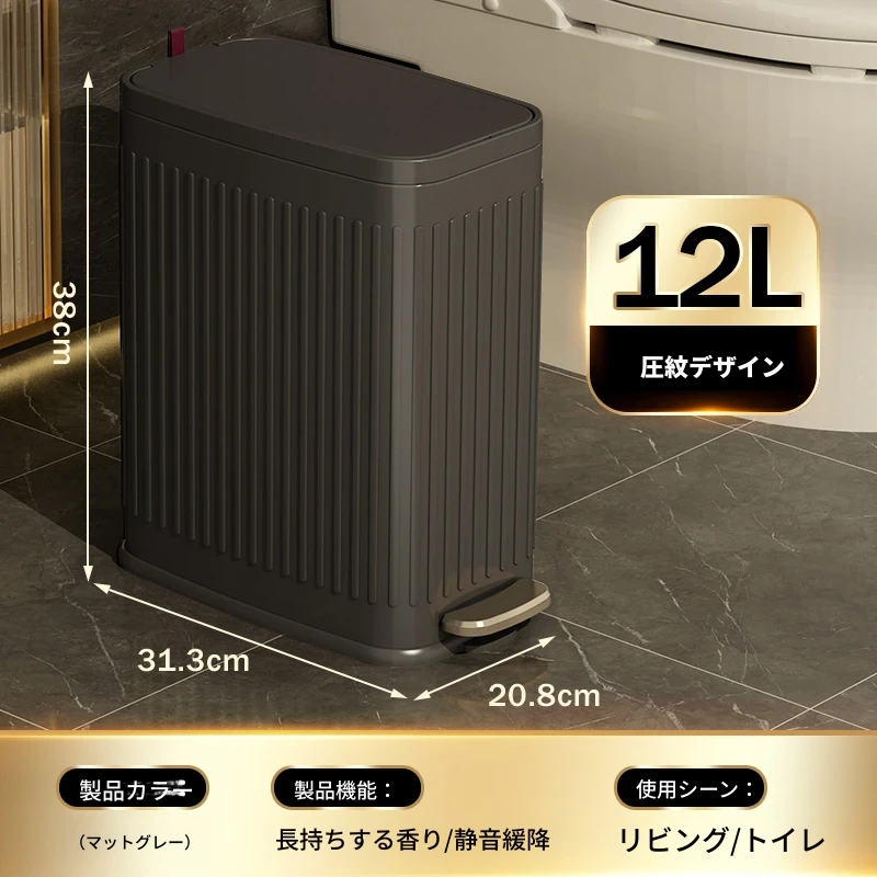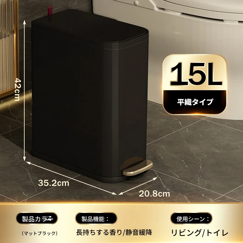 ミセダ ステンレス製ゴミ箱 2025年新モデル 家庭用 トイレや洗面所にぴったりの隙間収納 ゴミ袋付き 蓋付き おしゃれで清潔感あふれるデザイン