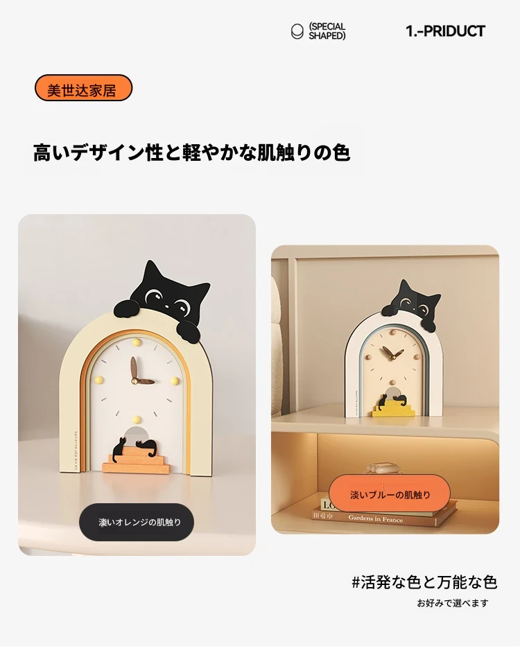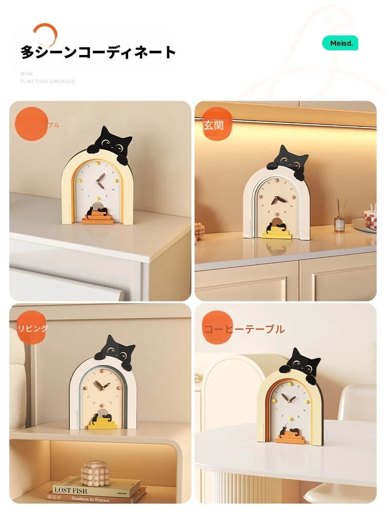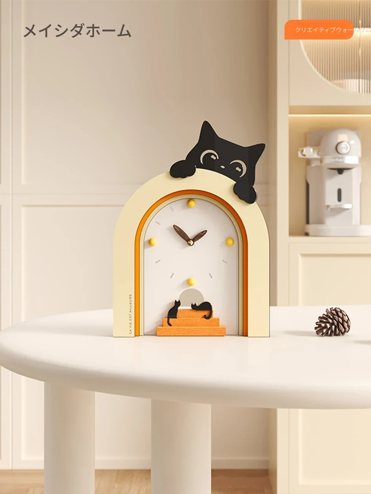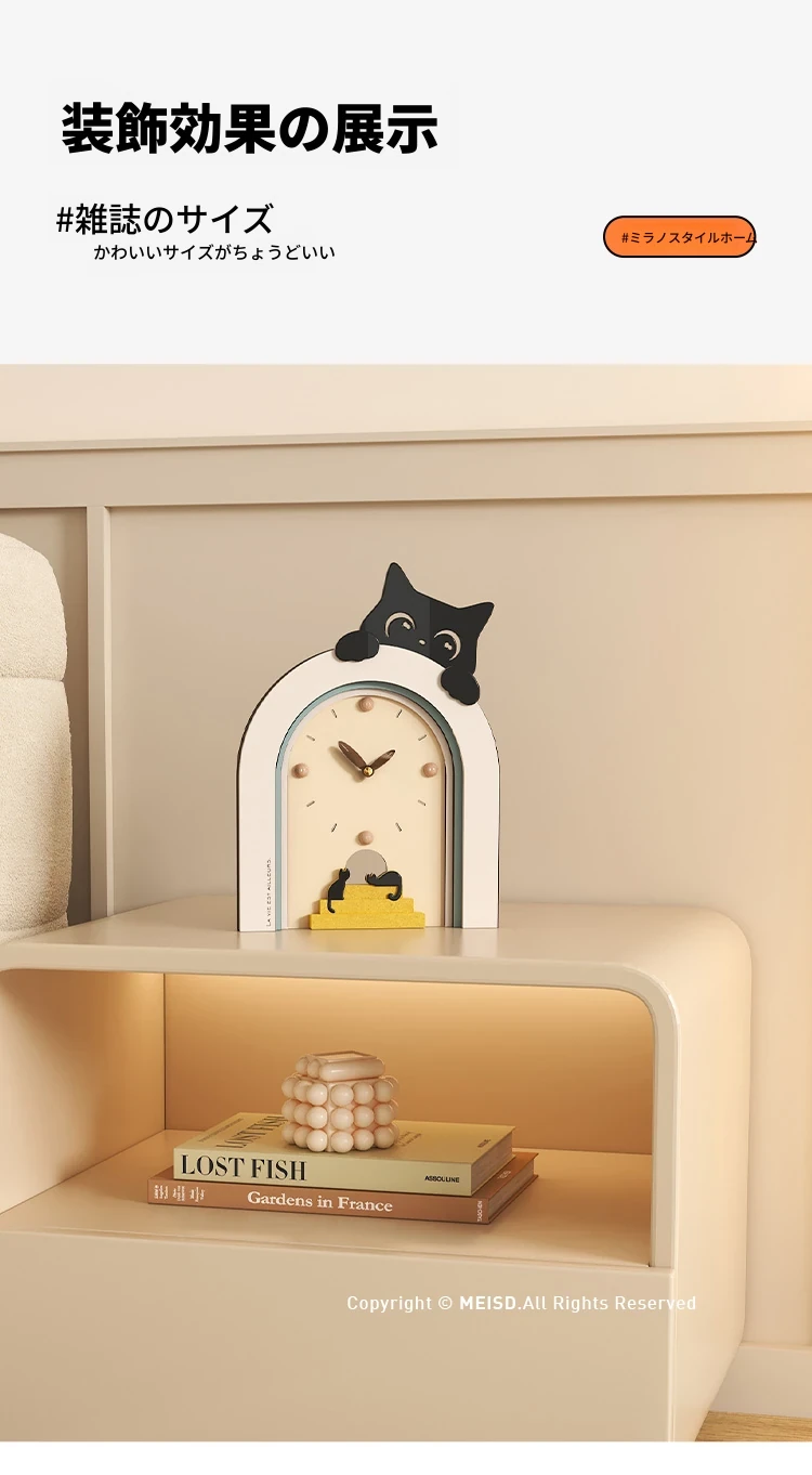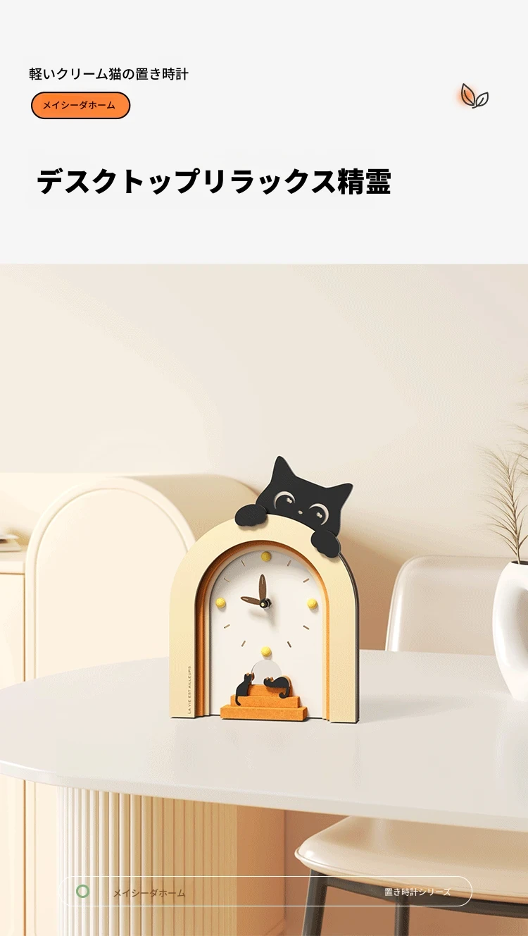 美世达の猫ちゃんクリーム風デスクトップ置き時計 - インテリアを華やかに彩る可愛いリビングルーム用飾り、テレビ台にもぴったりな卓上時計!