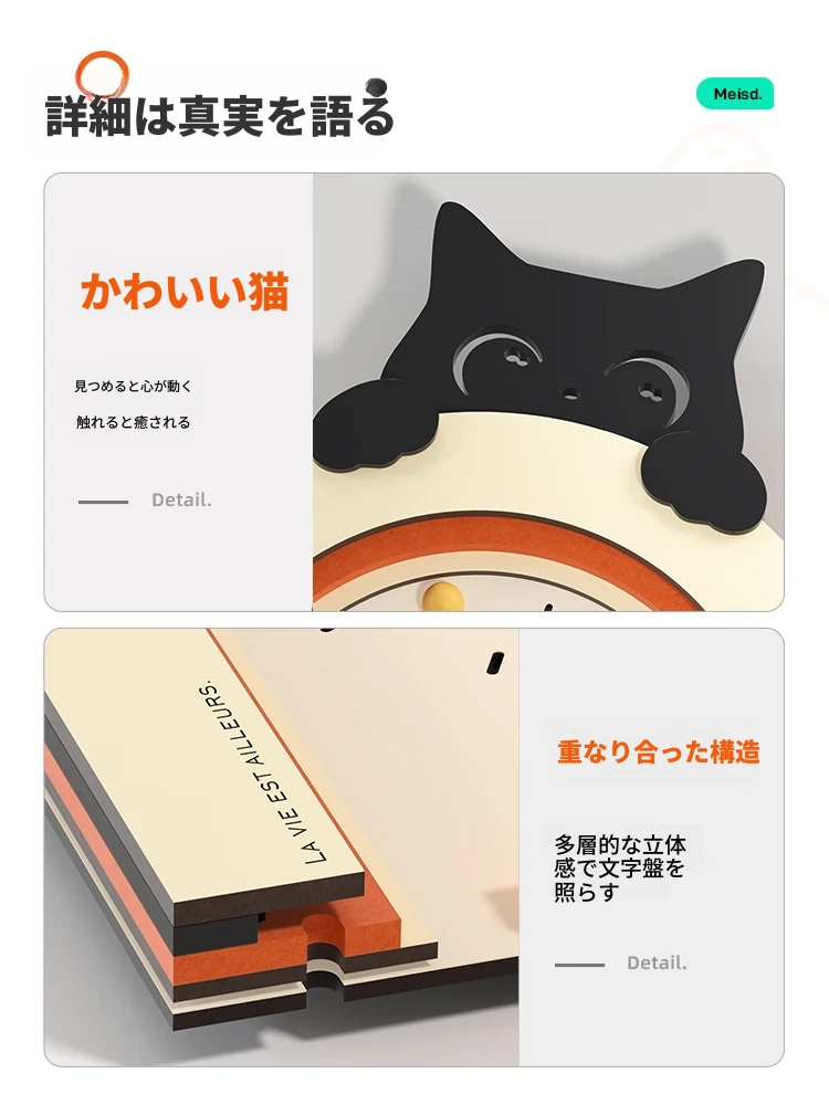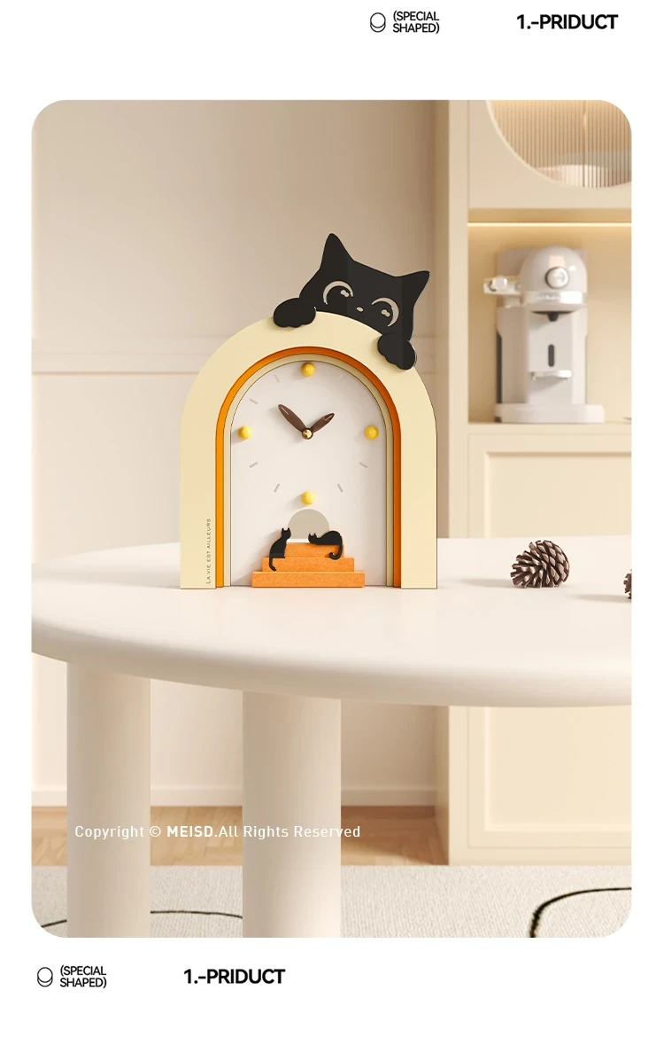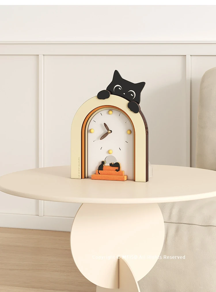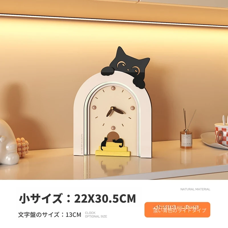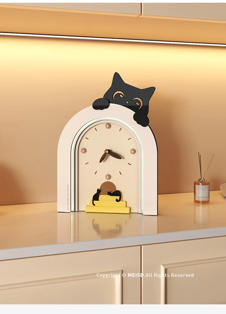 美世达の猫ちゃんクリーム風デスクトップ置き時計 - インテリアを華やかに彩る可愛いリビングルーム用飾り、テレビ台にもぴったりな卓上時計!