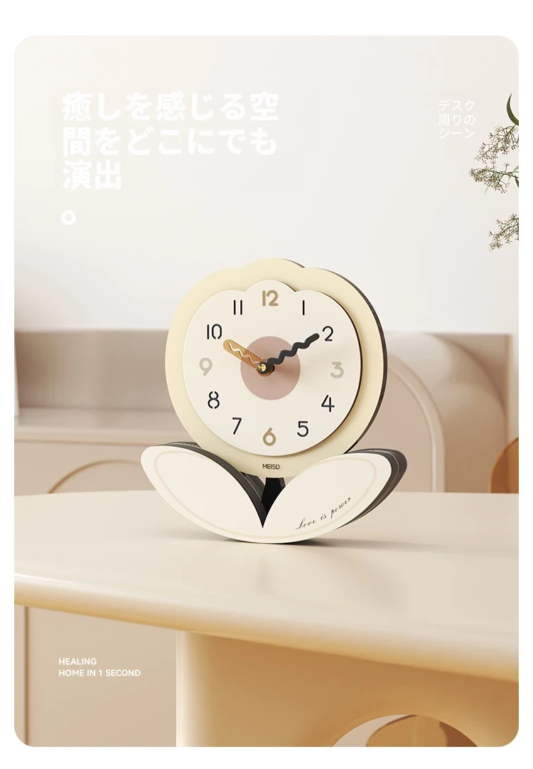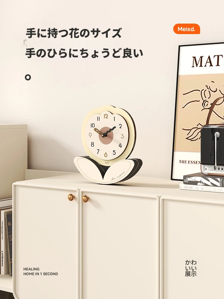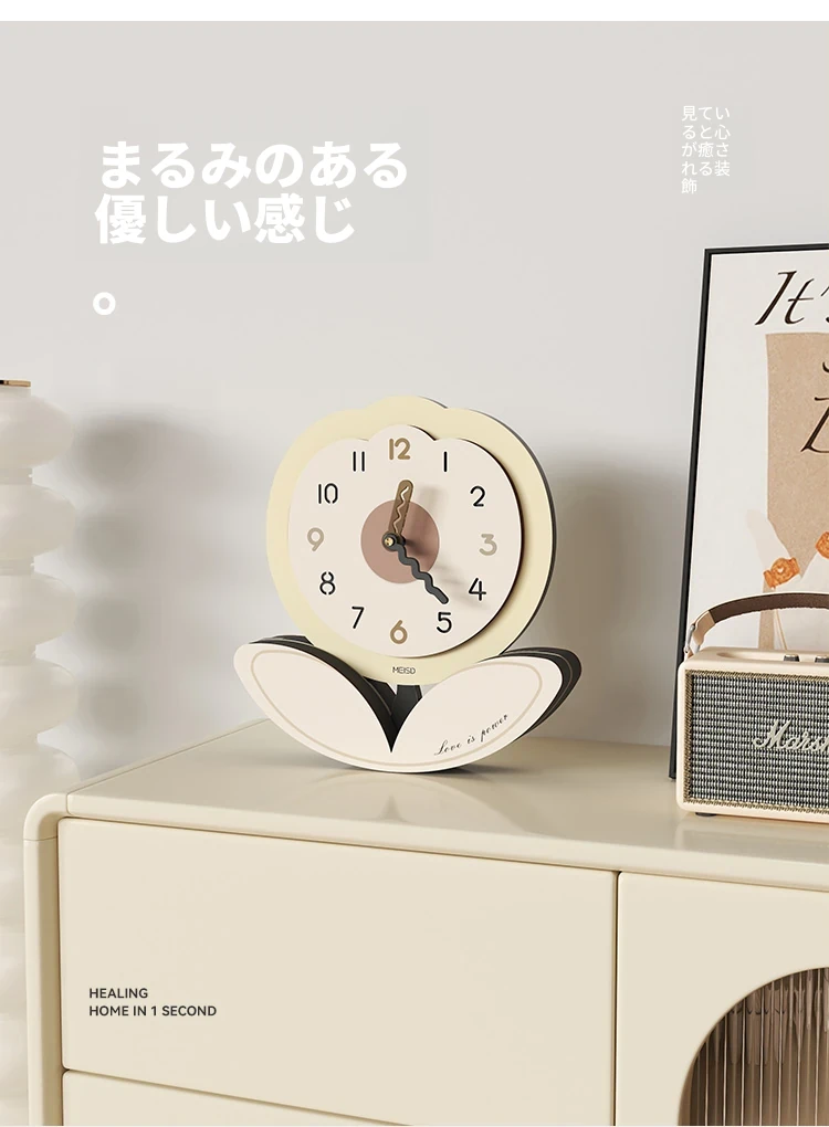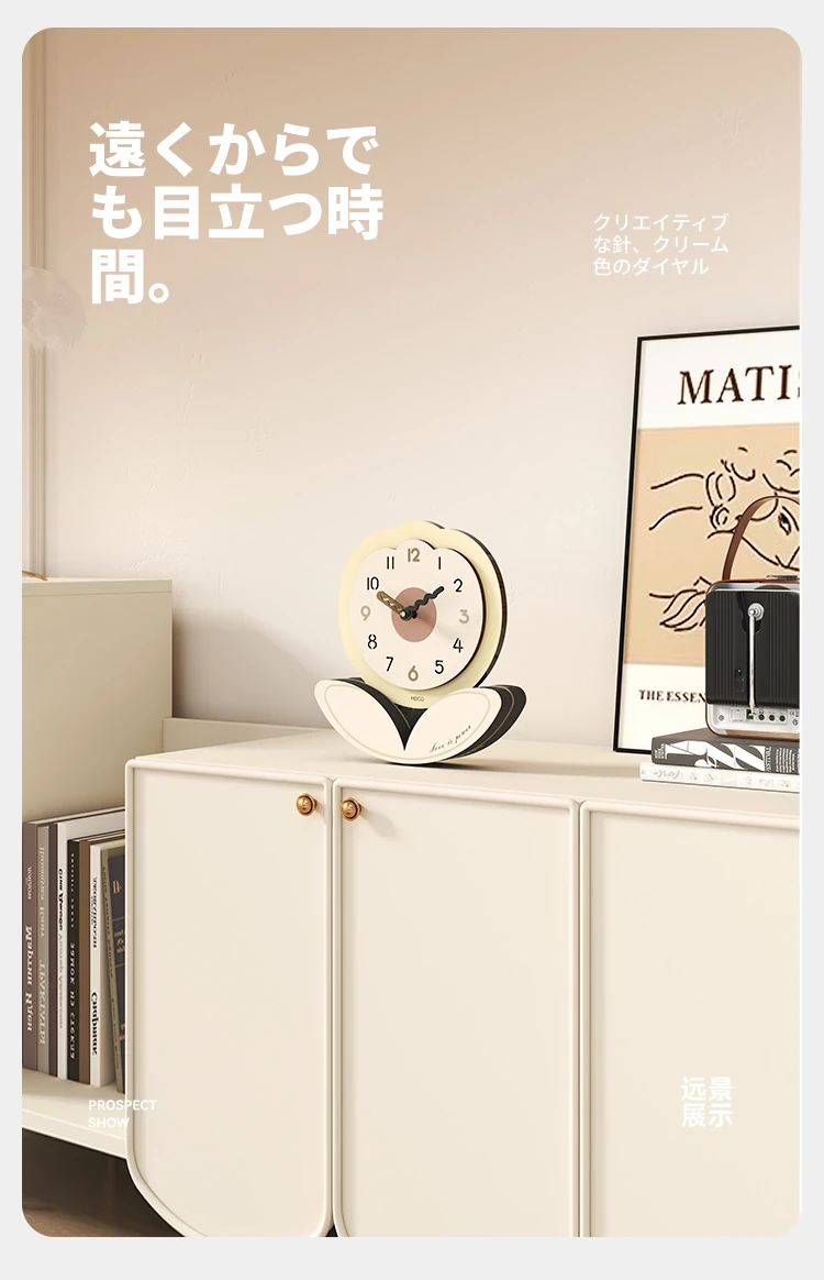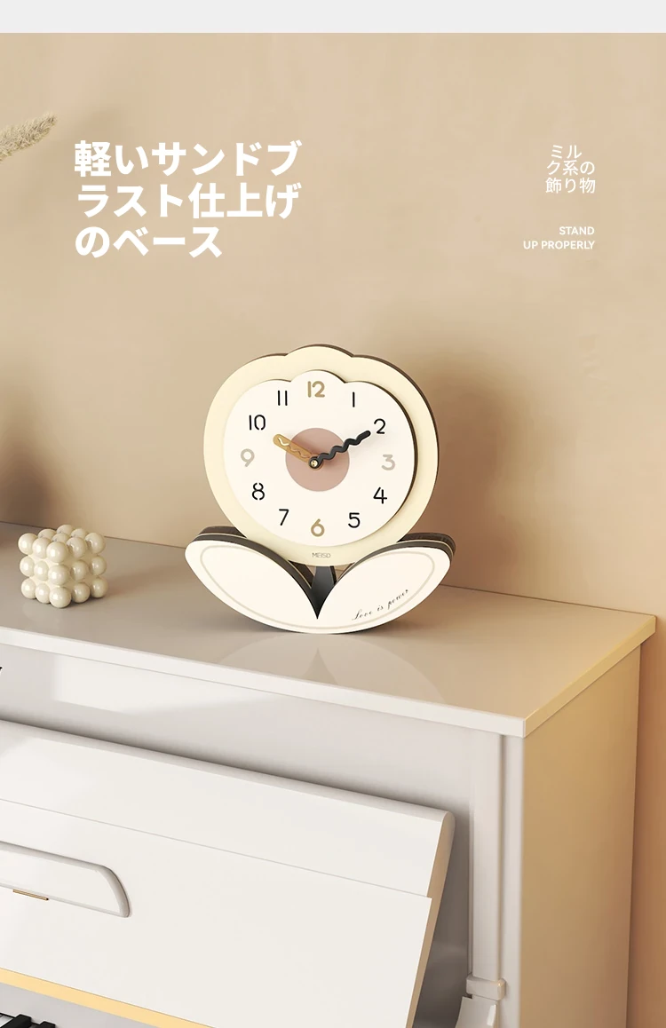 美世达クリーム風インテリア時計 - シンプルでおしゃれなデザイン、リビングやテレビボードにぴったりの卓上装飾!お部屋を華やかに彩る、おすすめの置き時計です。