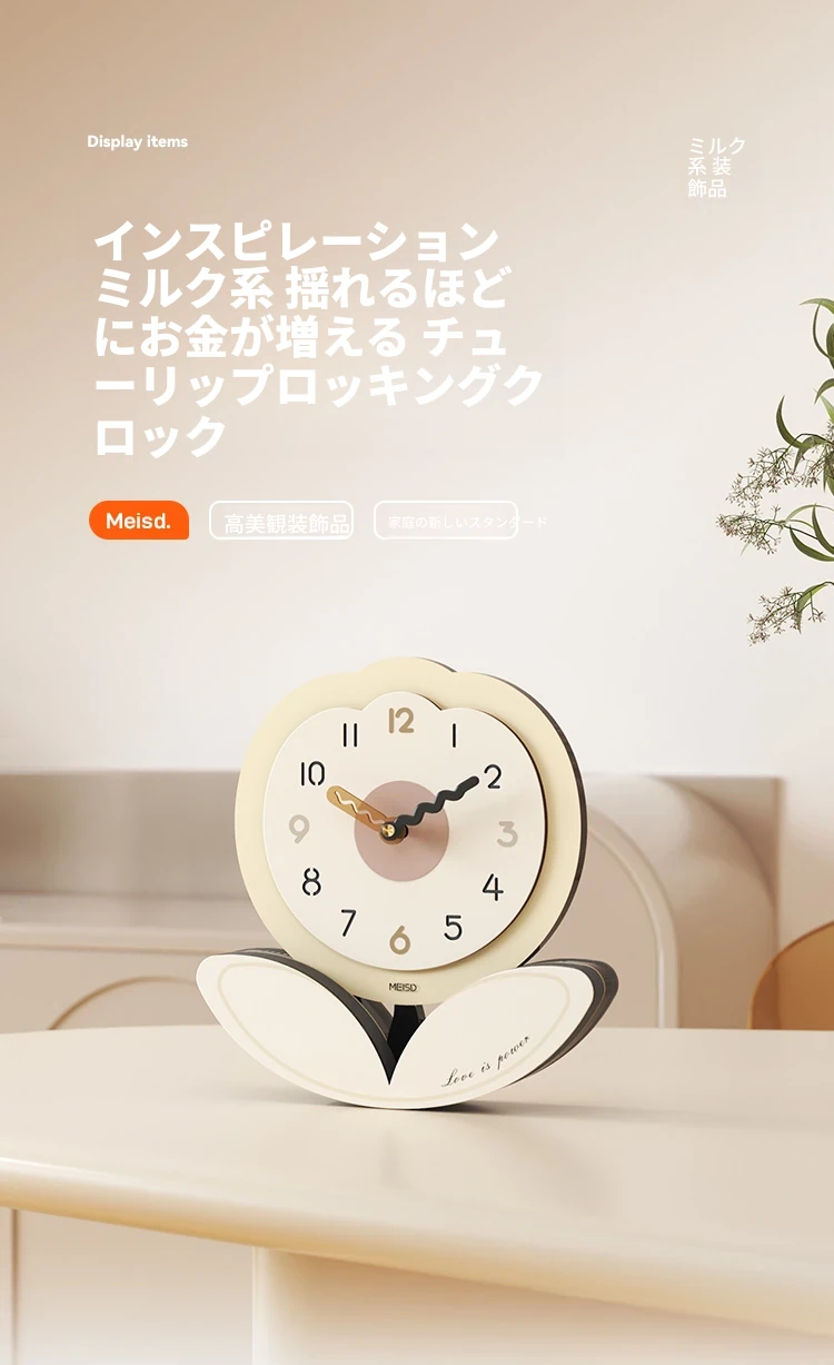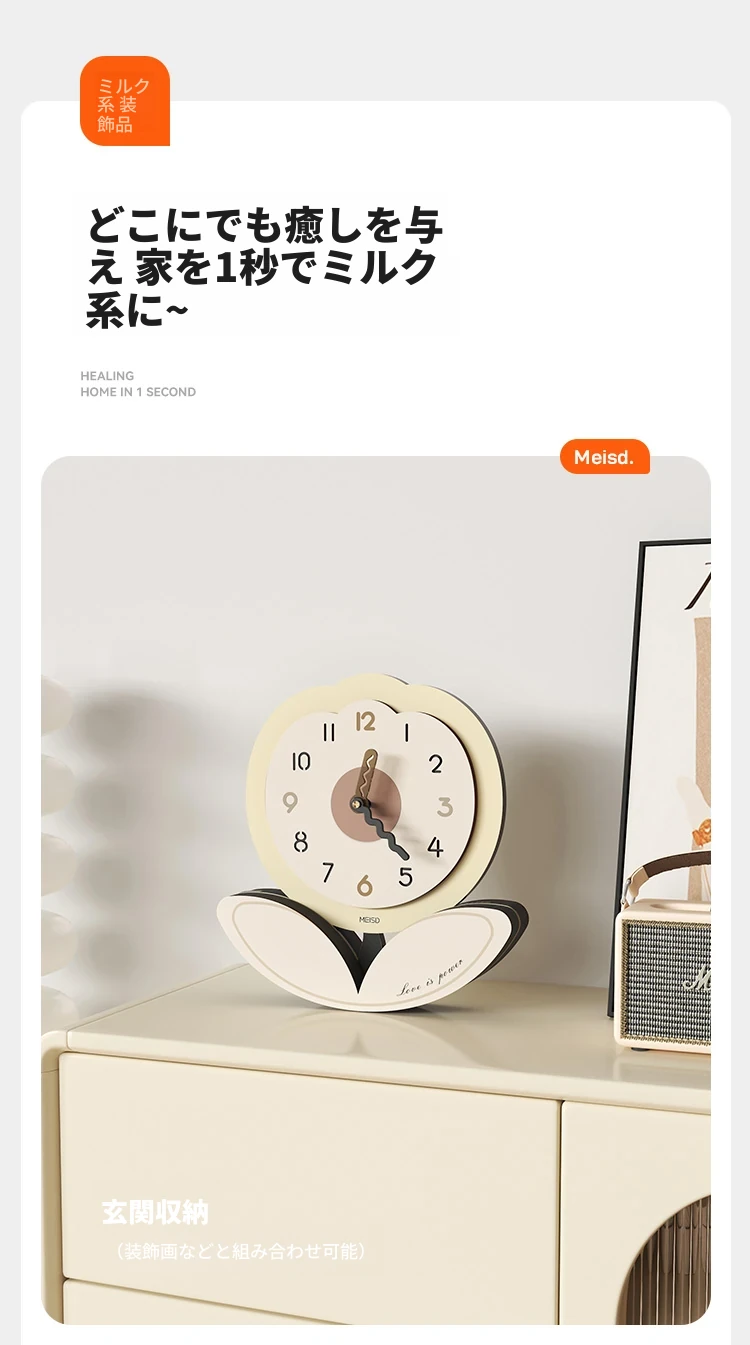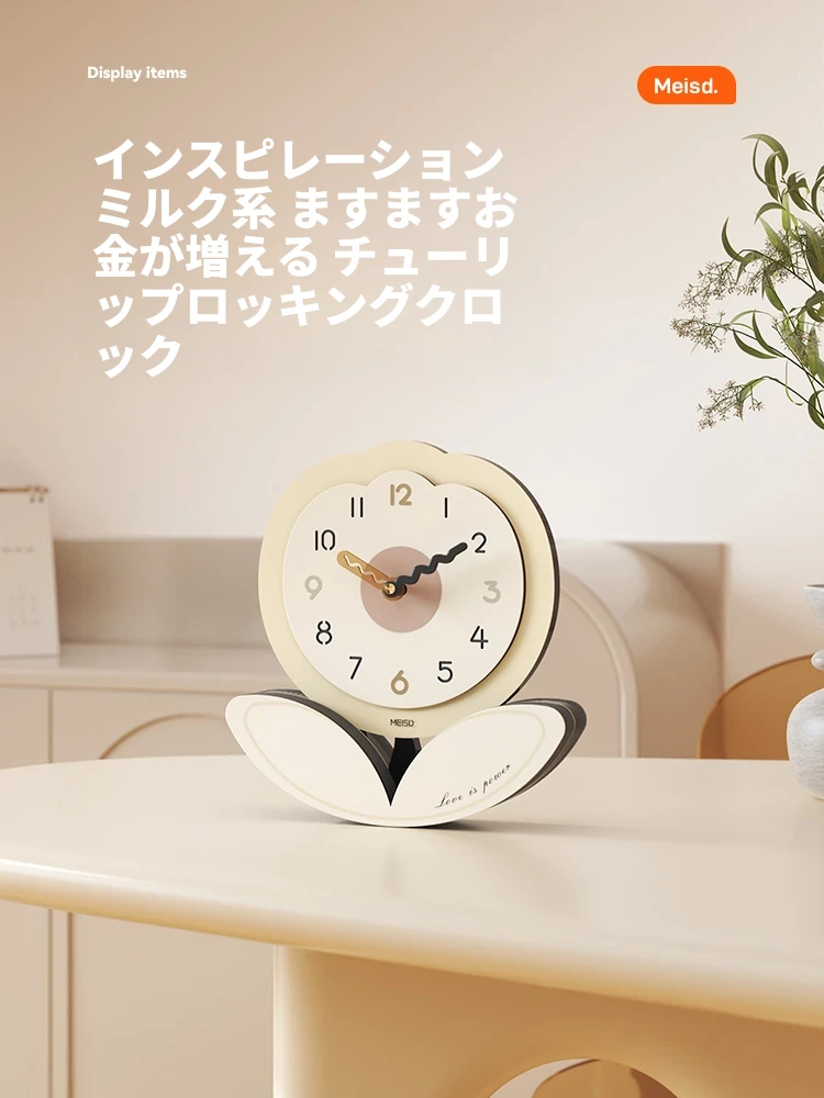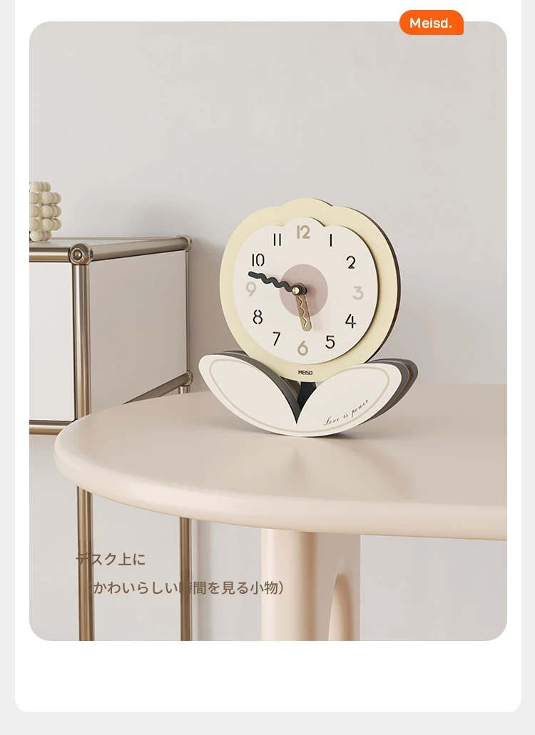美世达クリーム風インテリア時計 - シンプルでおしゃれなデザイン、リビングやテレビボードにぴったりの卓上装飾!お部屋を華やかに彩る、おすすめの置き時計です。