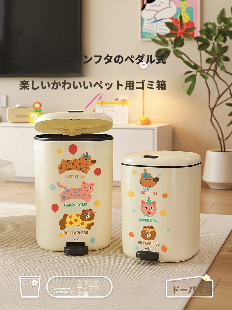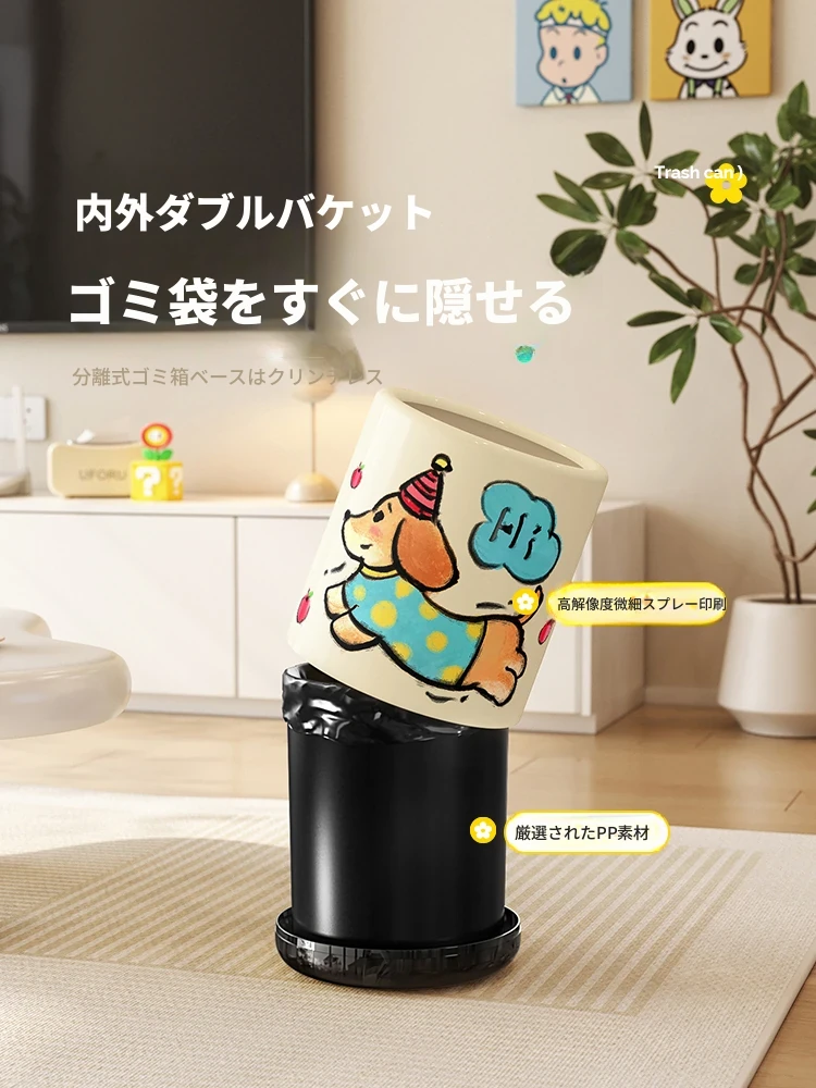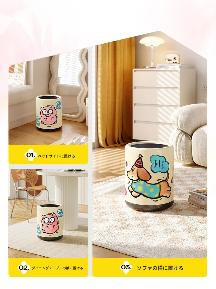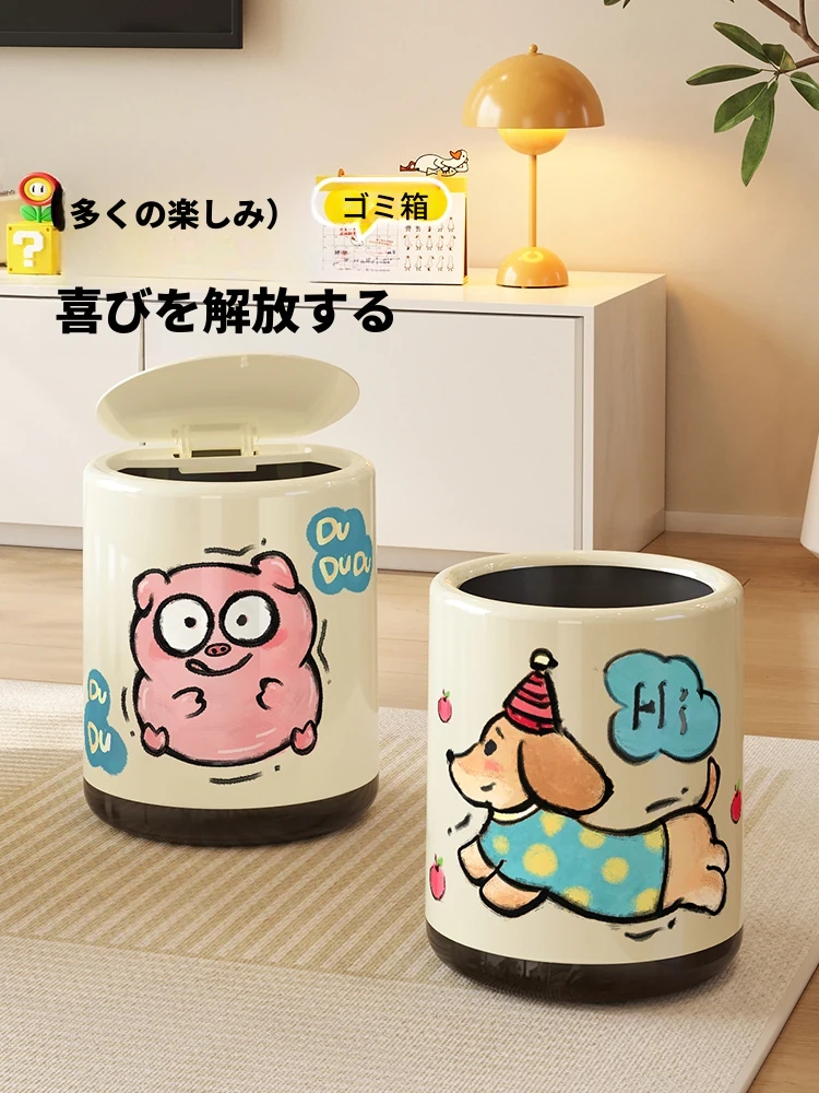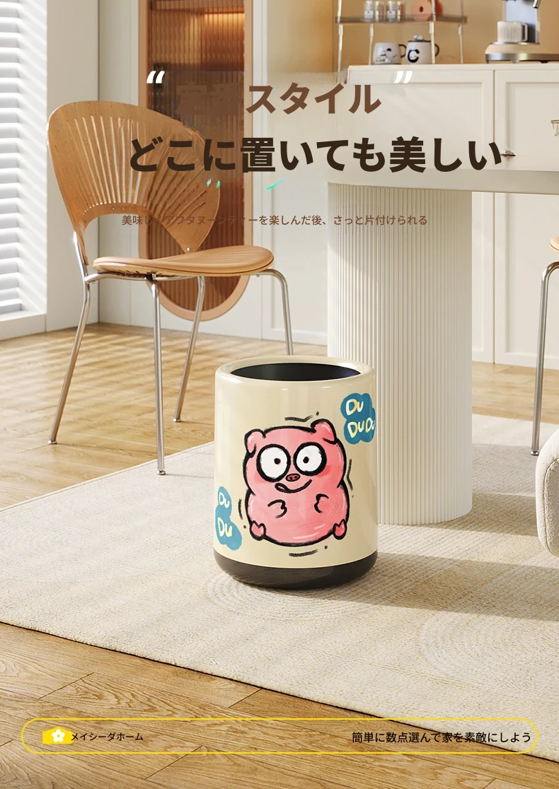 美世达可爱多巴胺ゴミ箱 - 新型デザインの大容量家庭用ゴミ箱!リビングや寝室にぴったりのカートゥーンスタイルで、高い美観を兼ね備えています。おしゃれで機能的な収納アイテムで、生活をもっと楽しく!