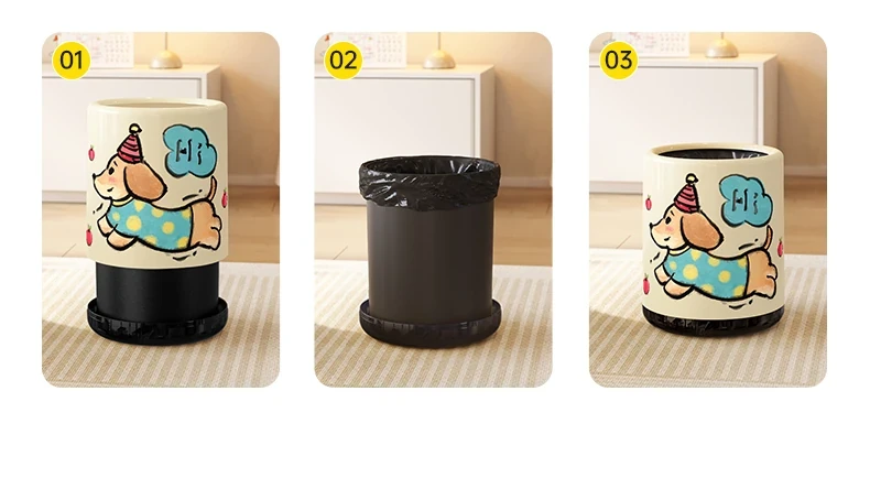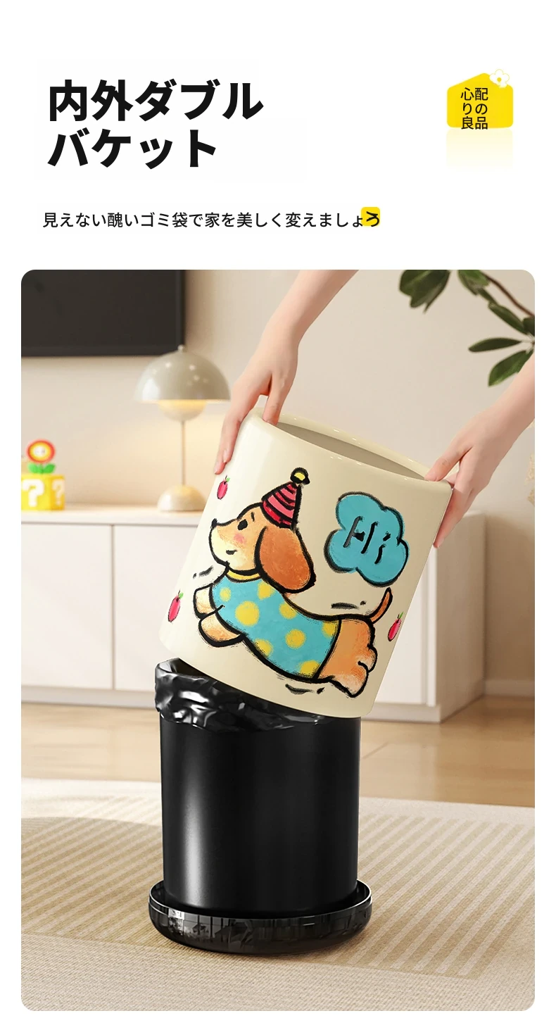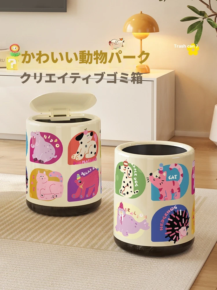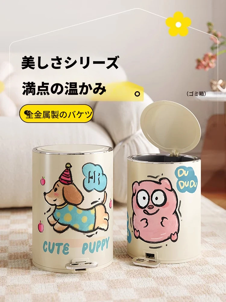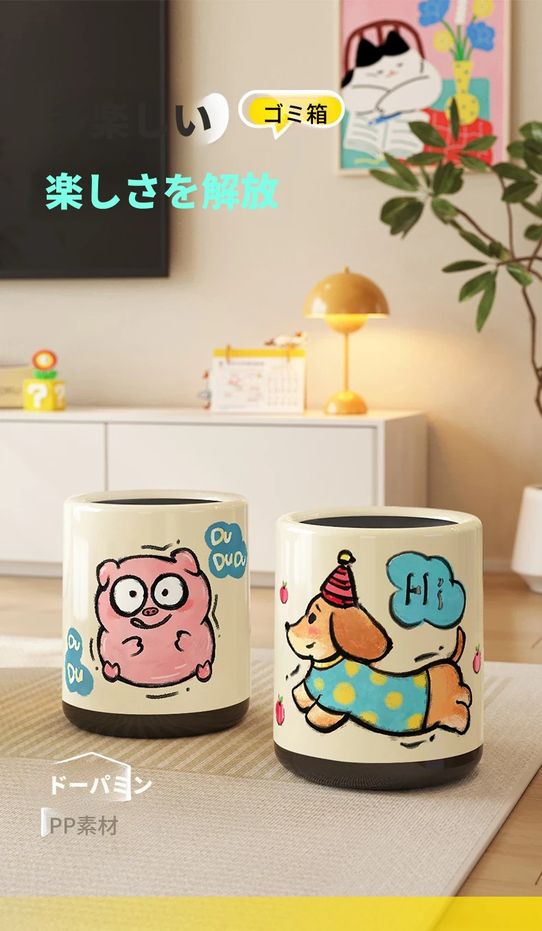 美世达可爱多巴胺ゴミ箱 - 新型デザインの大容量家庭用ゴミ箱!リビングや寝室にぴったりのカートゥーンスタイルで、高い美観を兼ね備えています。おしゃれで機能的な収納アイテムで、生活をもっと楽しく!