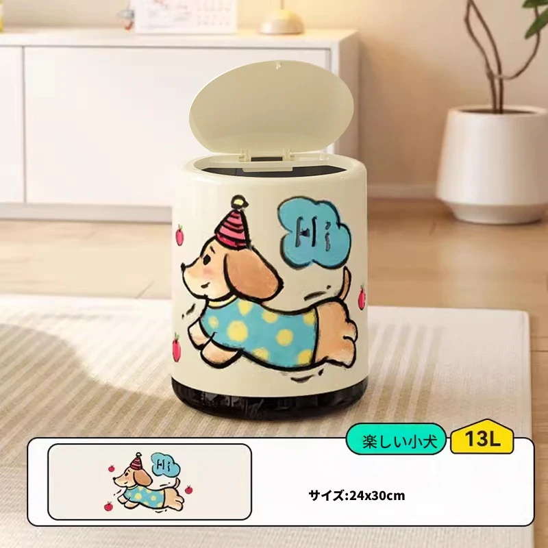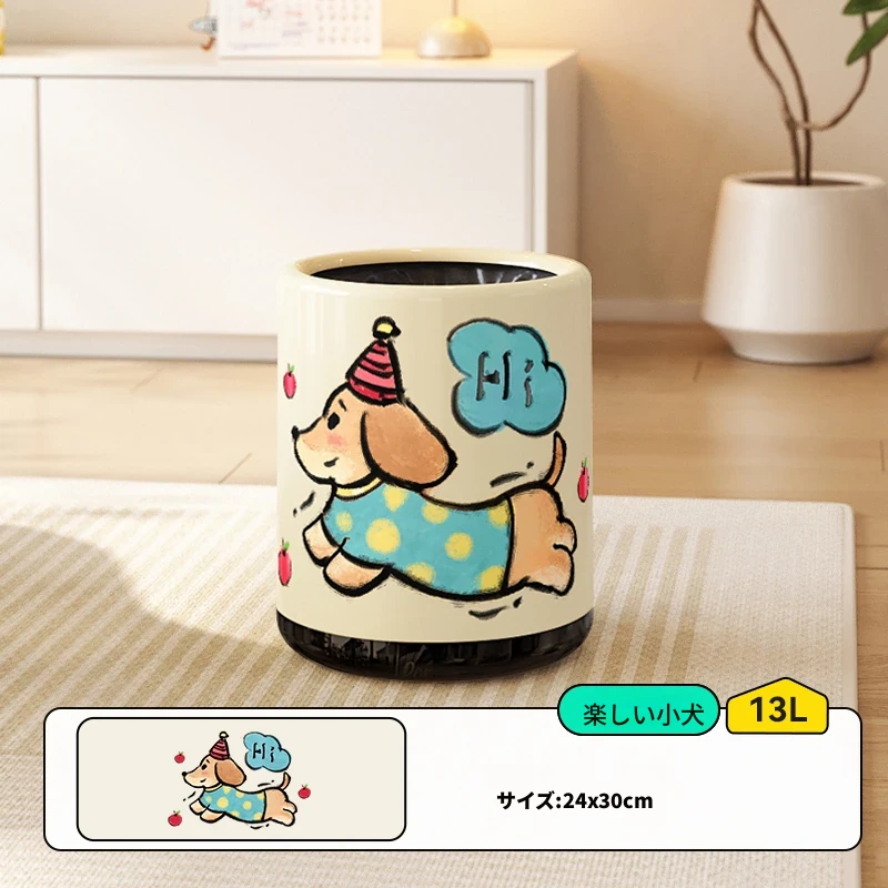 【押しボタン蓋タイプ】楽しい小犬⭐13L⭐耐久性があり色落ちしない