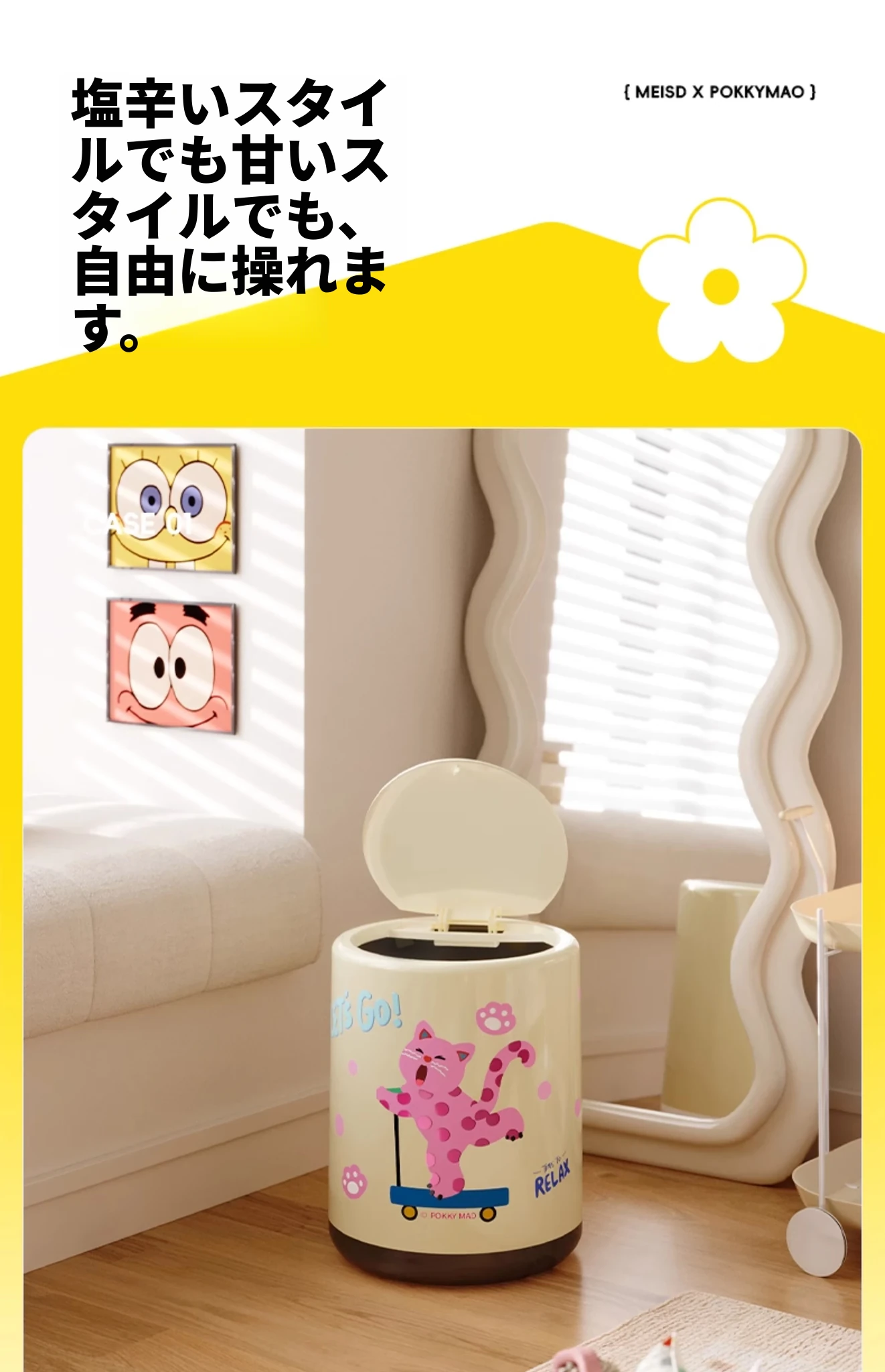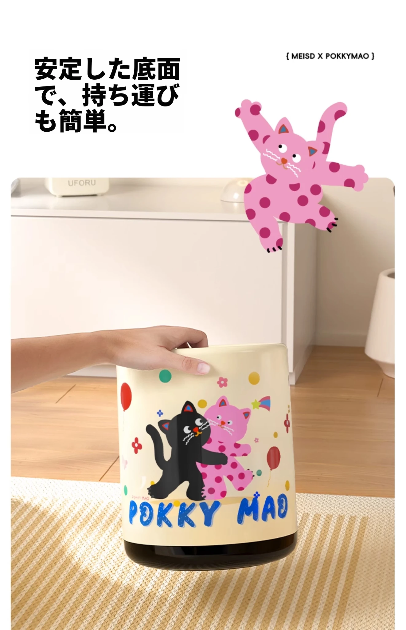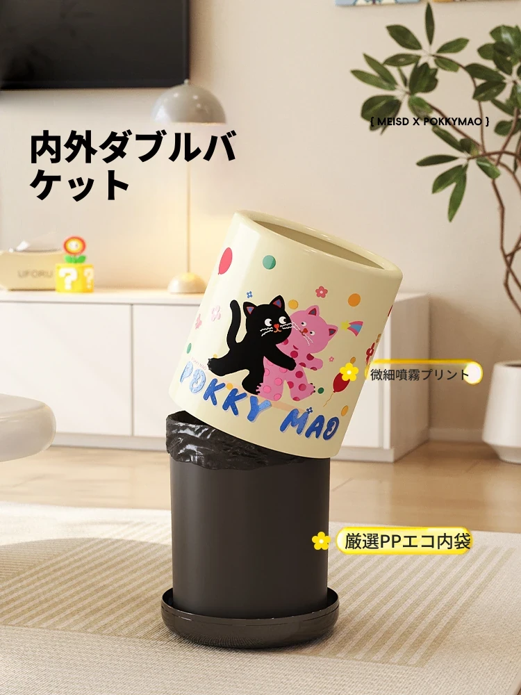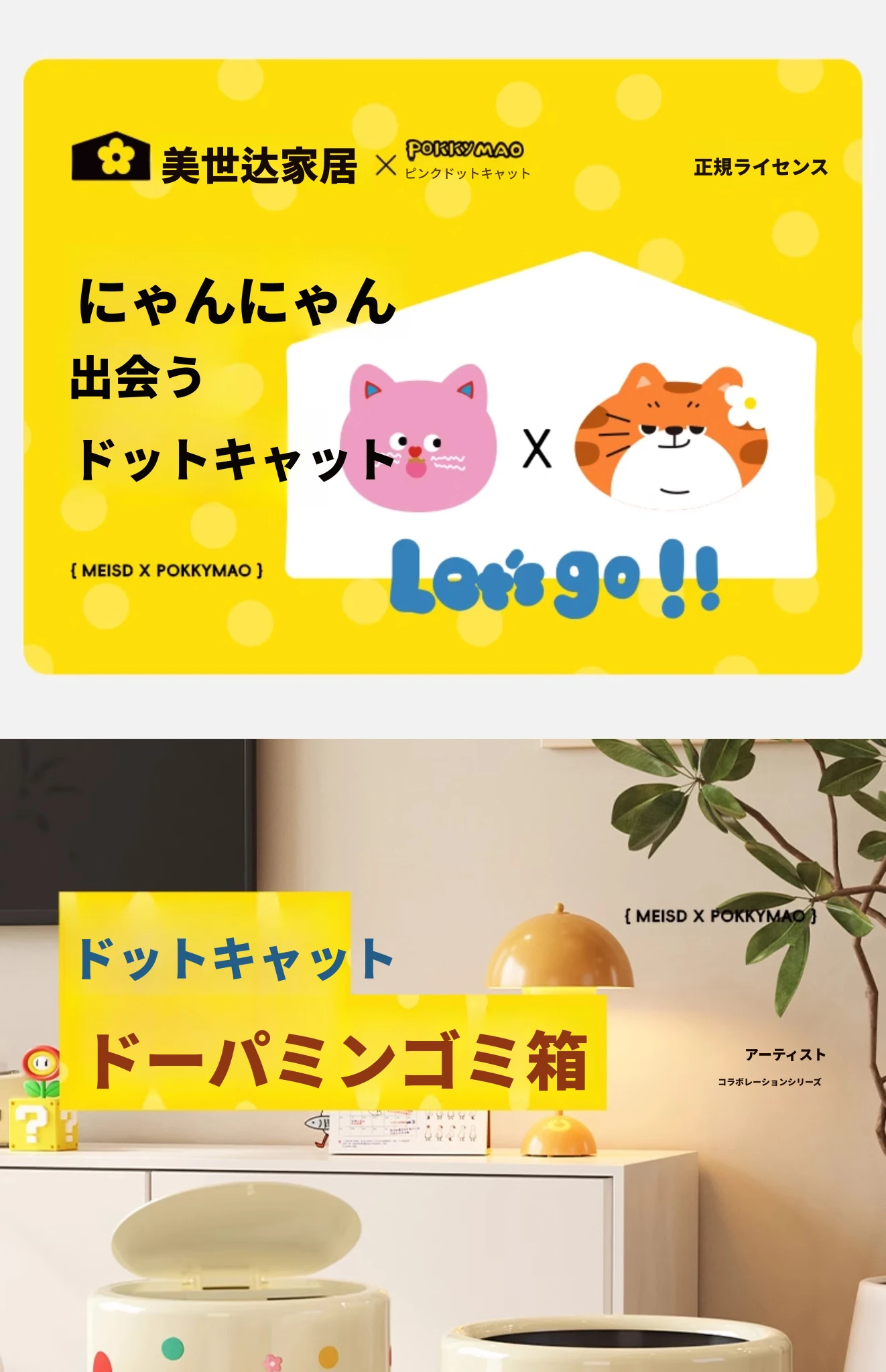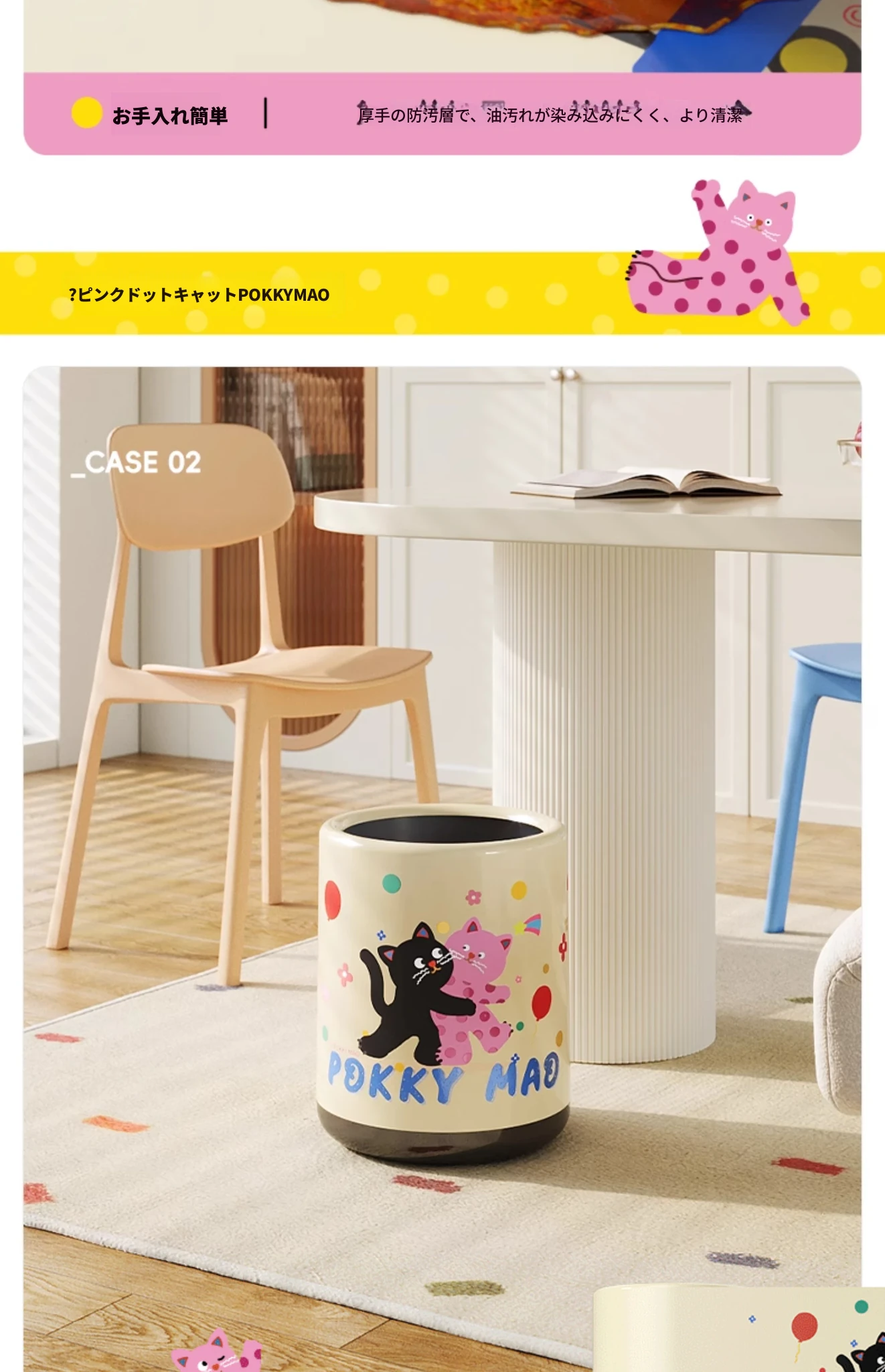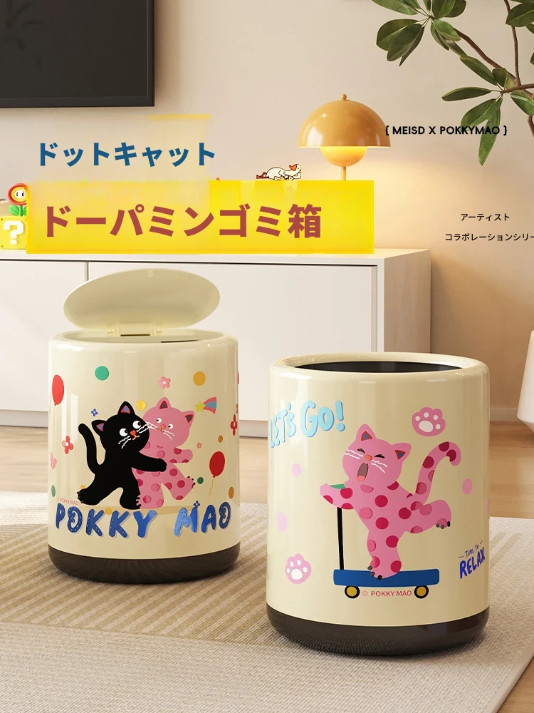 美世达ドット柄キャットゴミ箱2025年新作!高いデザイン性でリビングや寝室にぴったりの可愛い大容量ゴミ箱。おしゃれにお部屋を彩り、ゴミ捨ても楽しく!