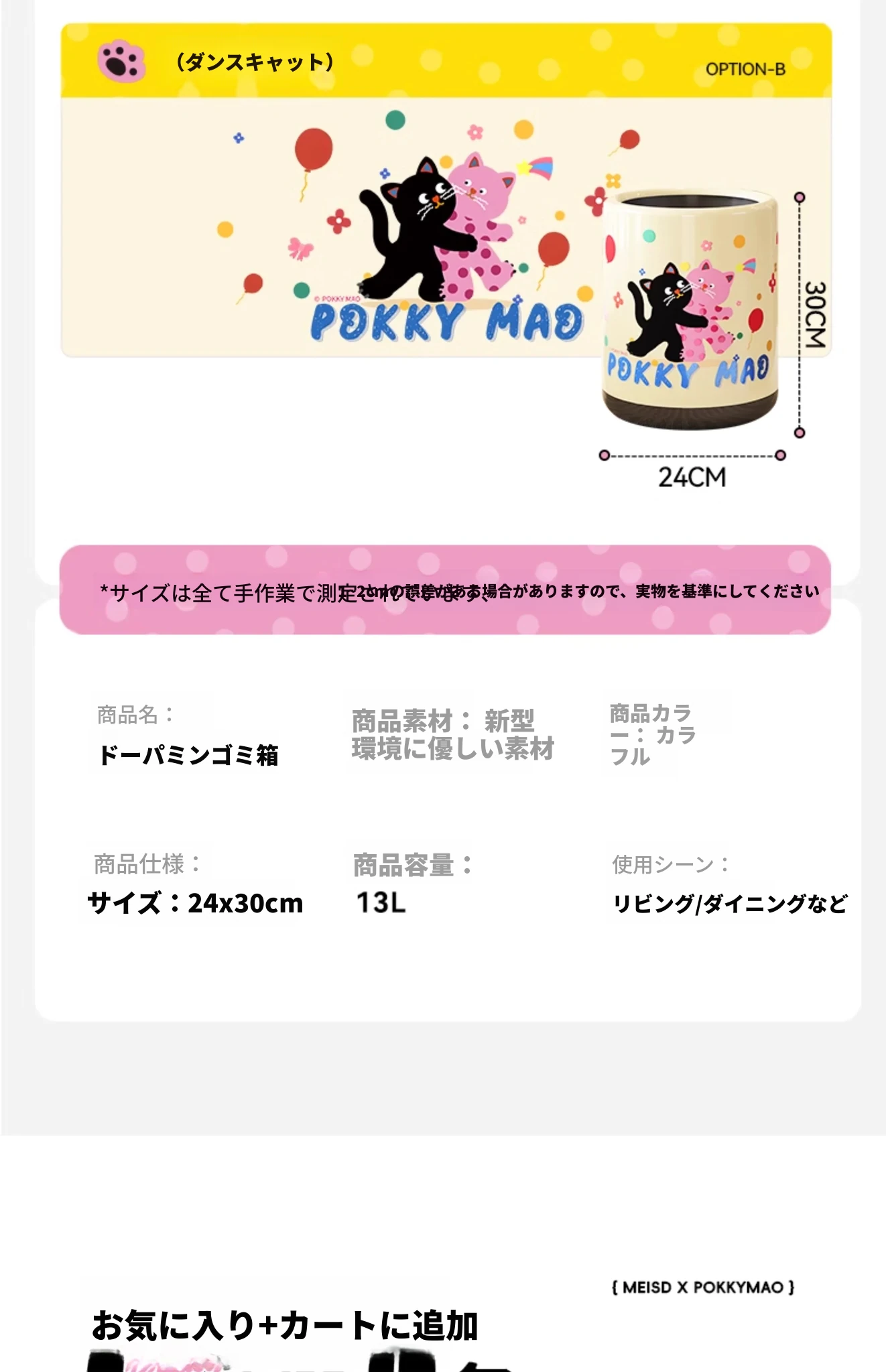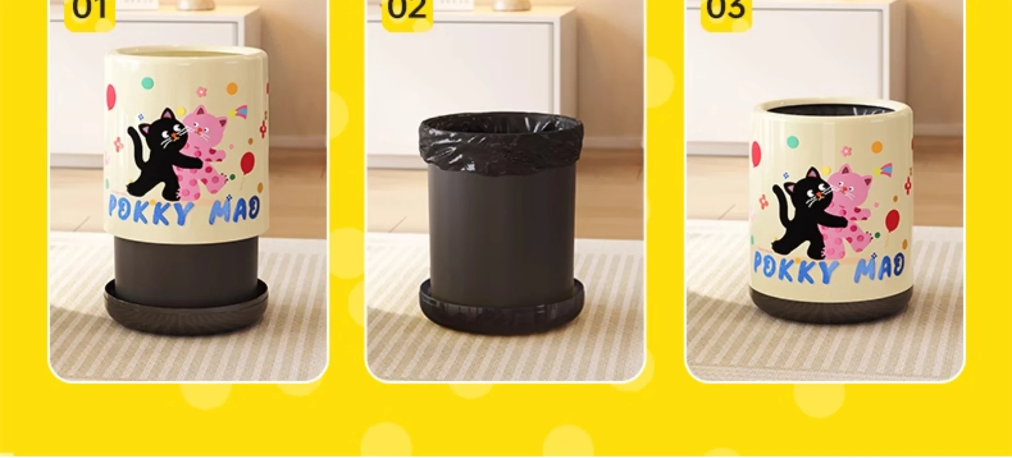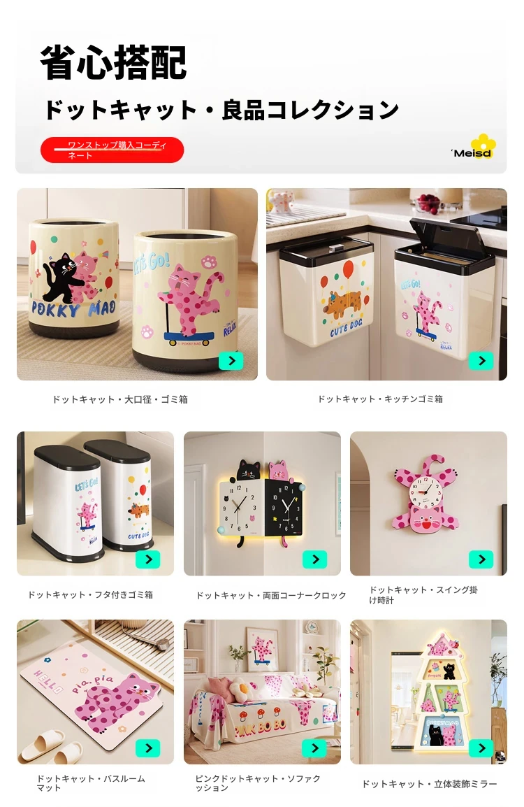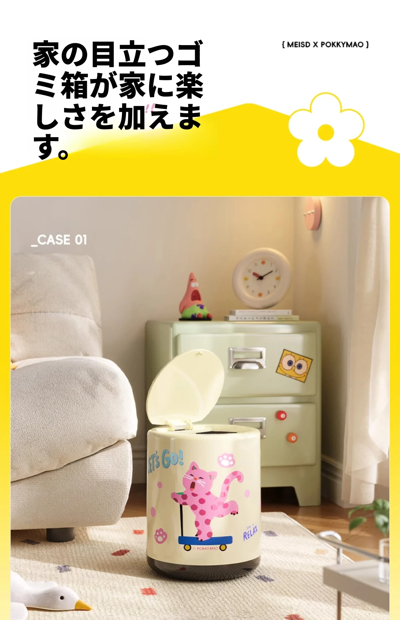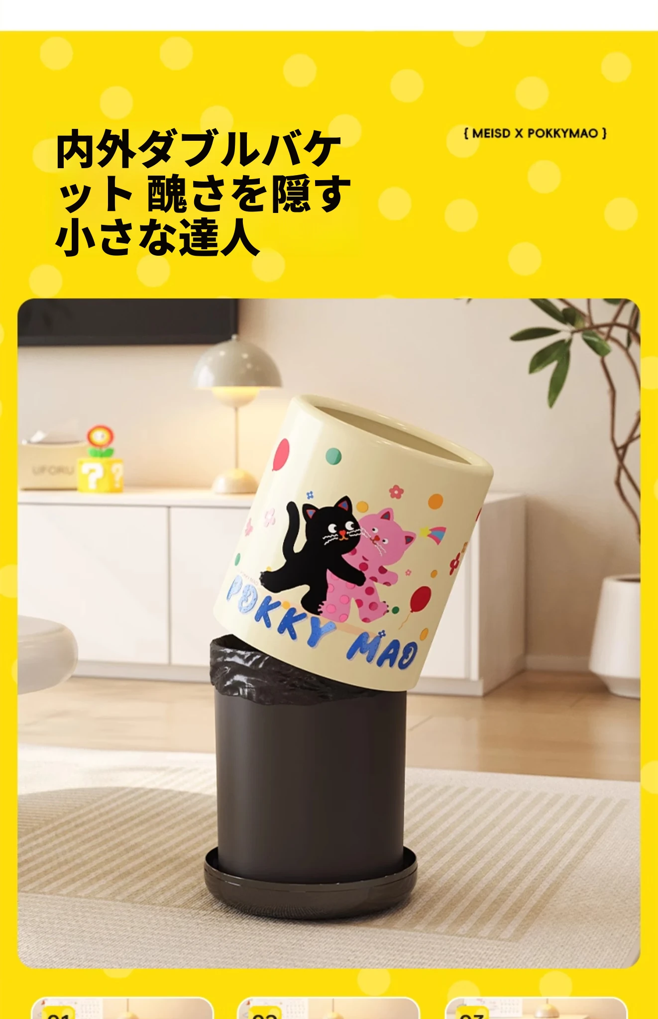 美世达ドット柄キャットゴミ箱2025年新作!高いデザイン性でリビングや寝室にぴったりの可愛い大容量ゴミ箱。おしゃれにお部屋を彩り、ゴミ捨ても楽しく!